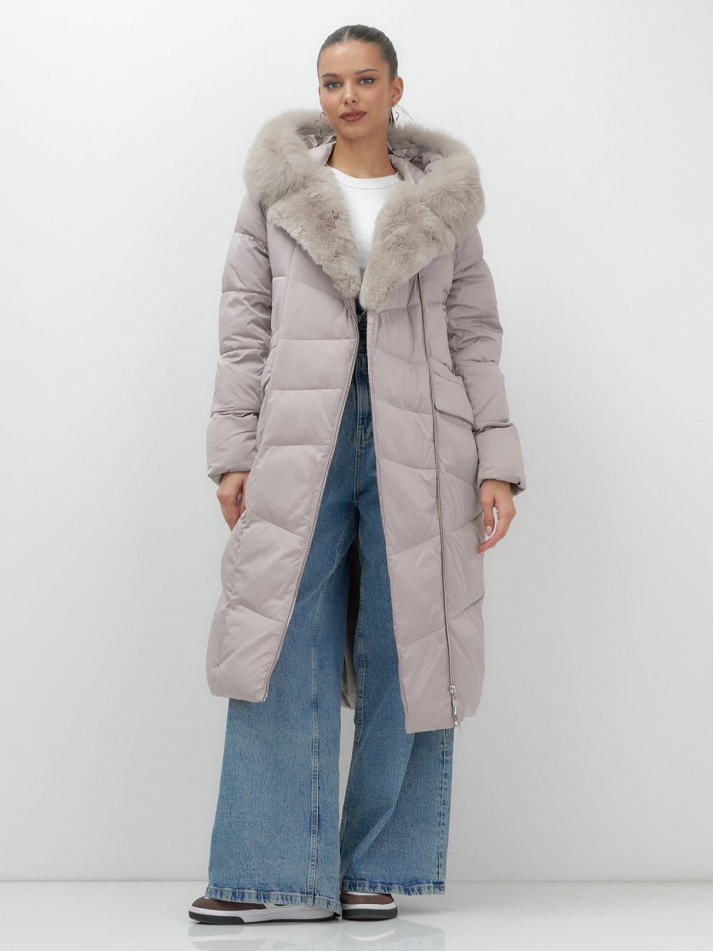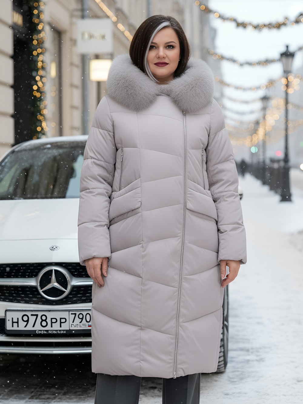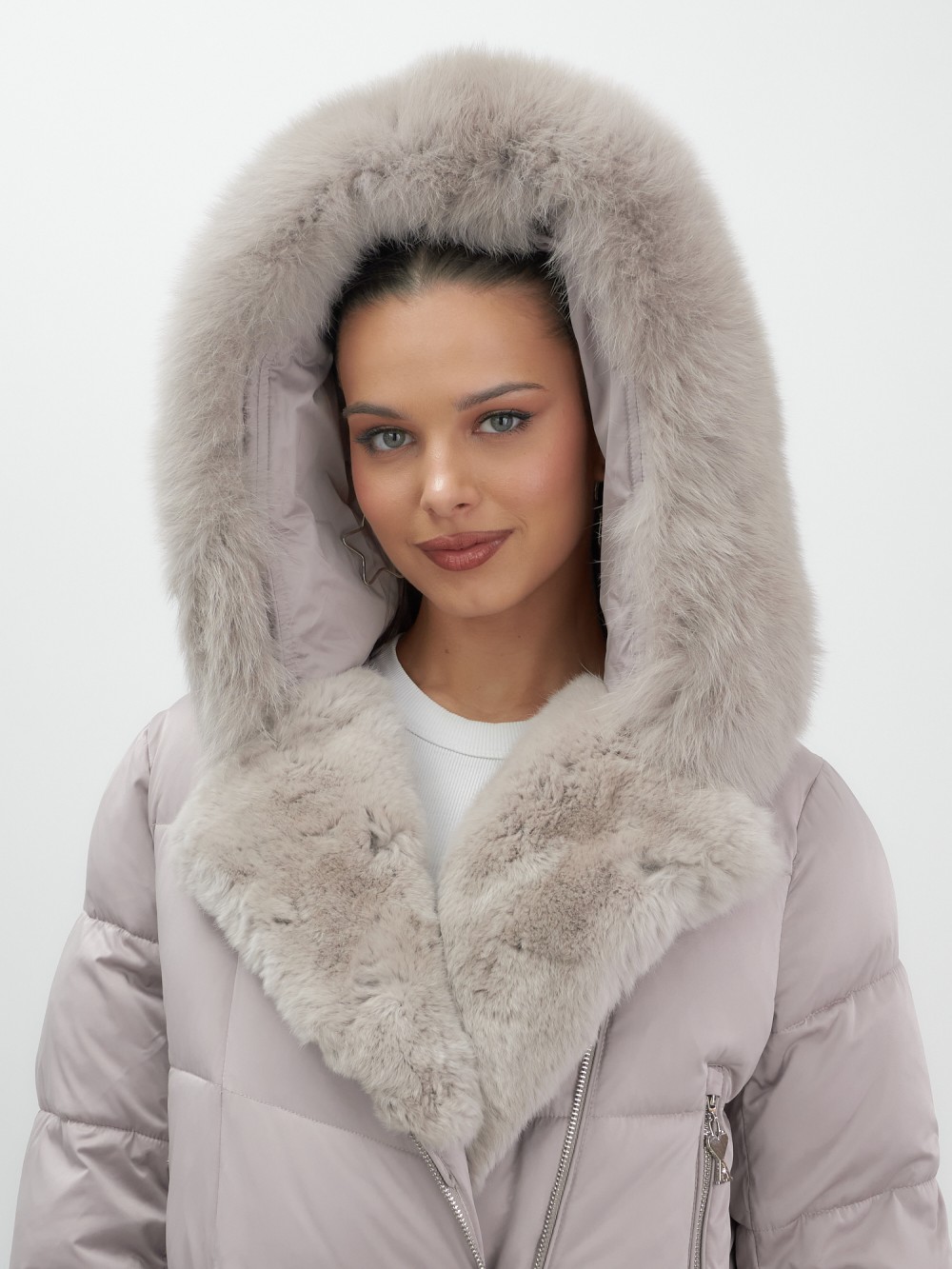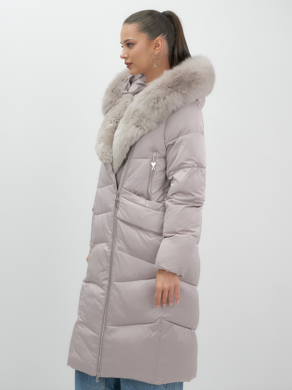 Изысканный английский воротник из натурального меха кролика и роскошная съемная опушка из песца создают неповторимый силуэт. Удлиненный крой ниже колена подчеркивает элегантность линий. Премиальный утеплитель повышенной плотности (640-740 г) обеспечивает максимальную защиту от холода.