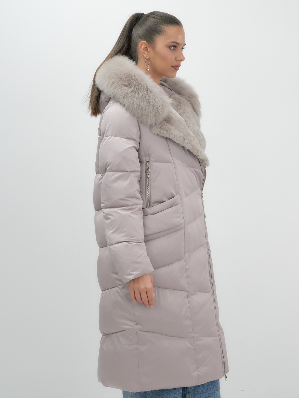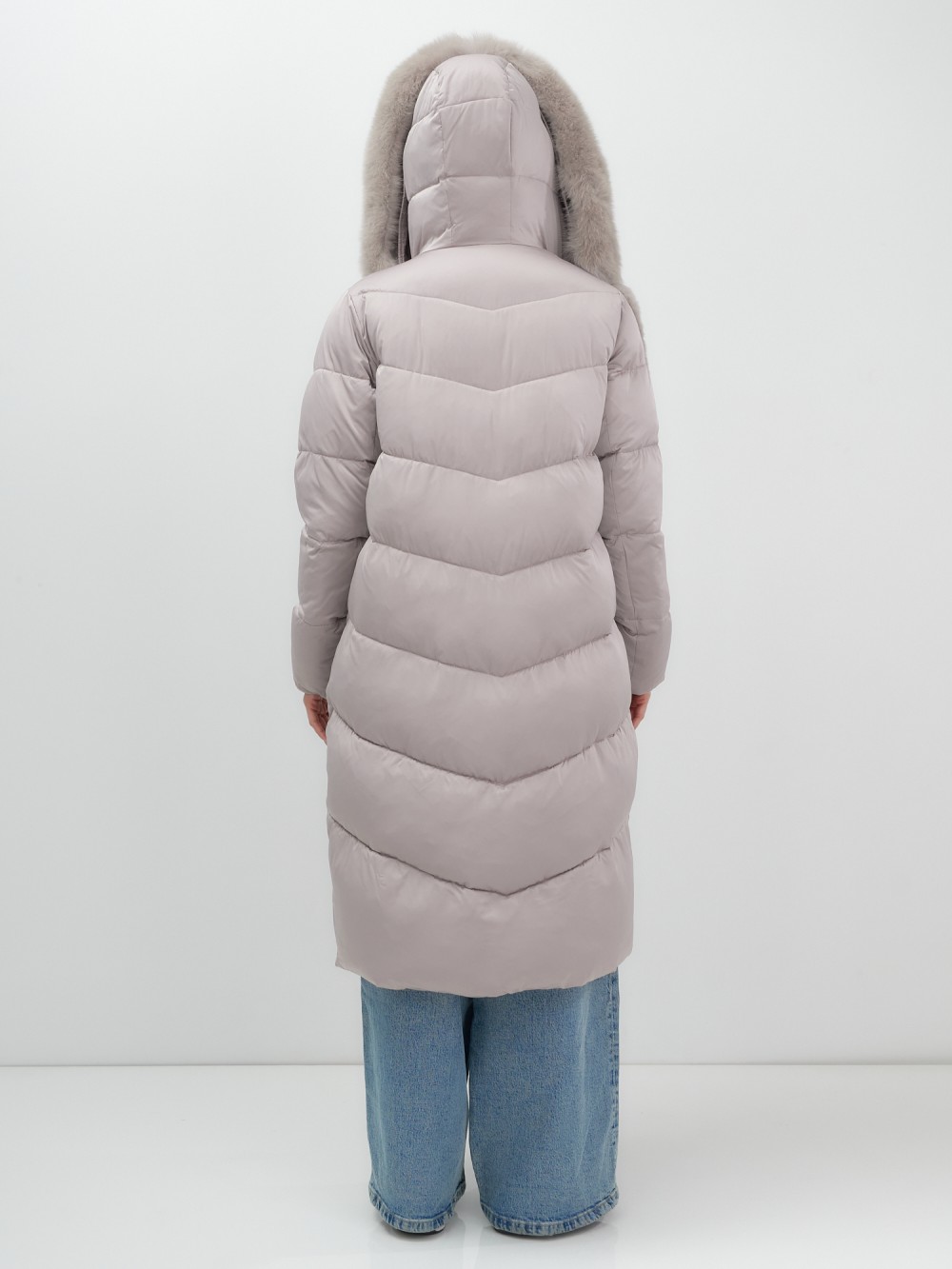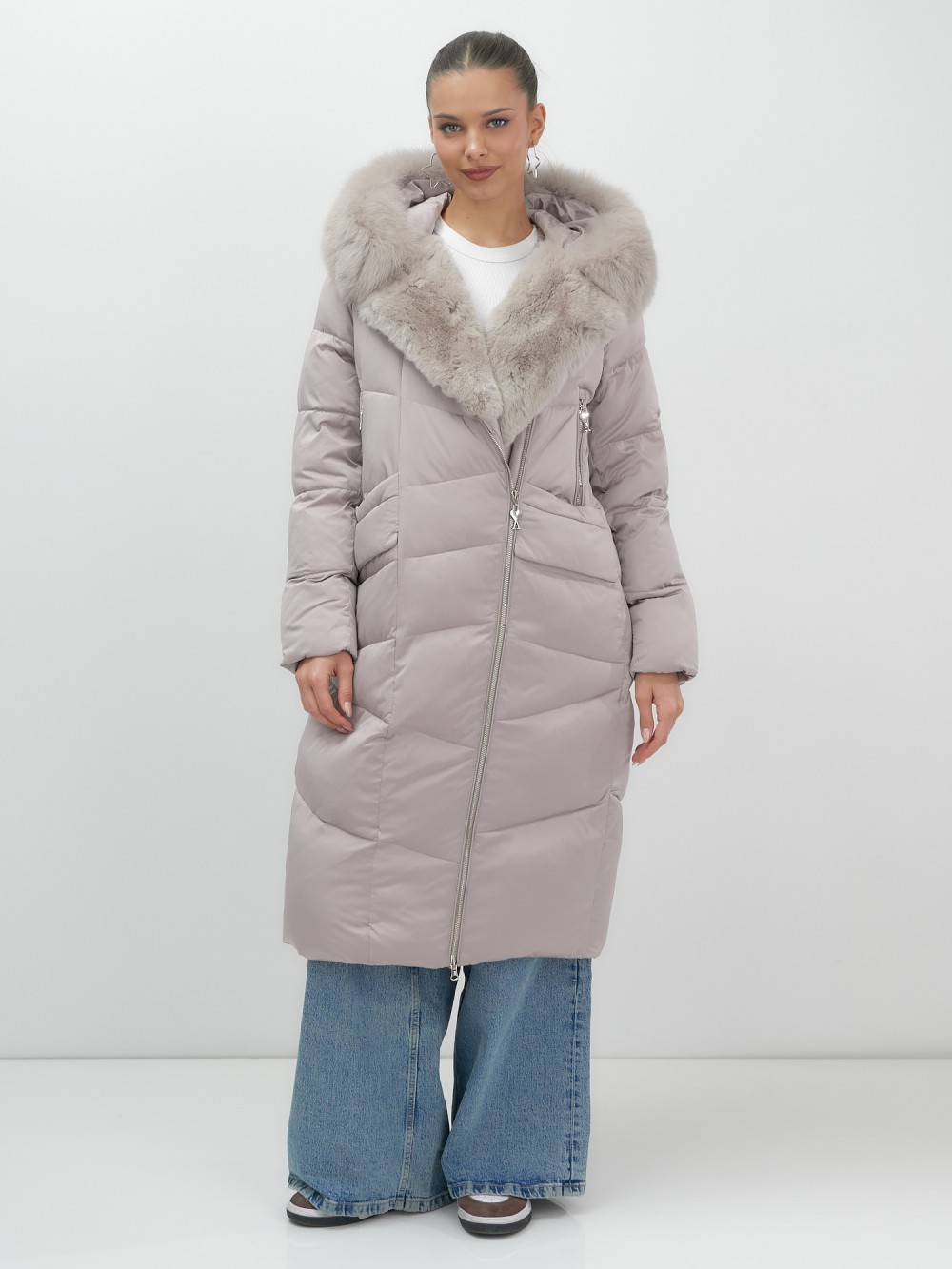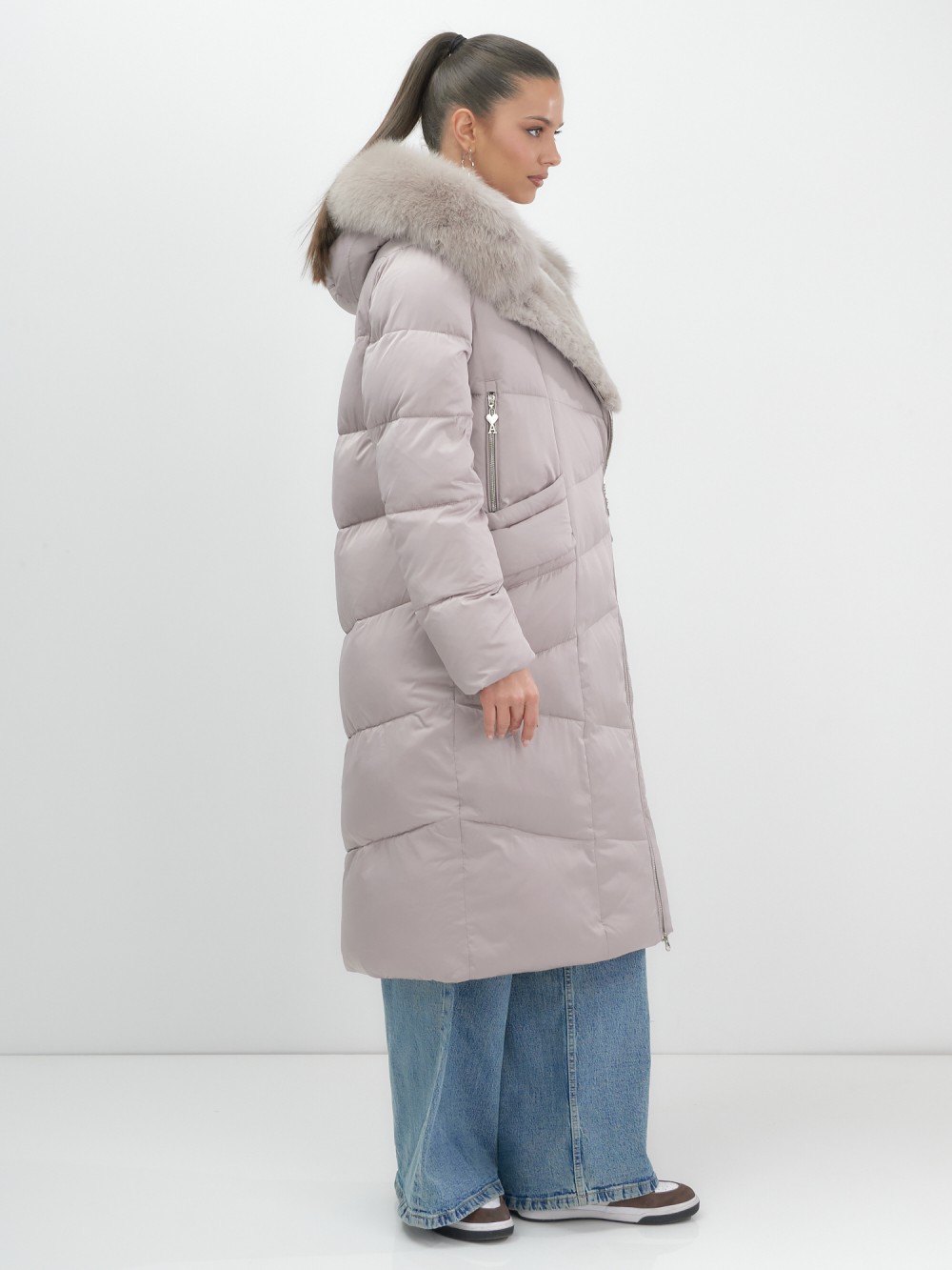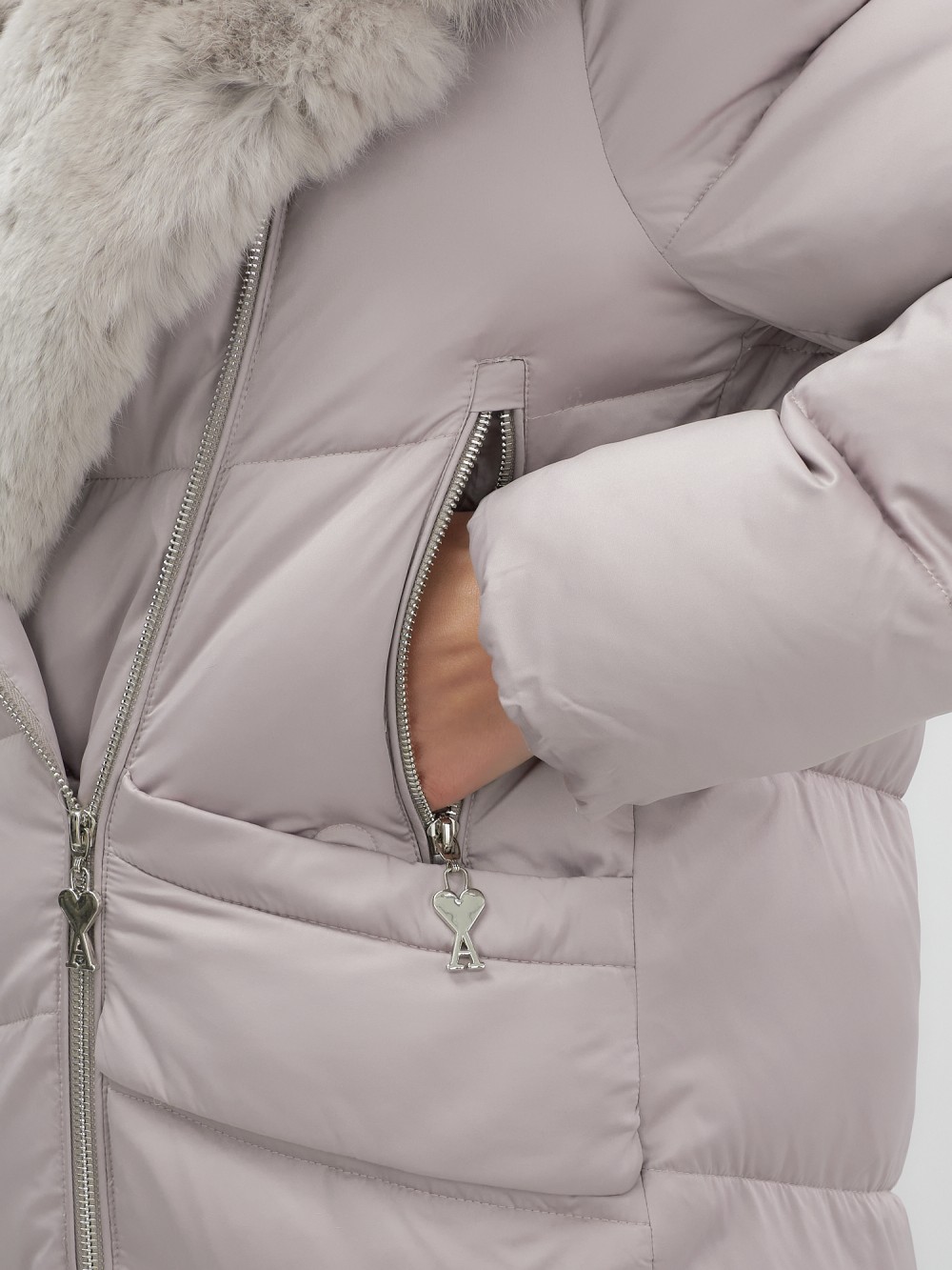 Изысканный английский воротник из натурального меха кролика и роскошная съемная опушка из песца создают неповторимый силуэт. Удлиненный крой ниже колена подчеркивает элегантность линий. Премиальный утеплитель повышенной плотности (640-740 г) обеспечивает максимальную защиту от холода.