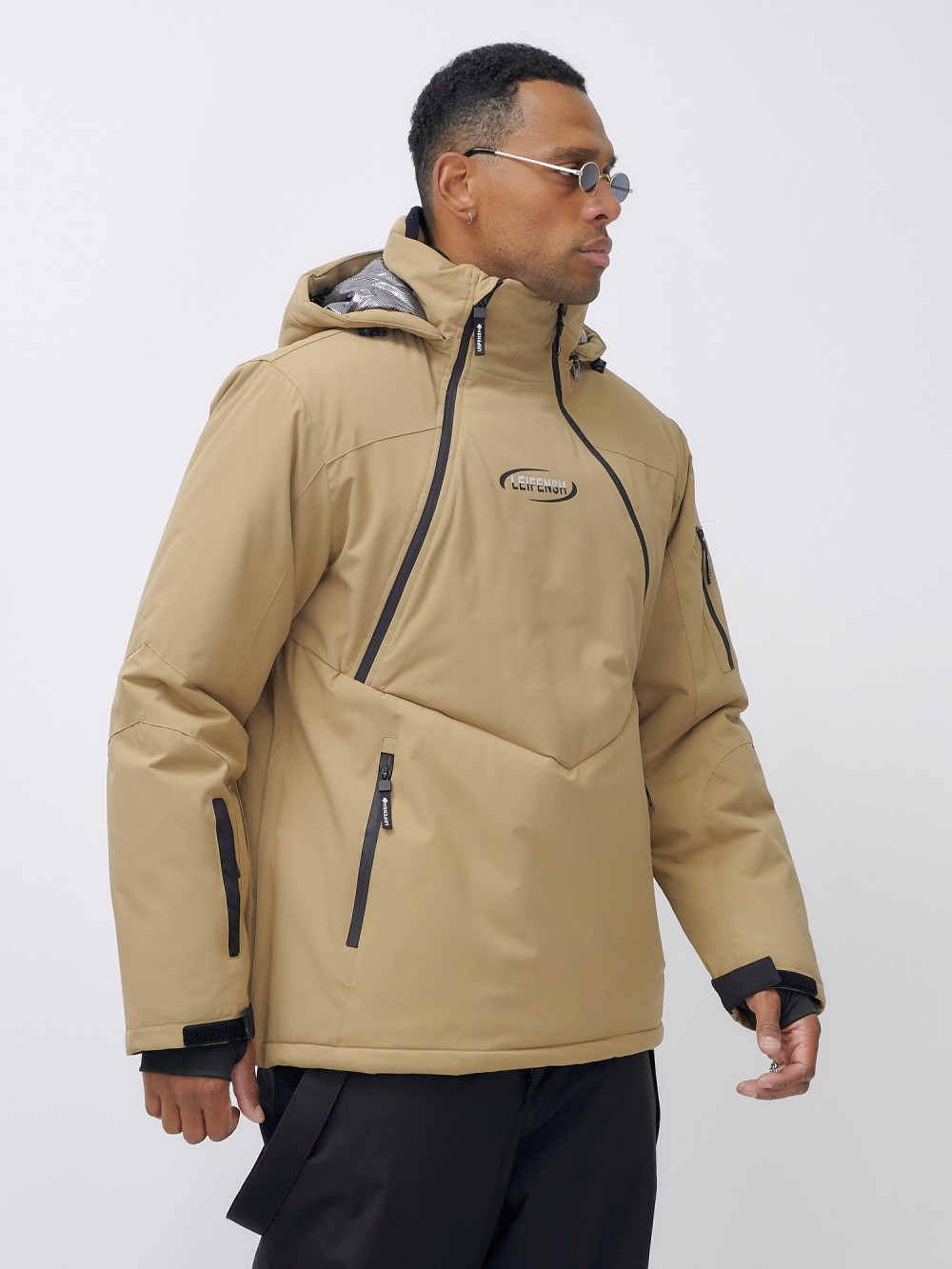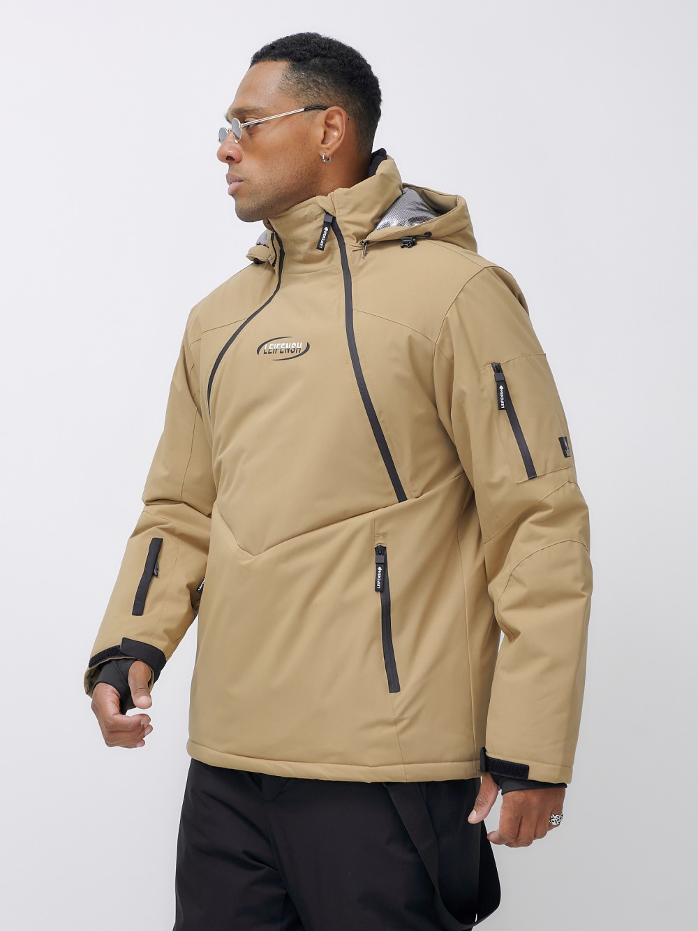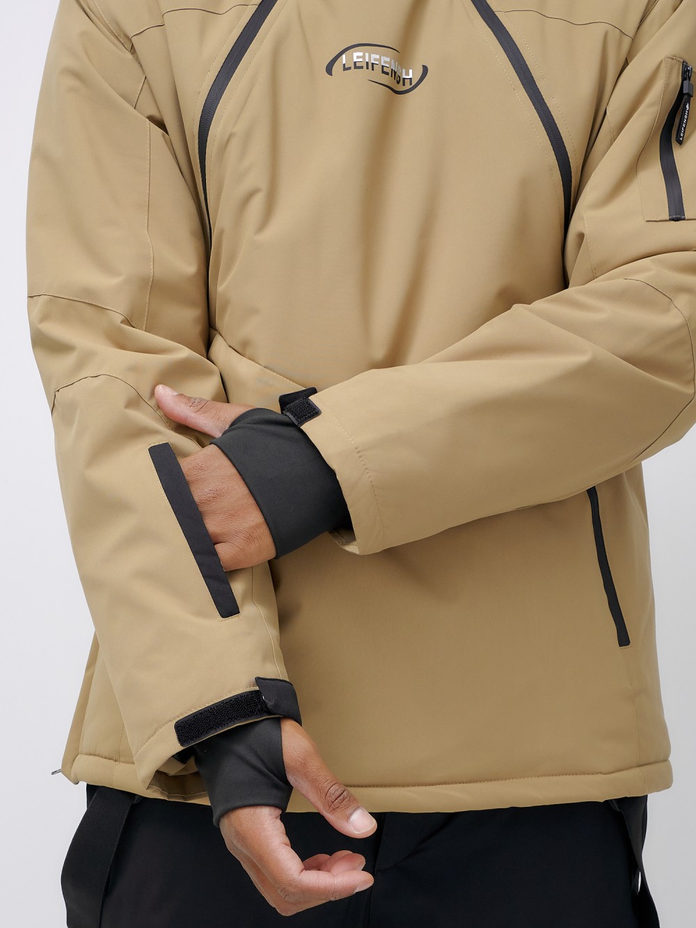 Горнолыжная куртка мужская УЦЕНКА бежевого цвета 0920B