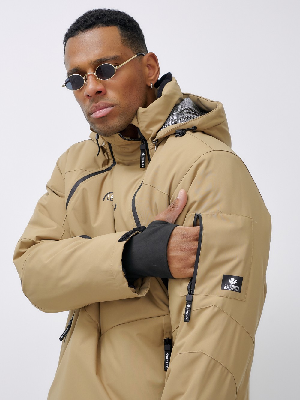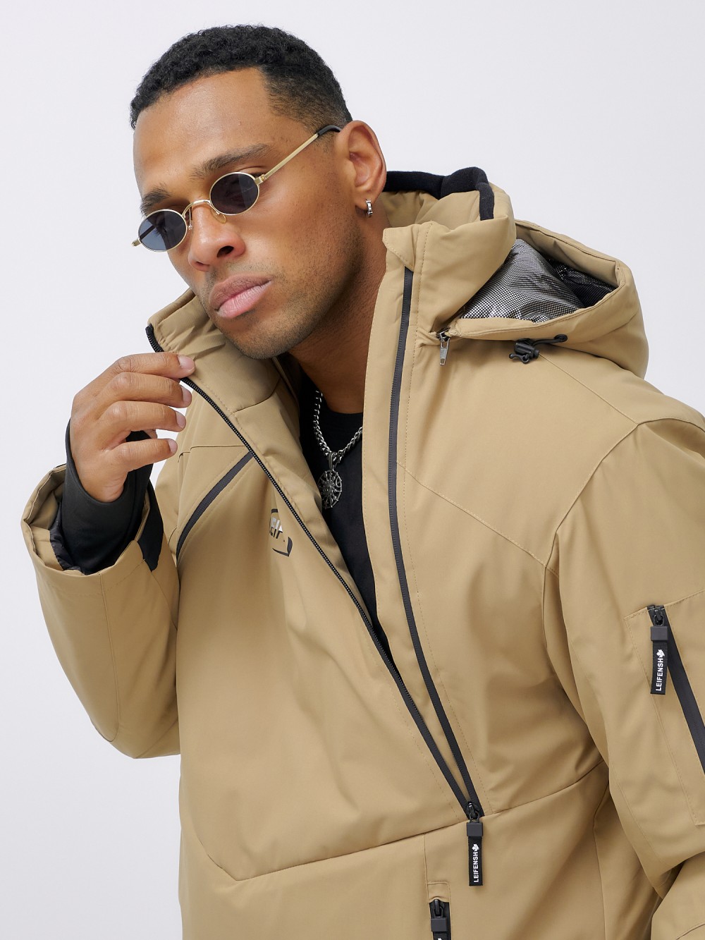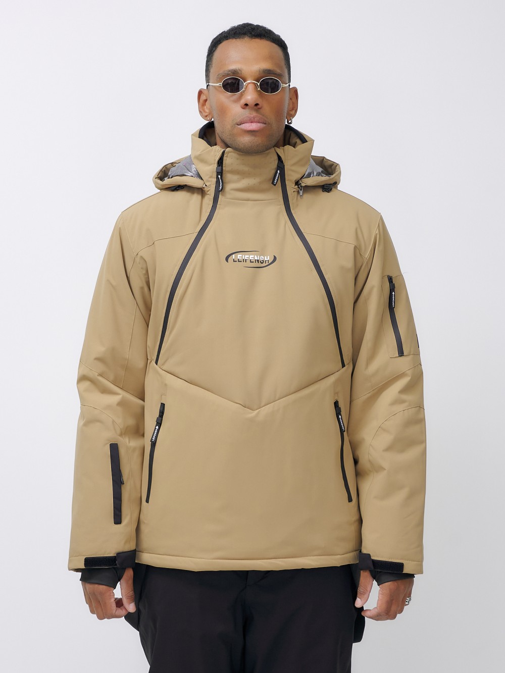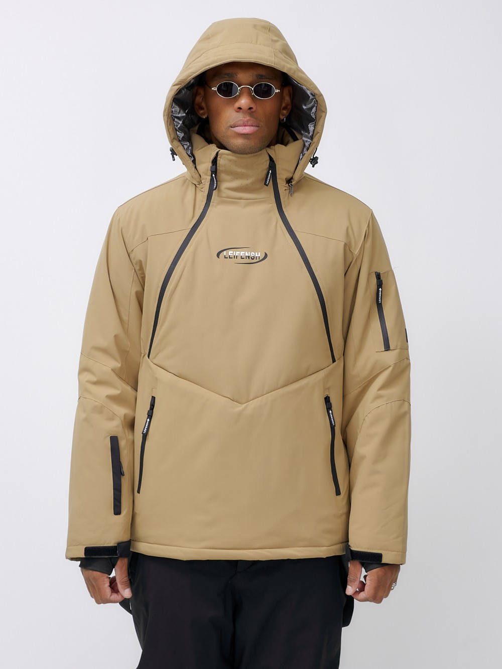 Горнолыжная куртка мужская УЦЕНКА бежевого цвета 0920B