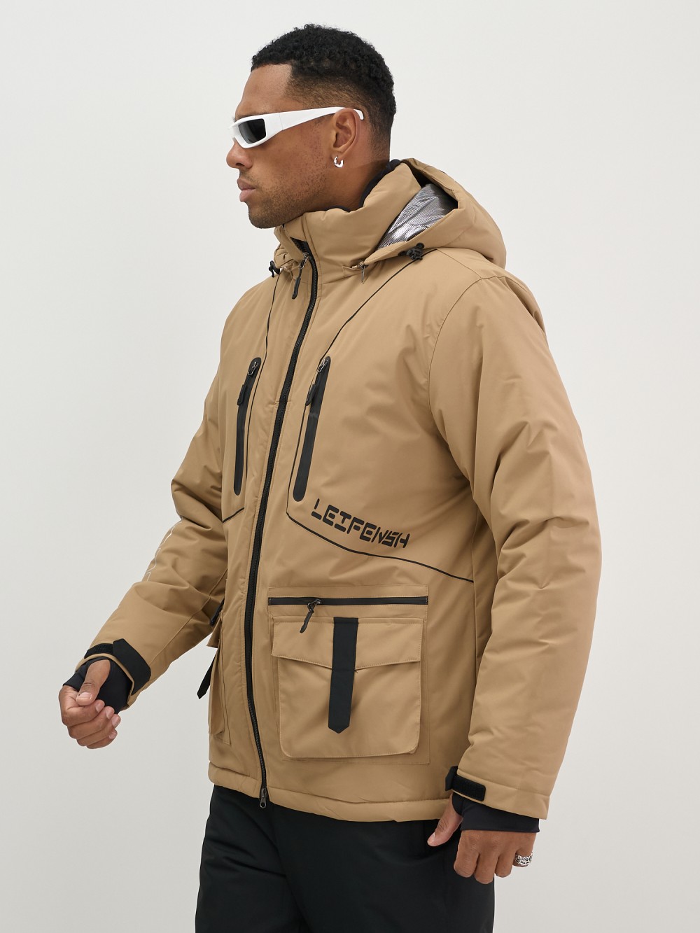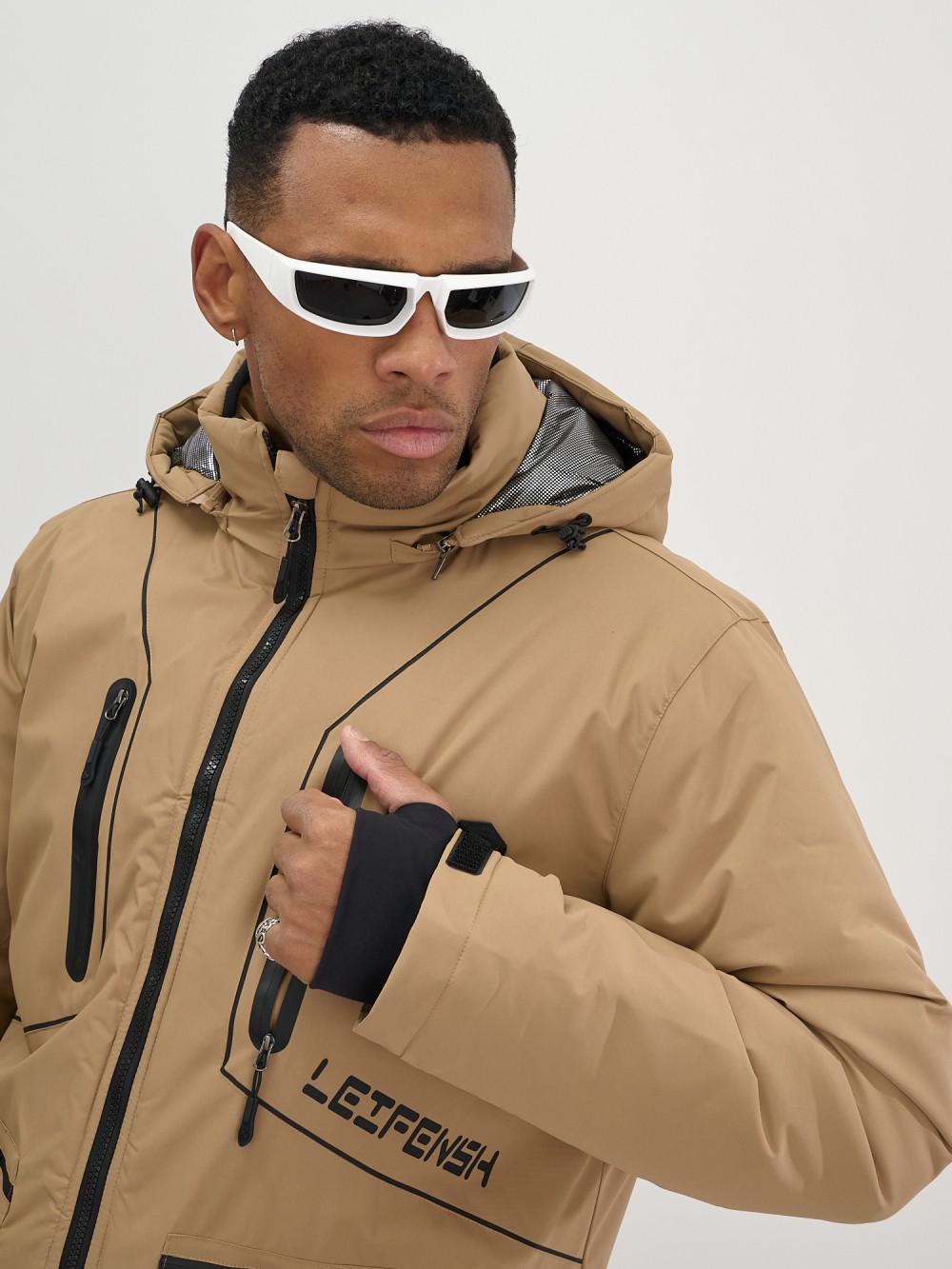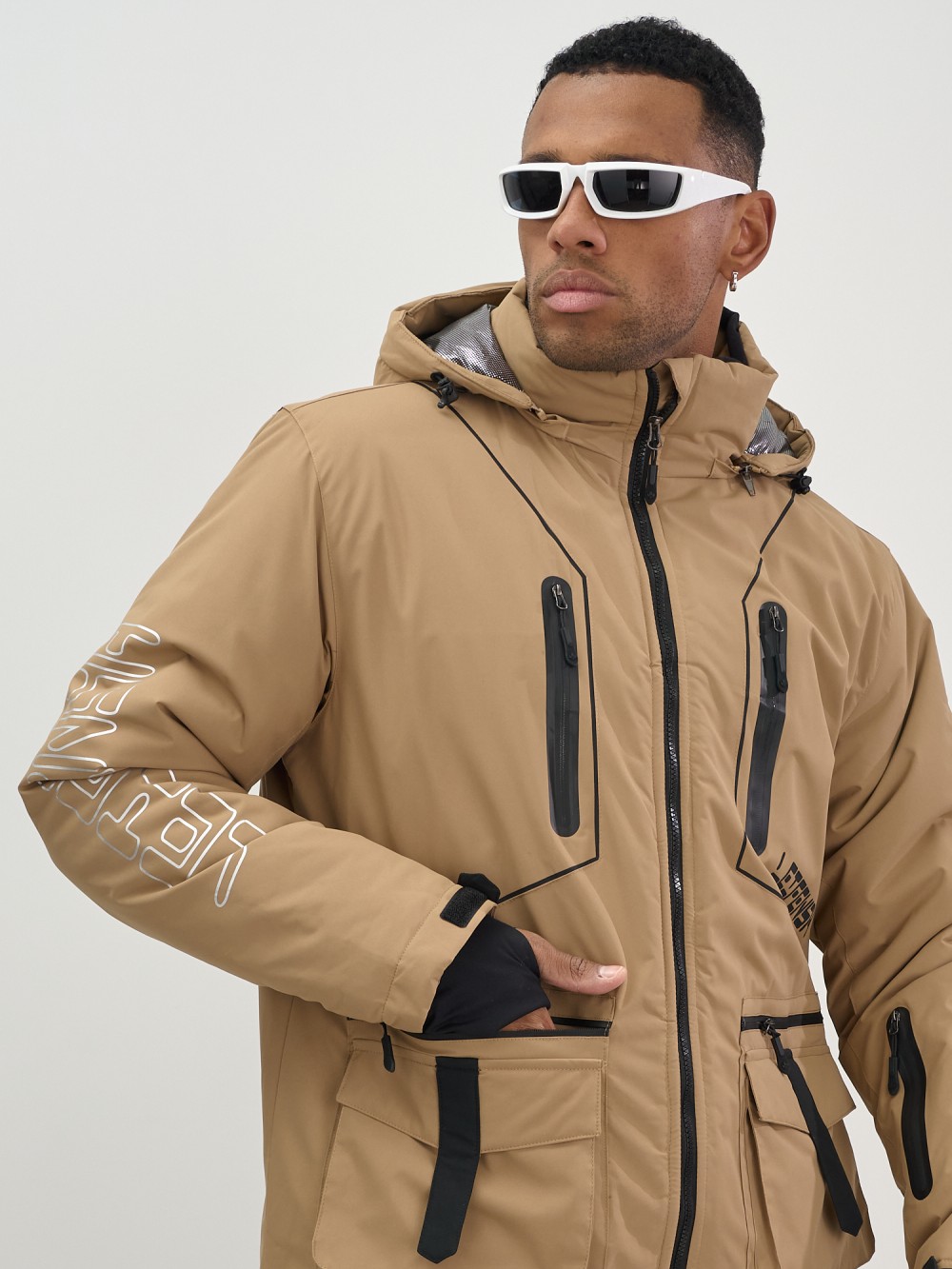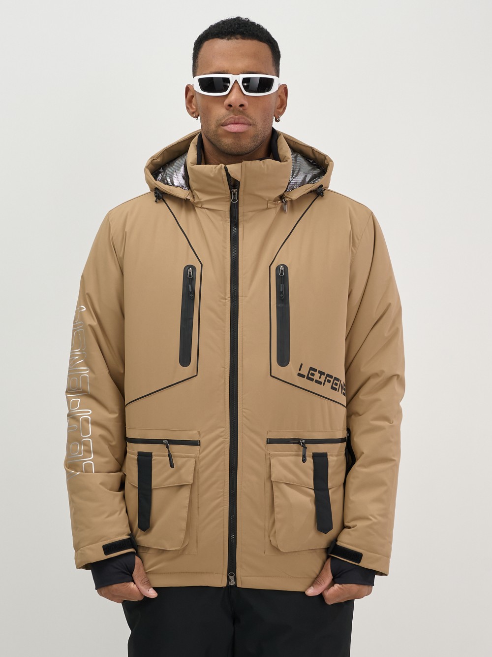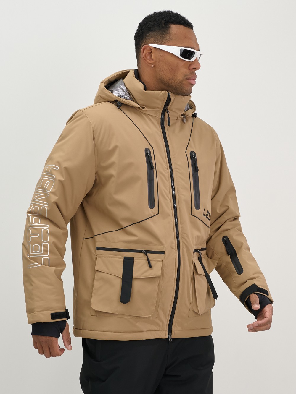 Горнолыжная куртка мужская УЦЕНКА бежевого цвета 0924B
