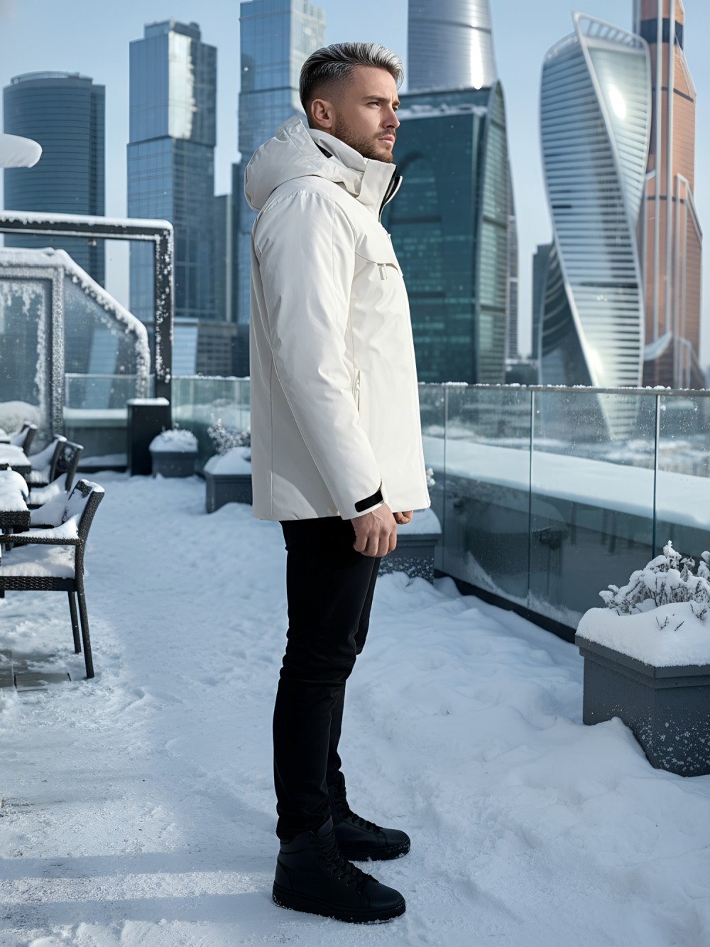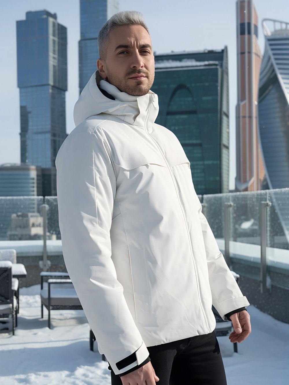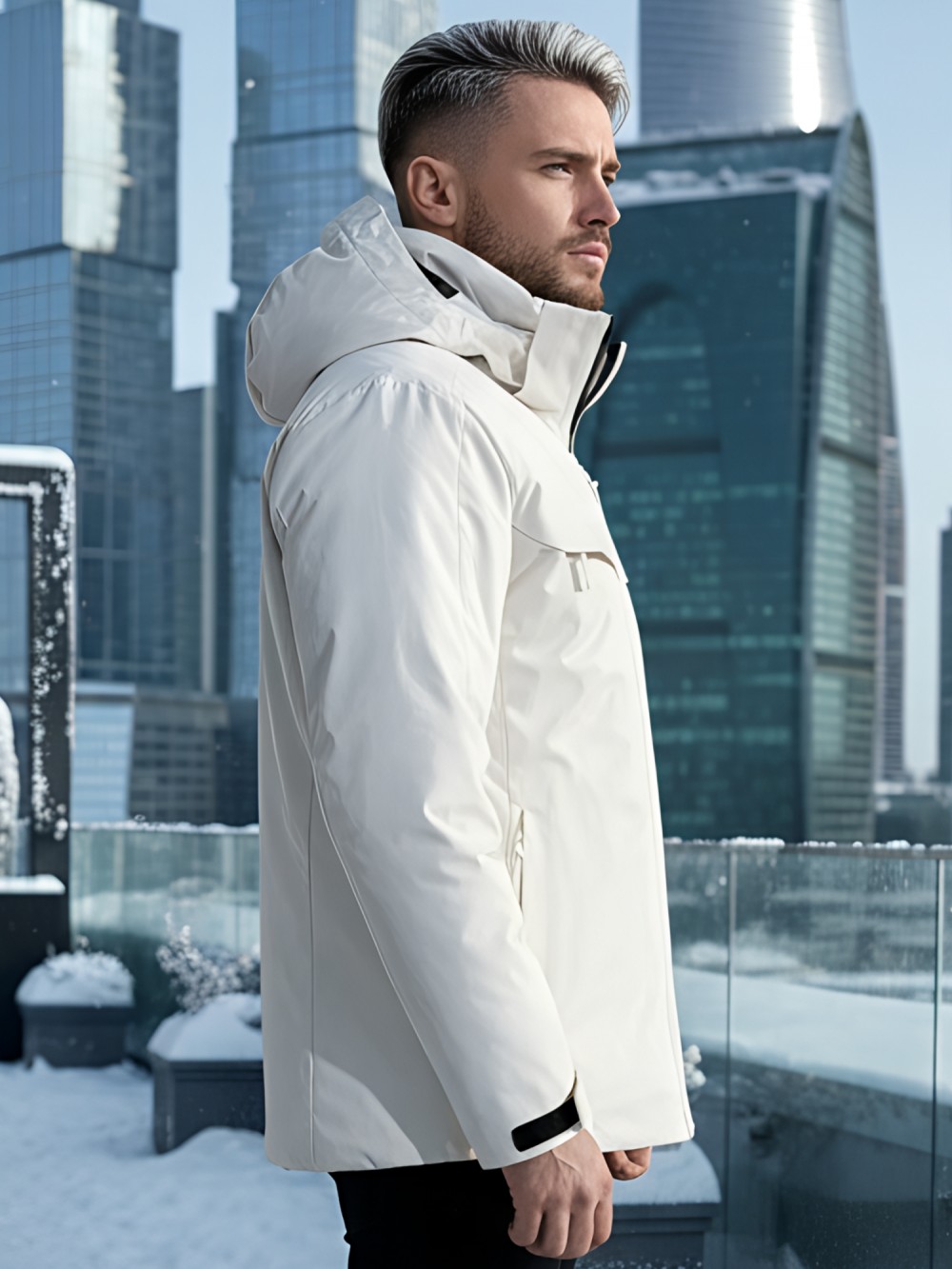 Плотная износостойкая ткань и продуманный утепляющий пакет работают как единая система защиты. Влагозащитные молнии YKK и аккуратно обработанные швы препятствуют промоканию, высокая горловина с мягким флисом бережно закрывает шею. Съёмный капюшон легко подстраивается по объёму, а манжеты и нижний край фиксируются так, чтобы внутрь не попадал снег.