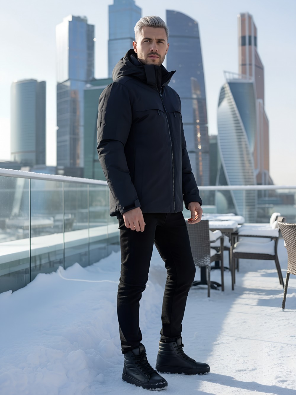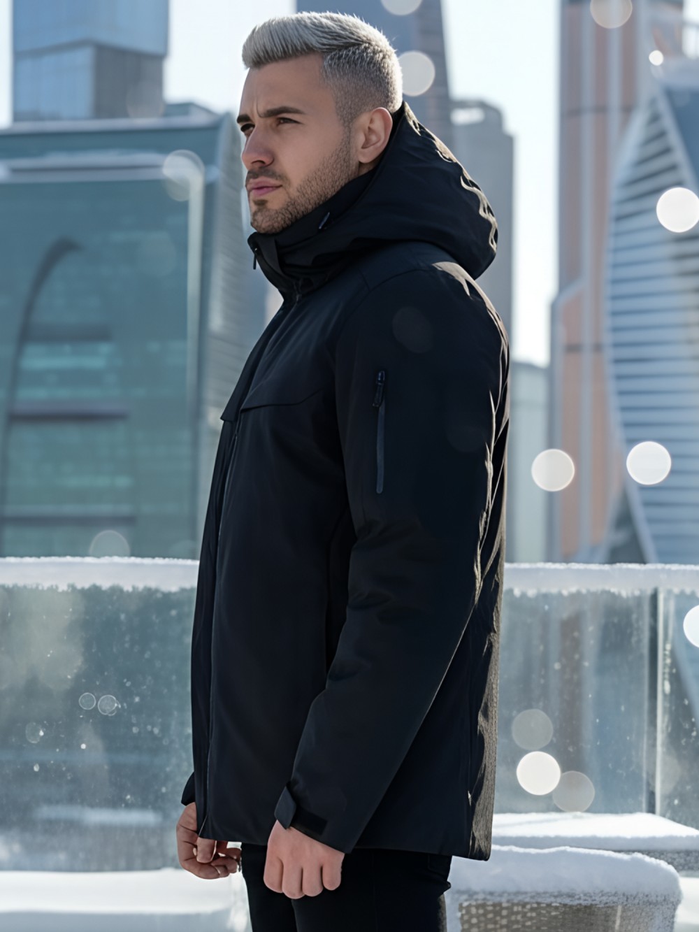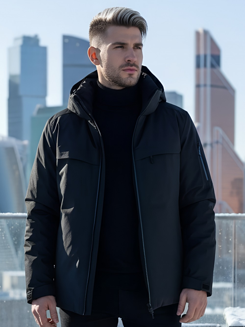 Плотная износостойкая ткань и продуманный утепляющий пакет работают как единая система защиты. Влагозащитные молнии YKK и аккуратно обработанные швы препятствуют промоканию, высокая горловина с мягким флисом бережно закрывает шею. Съёмный капюшон легко подстраивается по объёму, а манжеты и нижний край фиксируются так, чтобы внутрь не попадал снег.