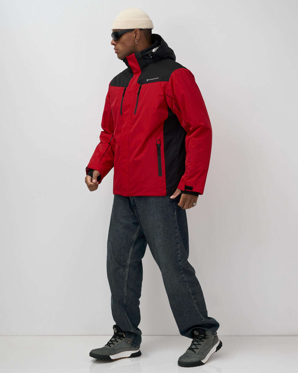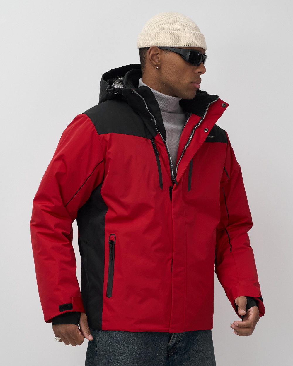 Горнолыжная куртка мужская зимняя красного цвета 7611Kr