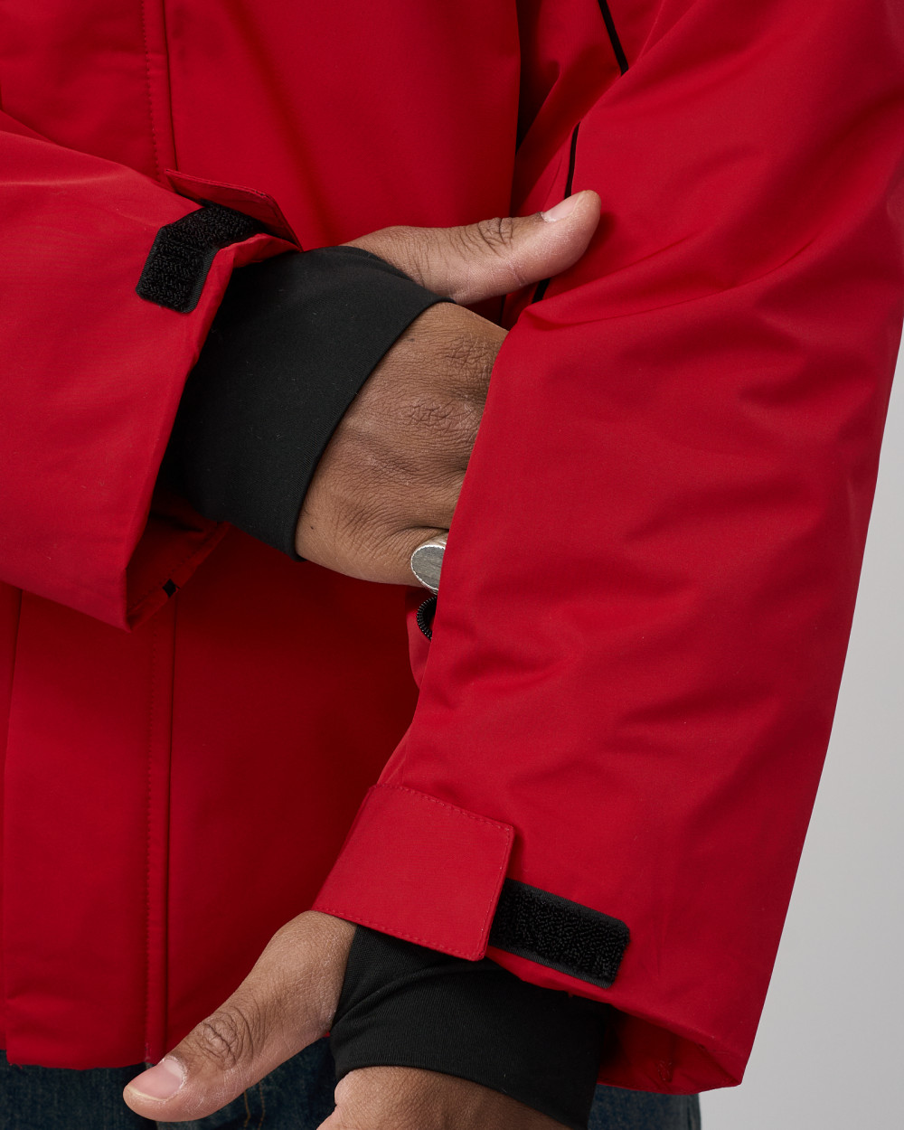 На капюшоне, по низу куртки, на рукавах