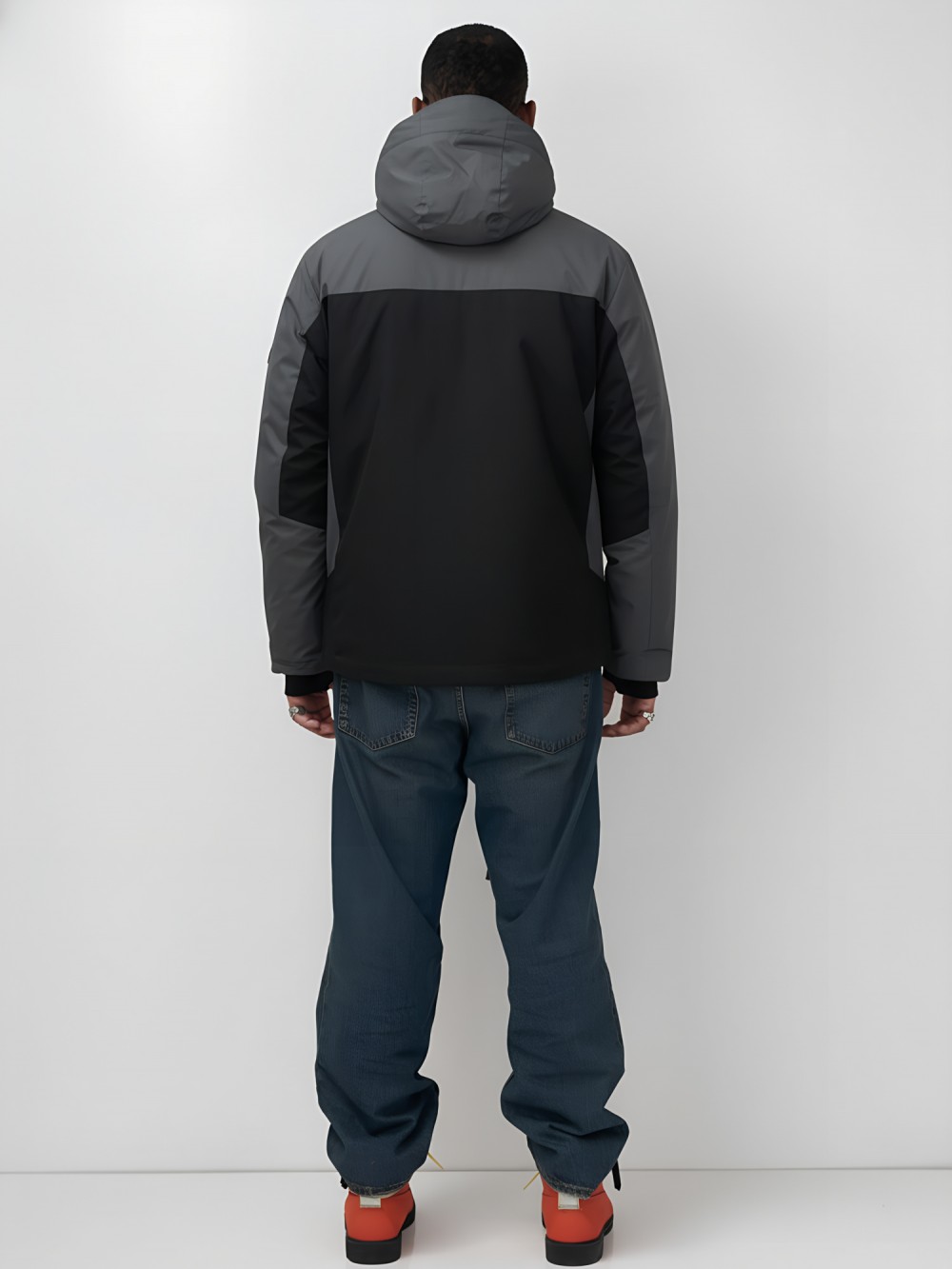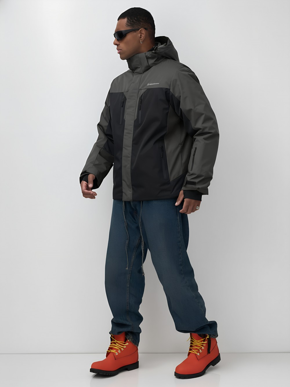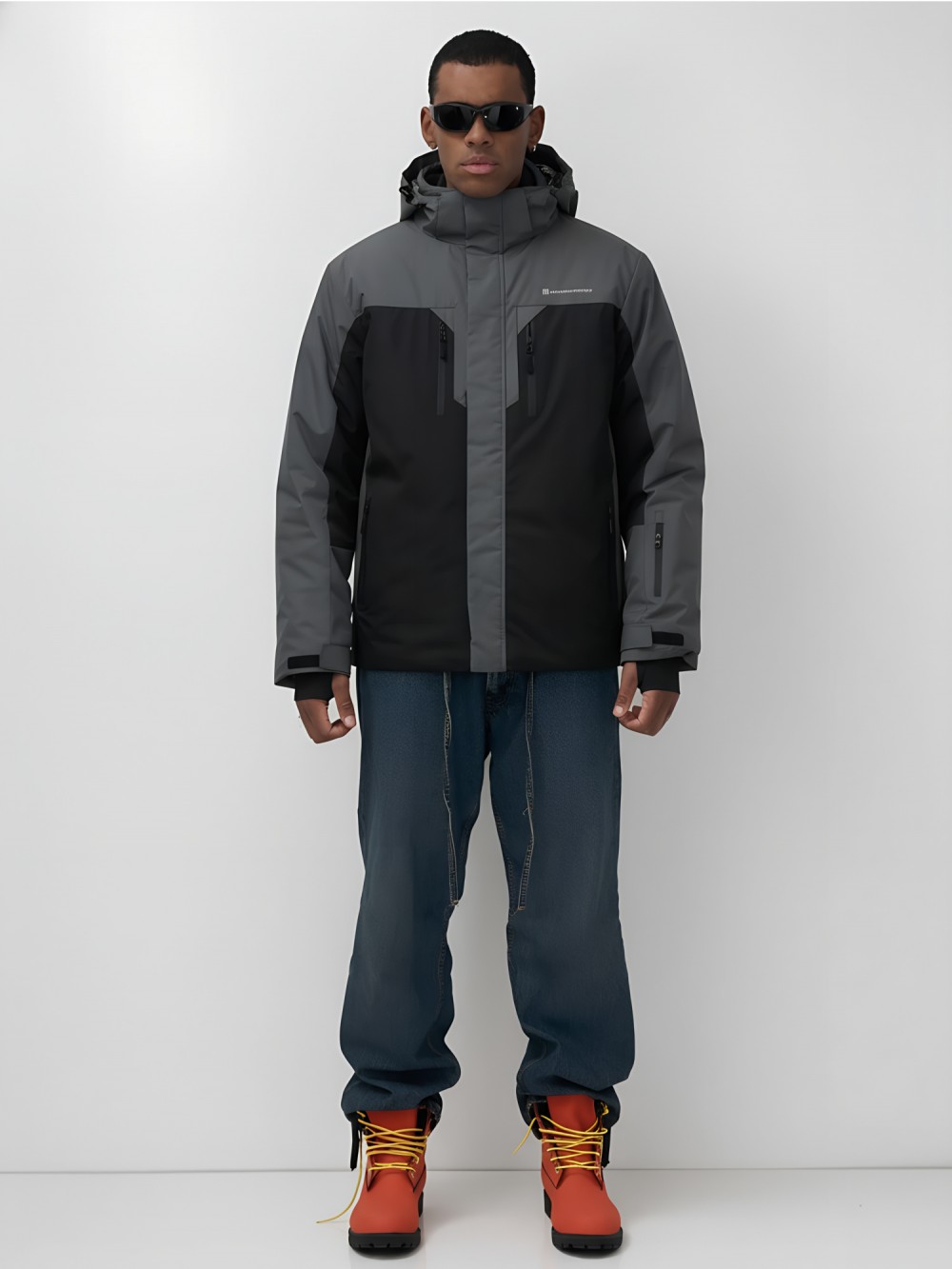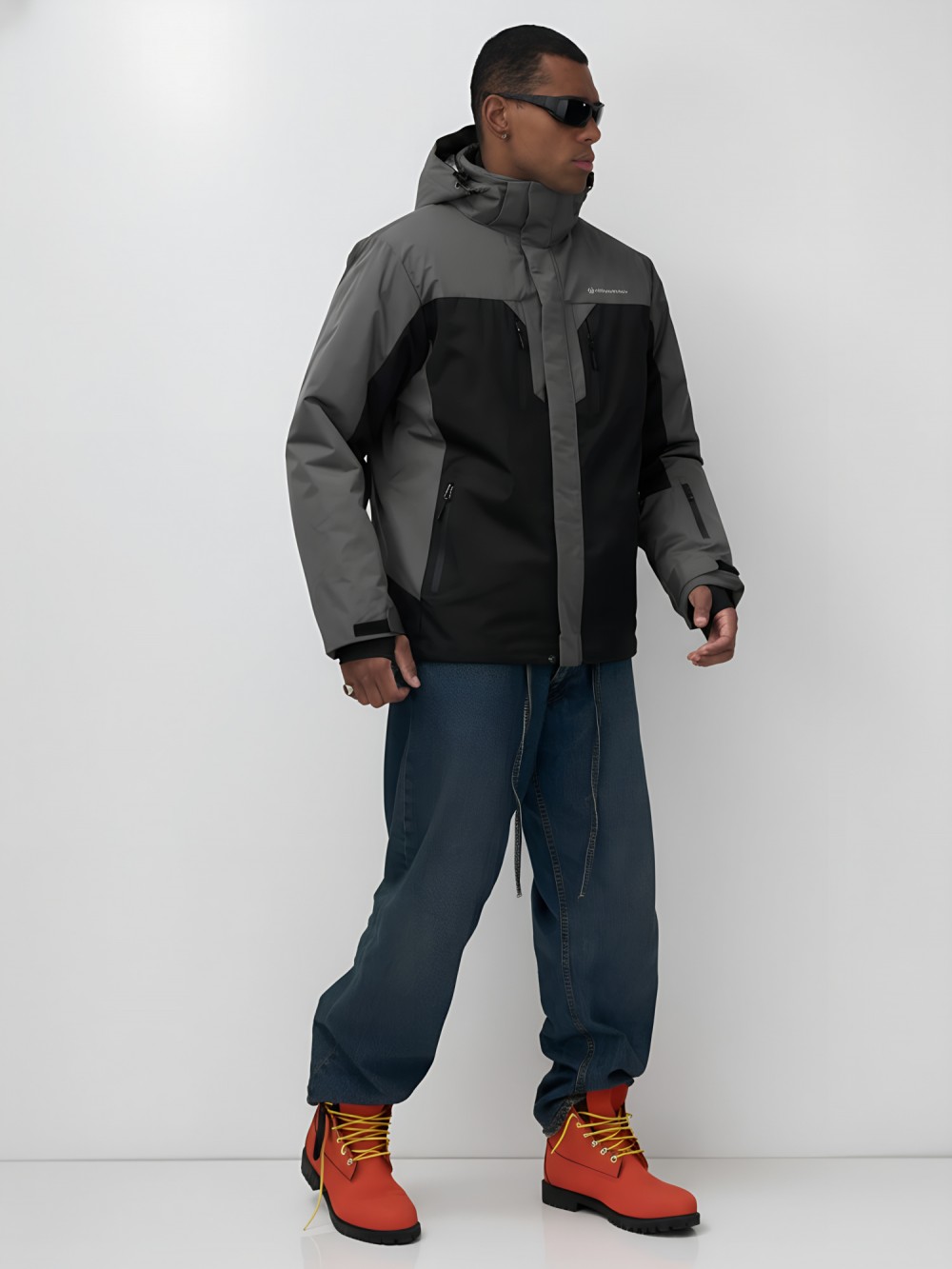 Горнолыжная куртка мужская зимняя темно-серого цвета 7612TC