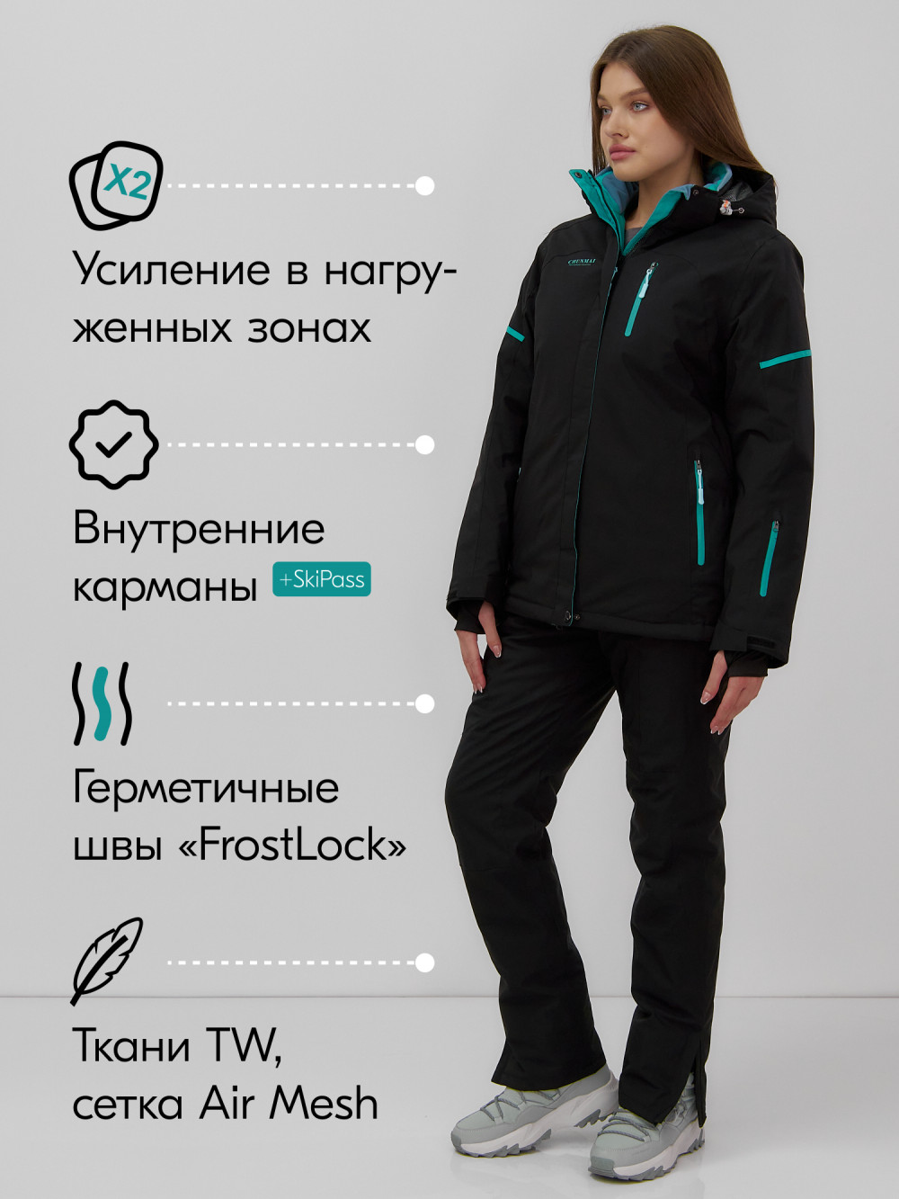 Горнолыжный костюм женский зимний черного цвета 001_1Ch