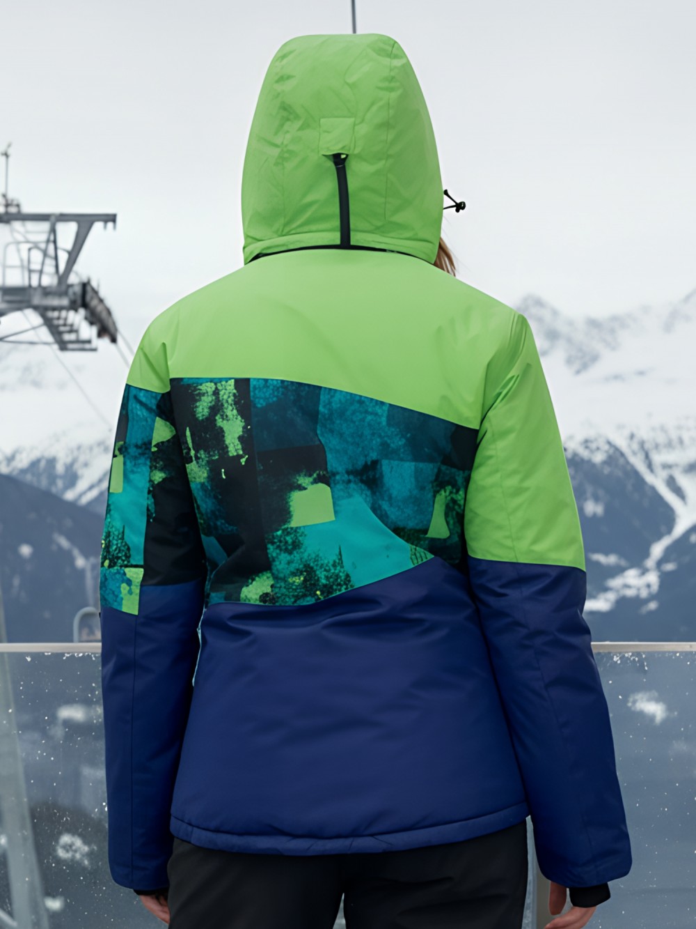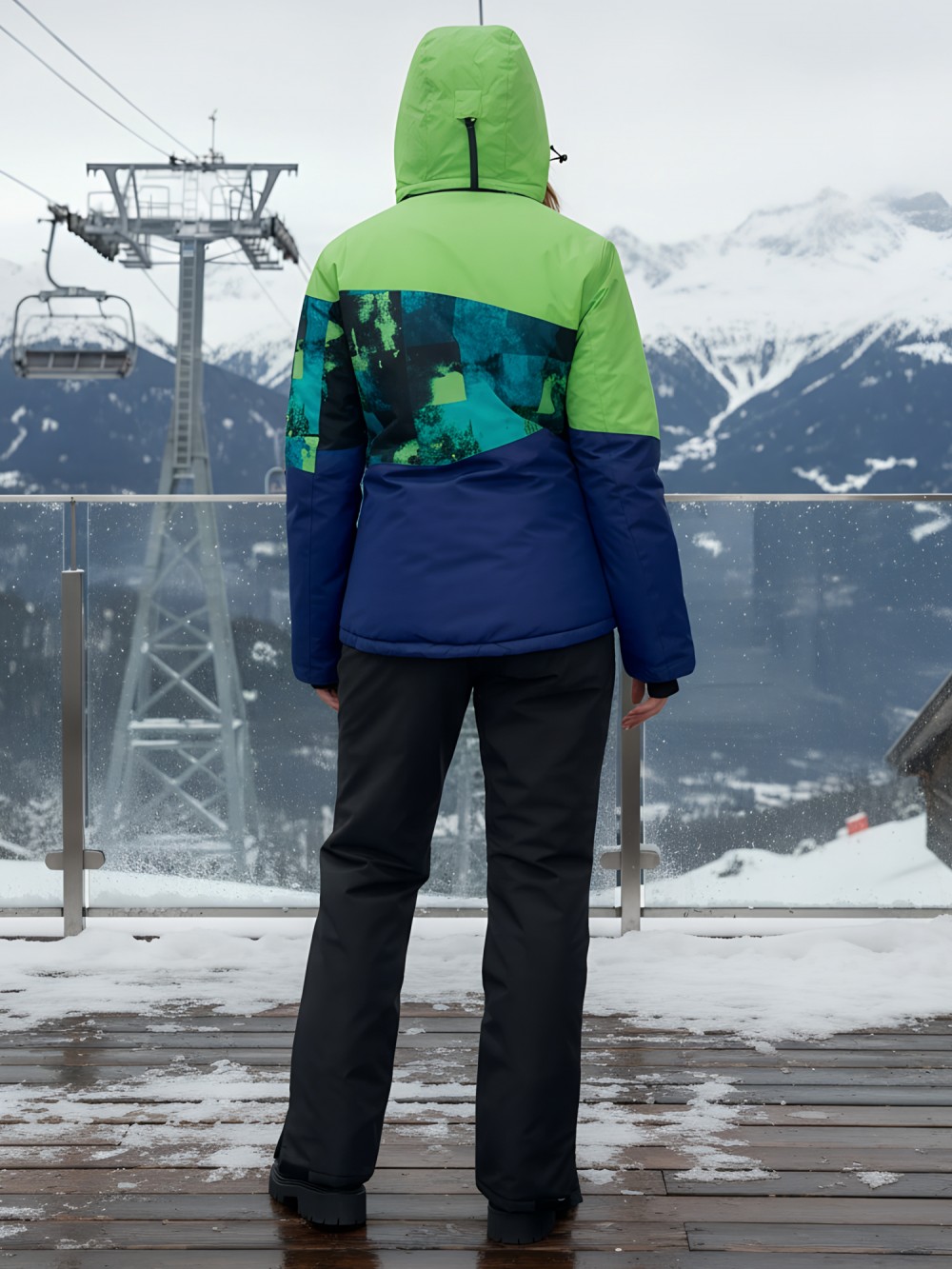Яркие цвета — красный, зеленый, розовый, бирюзовый и салатовый — в сочетании с абстрактным геометрическим рисунком и светоотражающими деталями создают стильный образ, который выделит вас на фоне зимних пейзажей. Этот костюм идеально подходит как для спортивных мероприятий, так и для повседневных прогулок по городу.