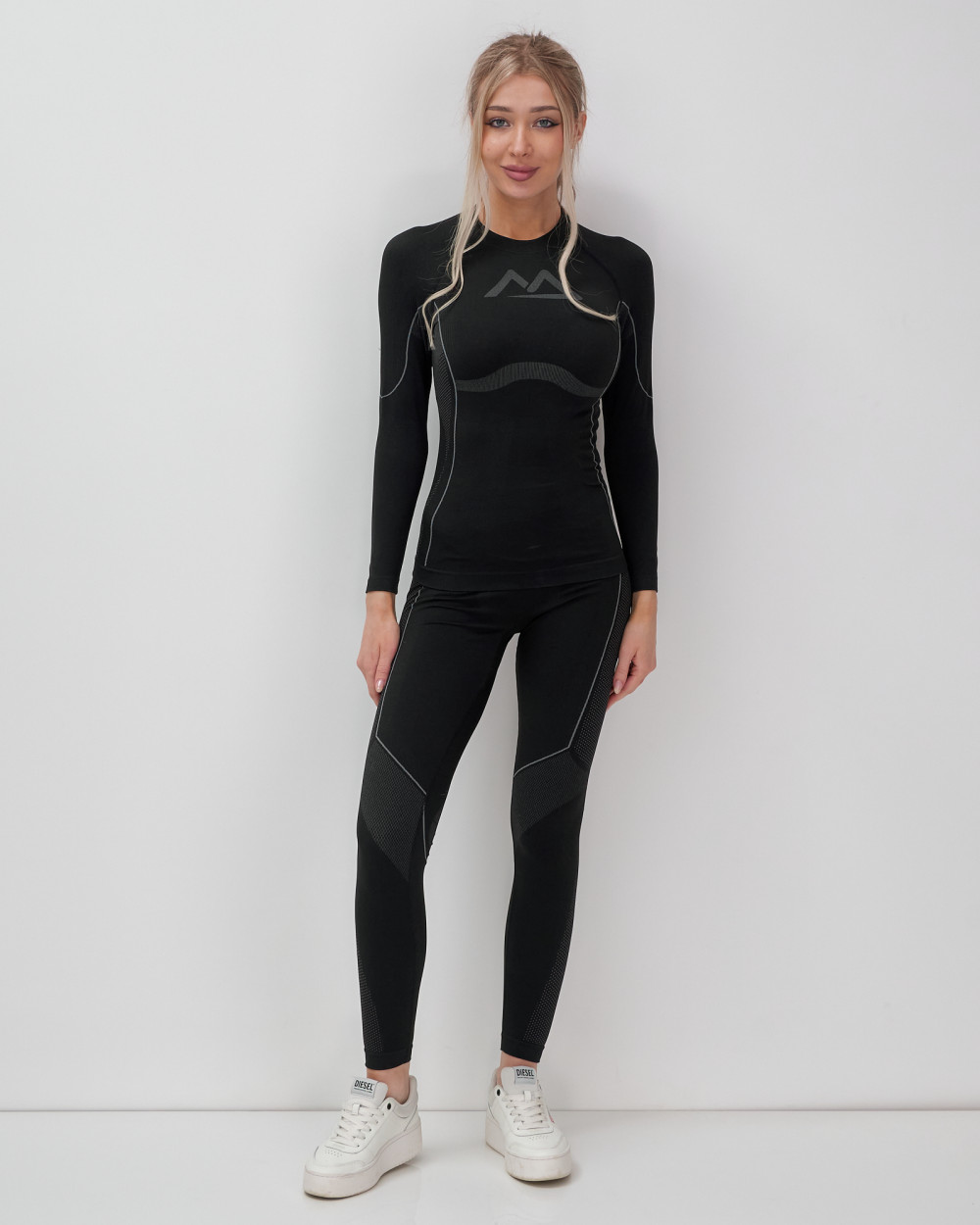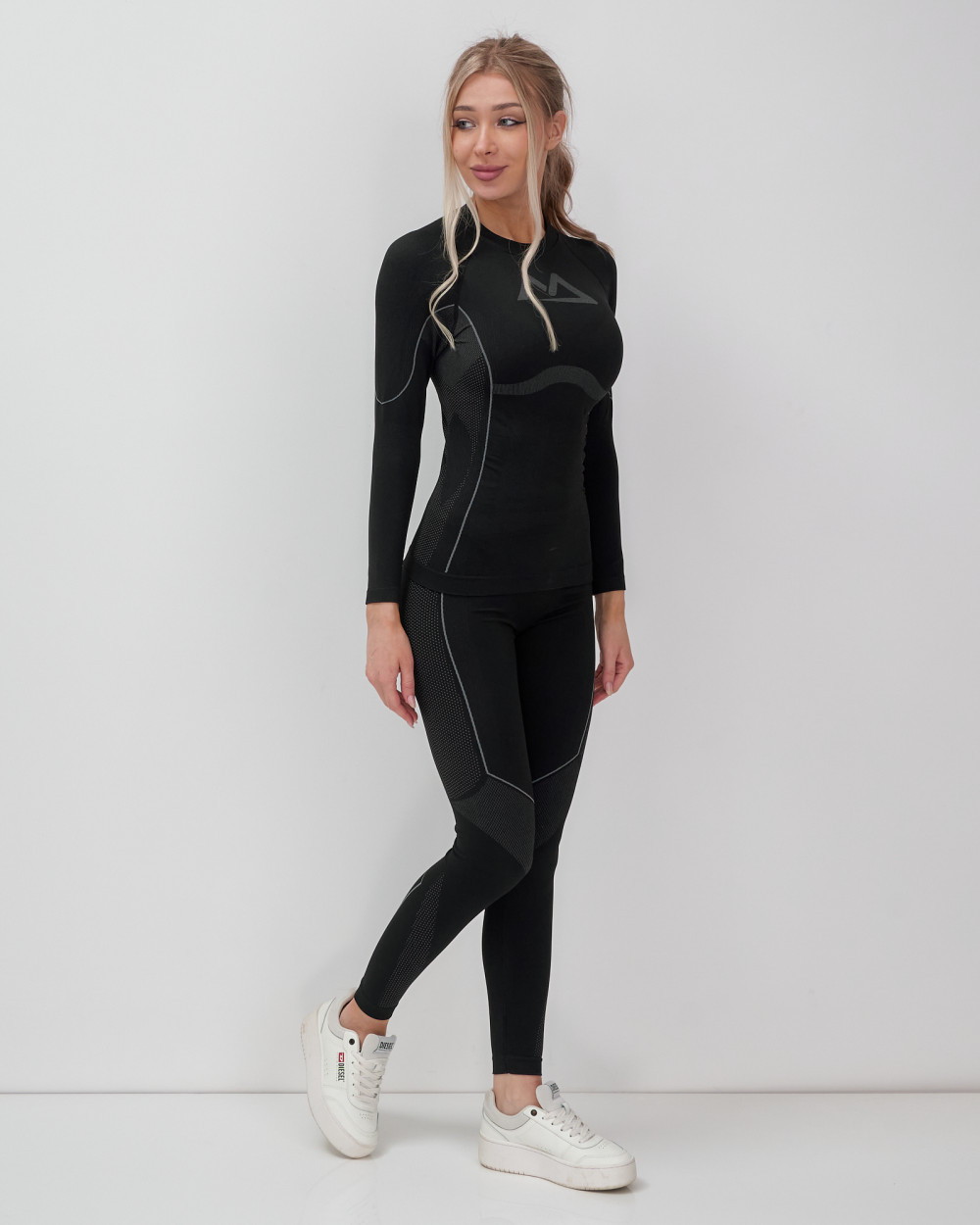 Представляем вашему вниманию комплект женского термобелья из коллекции осень-зима 2025, созданный для активных и стильных женщин, которые ценят комфорт и эстетику. Этот комплект включает в себя лонгслив и леггинсы, выполненные из высококачественных материалов: 90% полиэстера и 10% эластана.