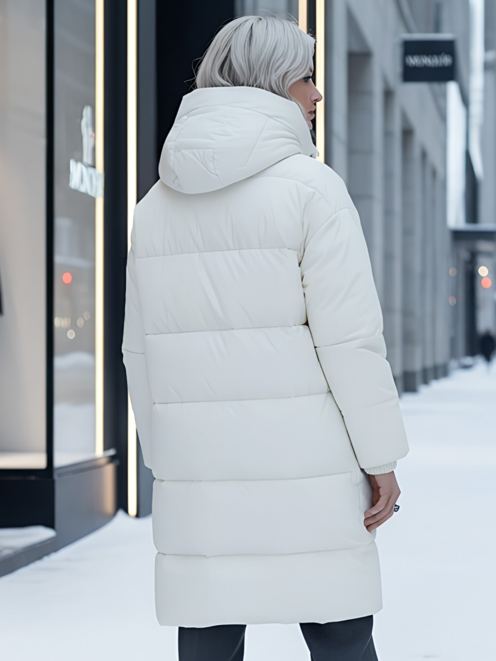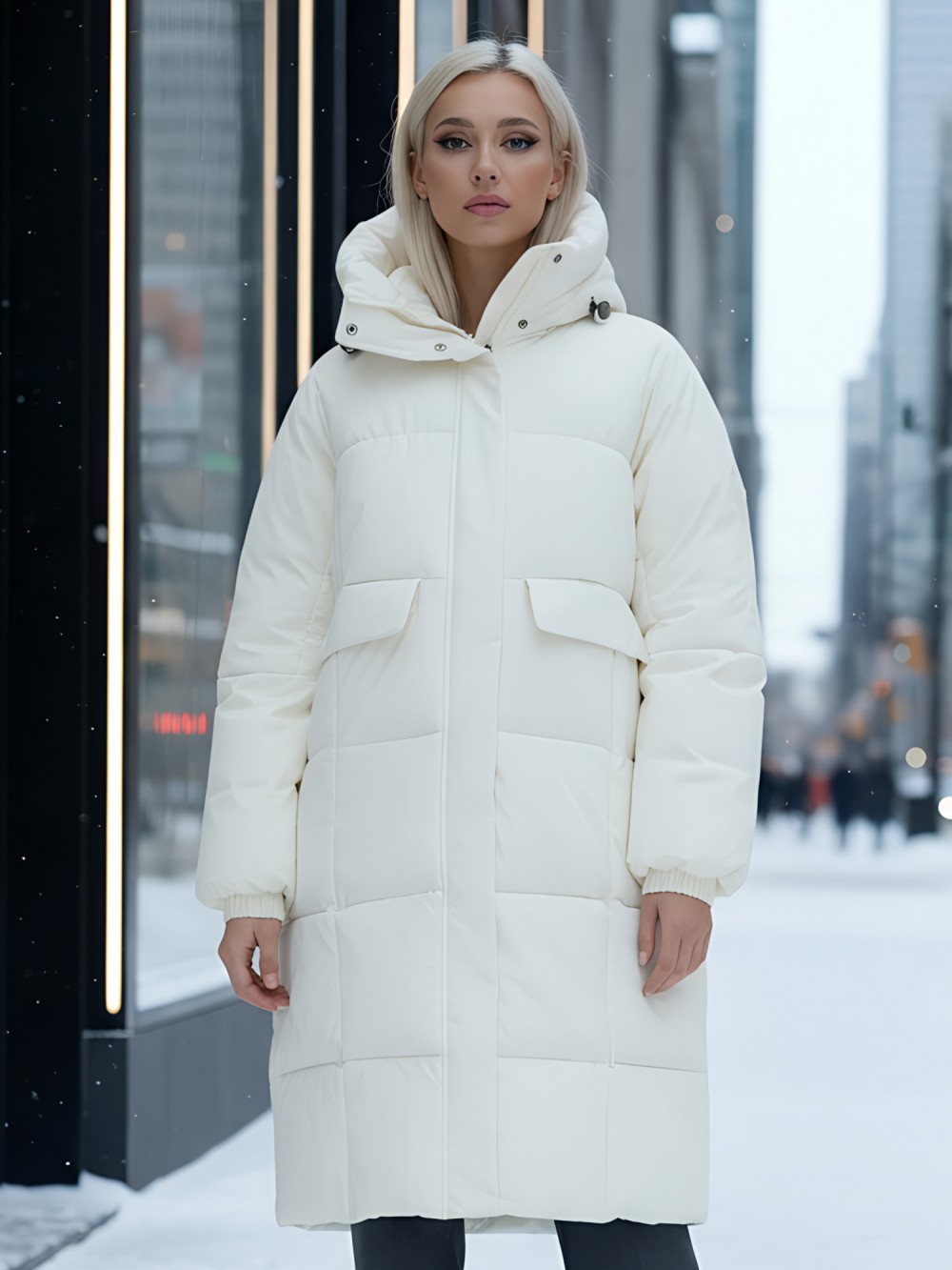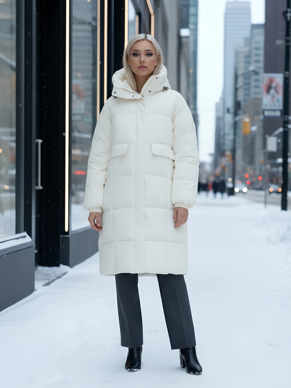 — Двойная молния: обеспечивает легкость застегивания и возможность регулировки объема, что делает пальто удобным в носке.