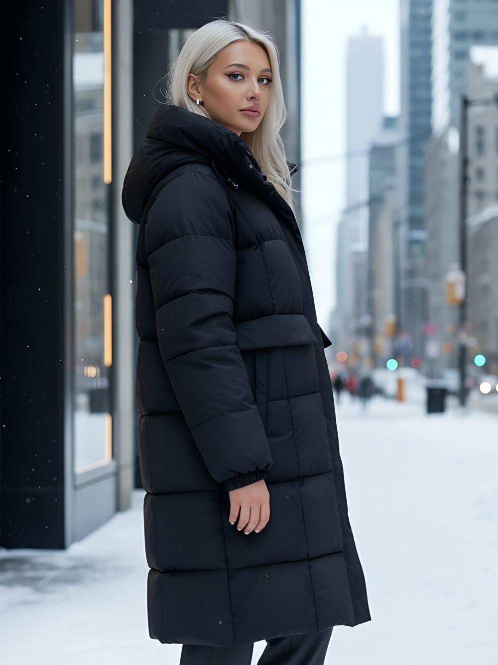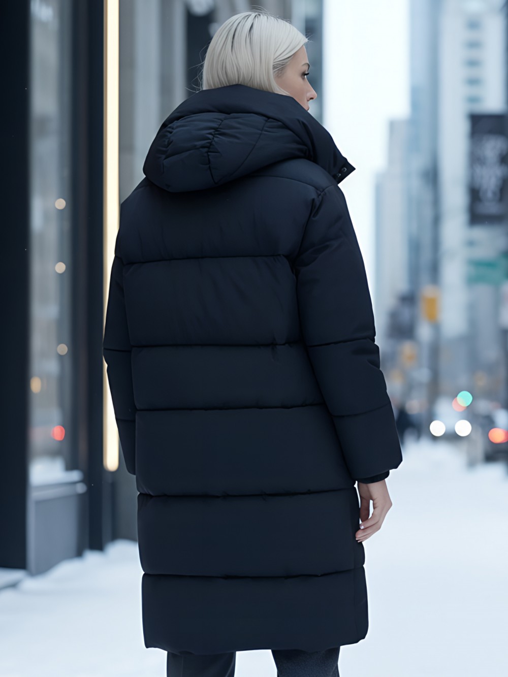 — Двойная молния: обеспечивает легкость застегивания и возможность регулировки объема, что делает пальто удобным в носке.