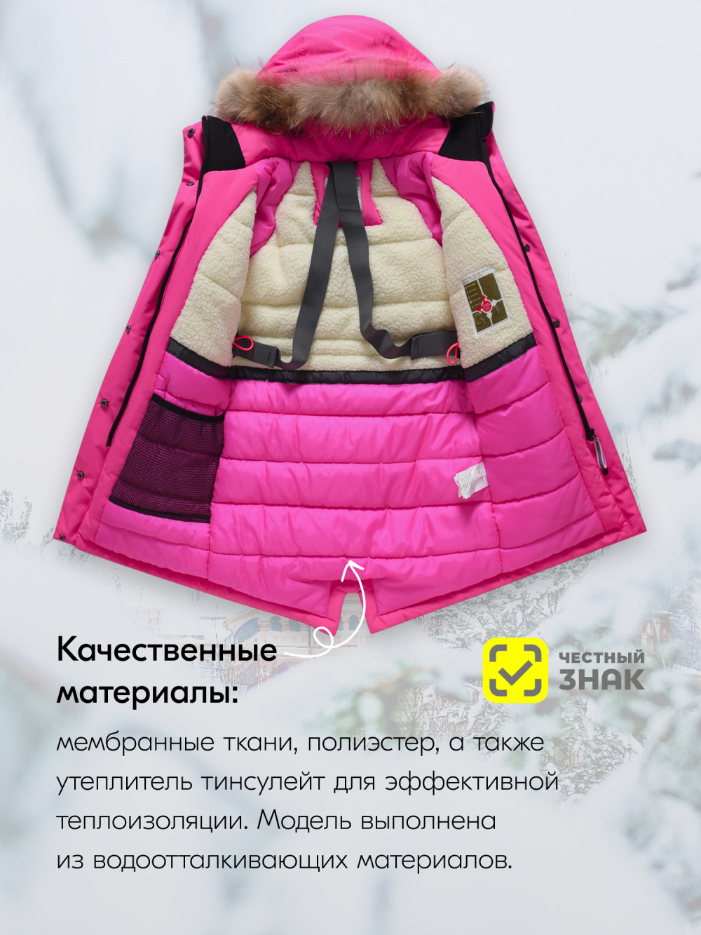 Эта парка станет отличным выбором для активных девочек, обеспечивая надежную защиту от непогоды и стильный внешний вид. Уверены, вы по достоинству оцените высокое качество нашей продукции! Пусть зима станет временем незабываемых приключений!
