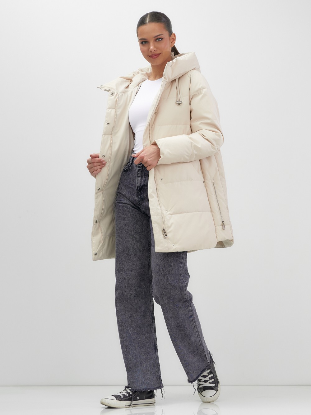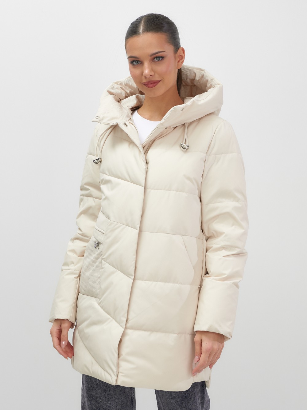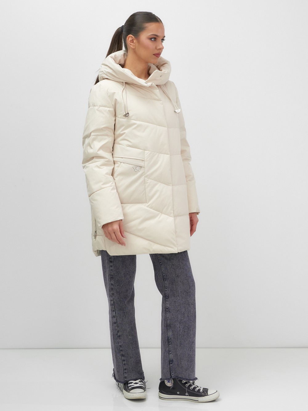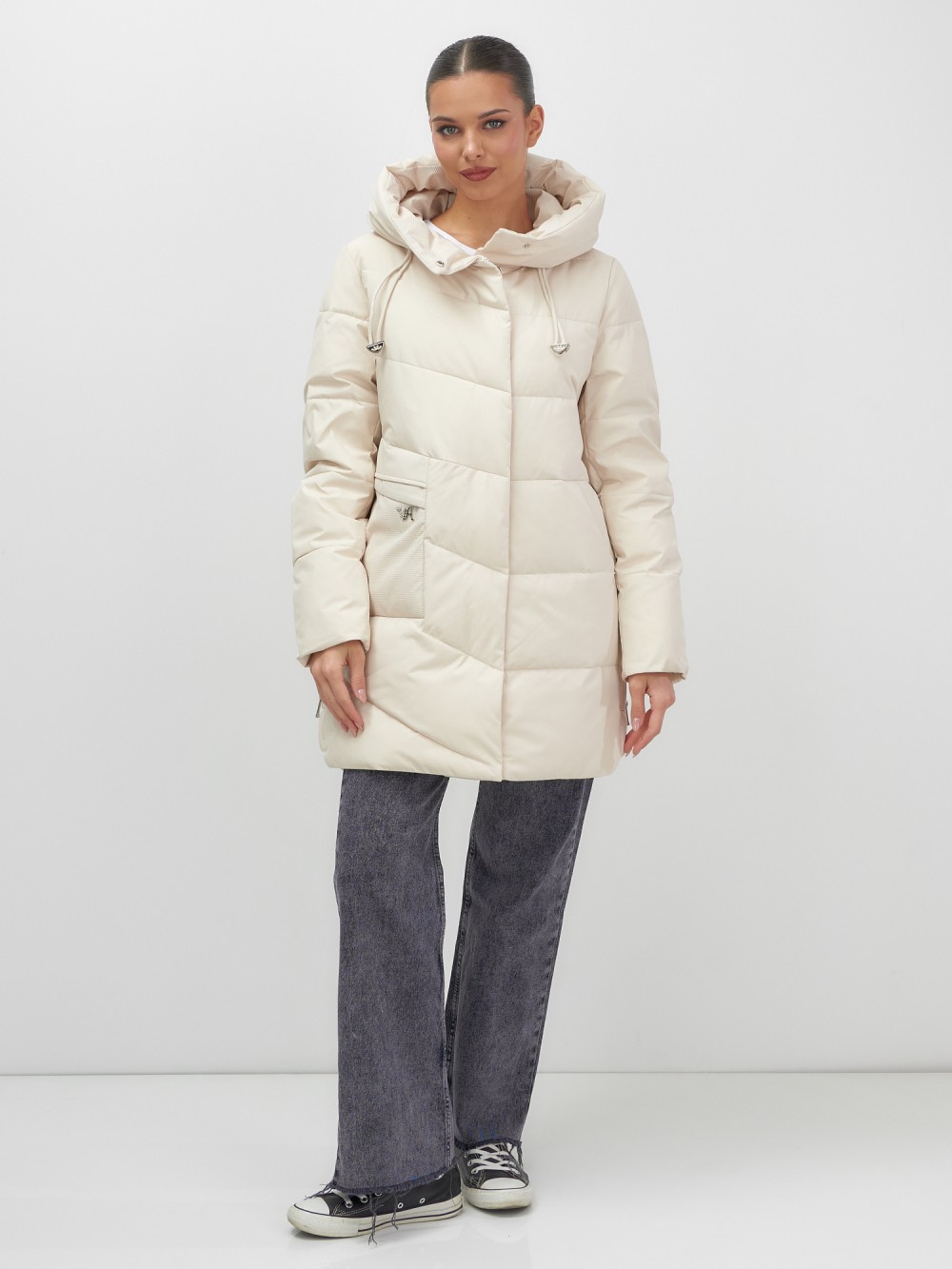 Куртка женская демисезонная с капюшоном бежевого цвета 1139B