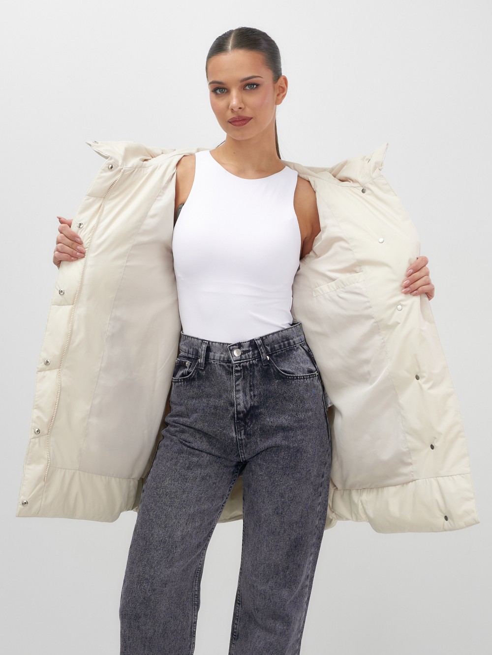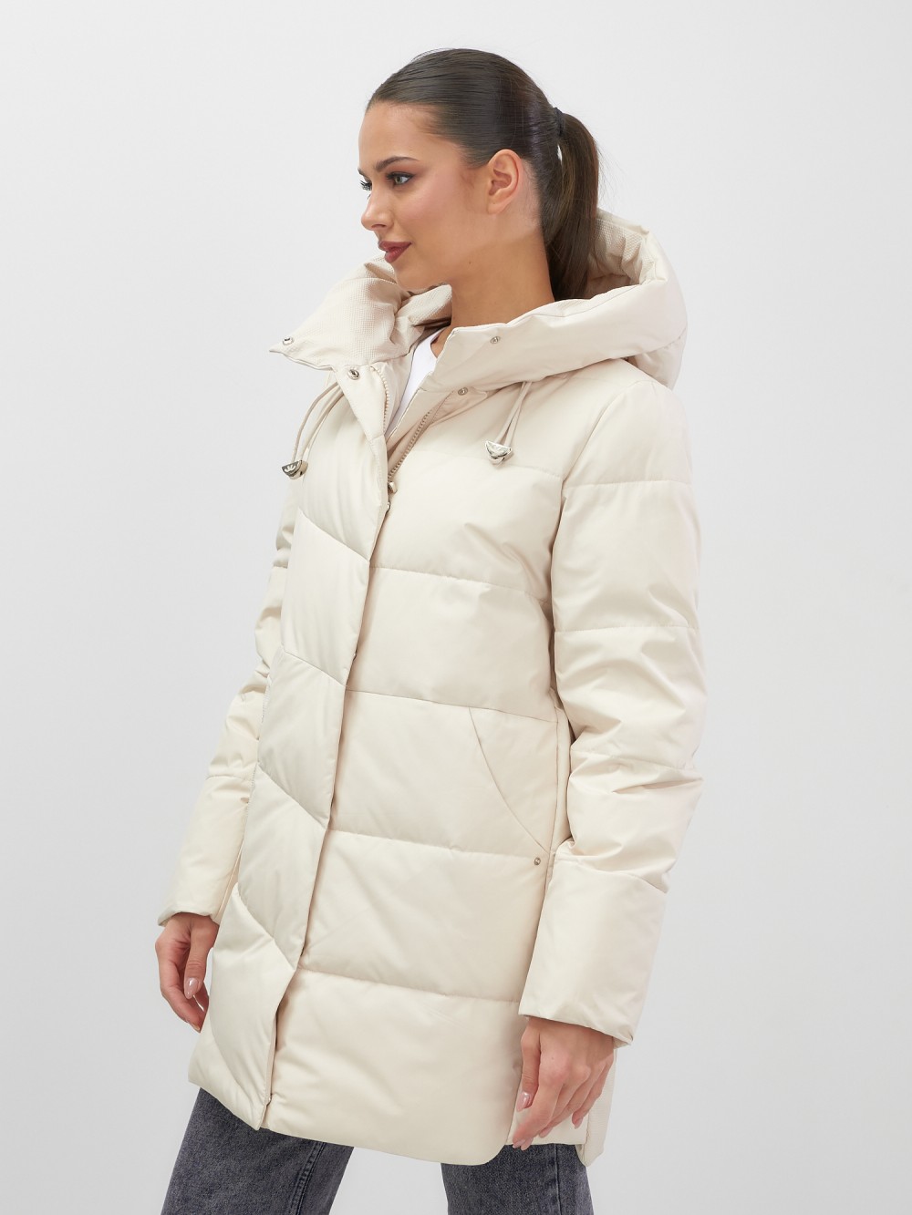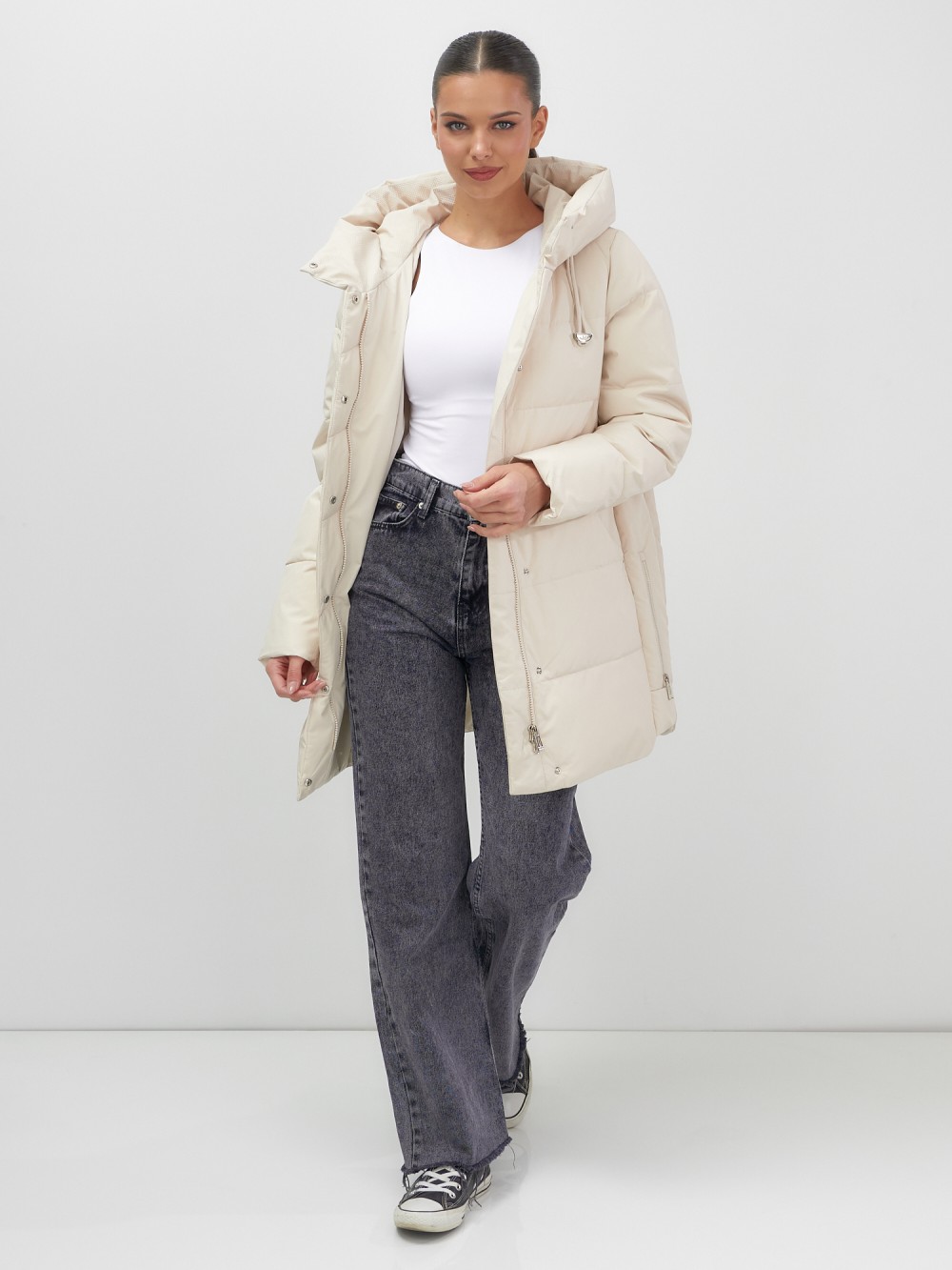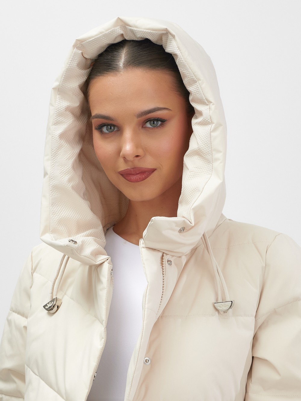 Куртка женская демисезонная с капюшоном бежевого цвета 1139B