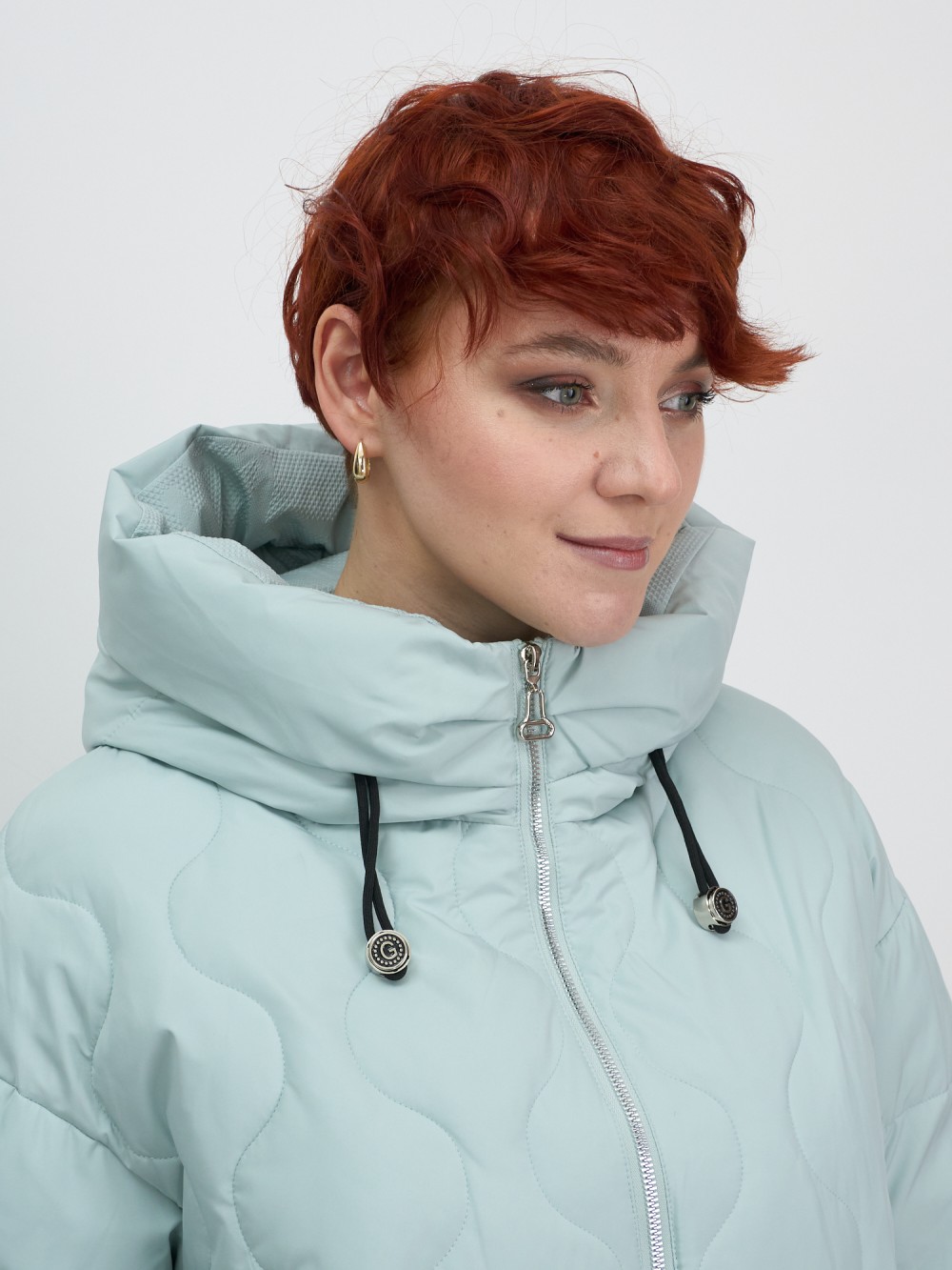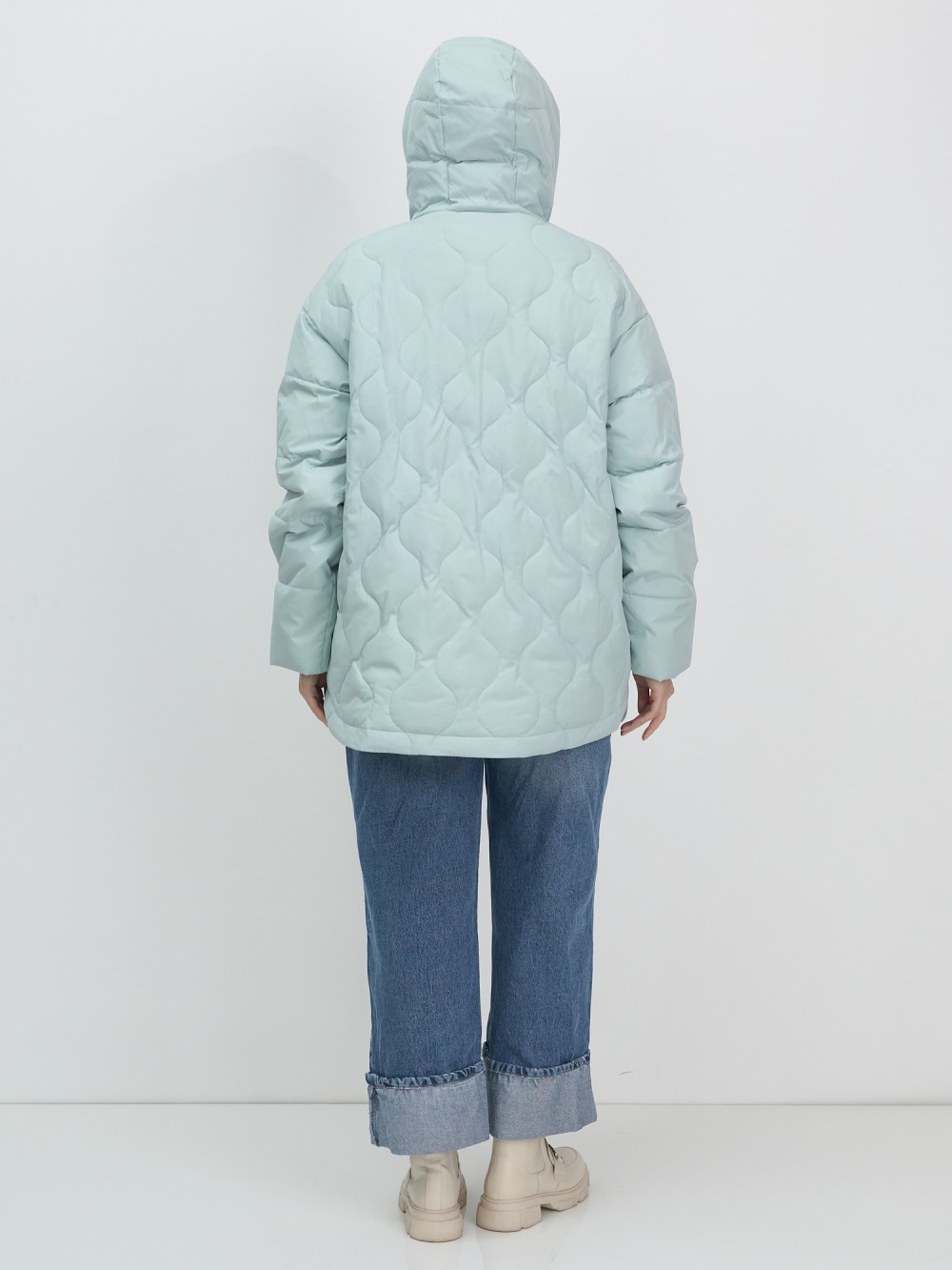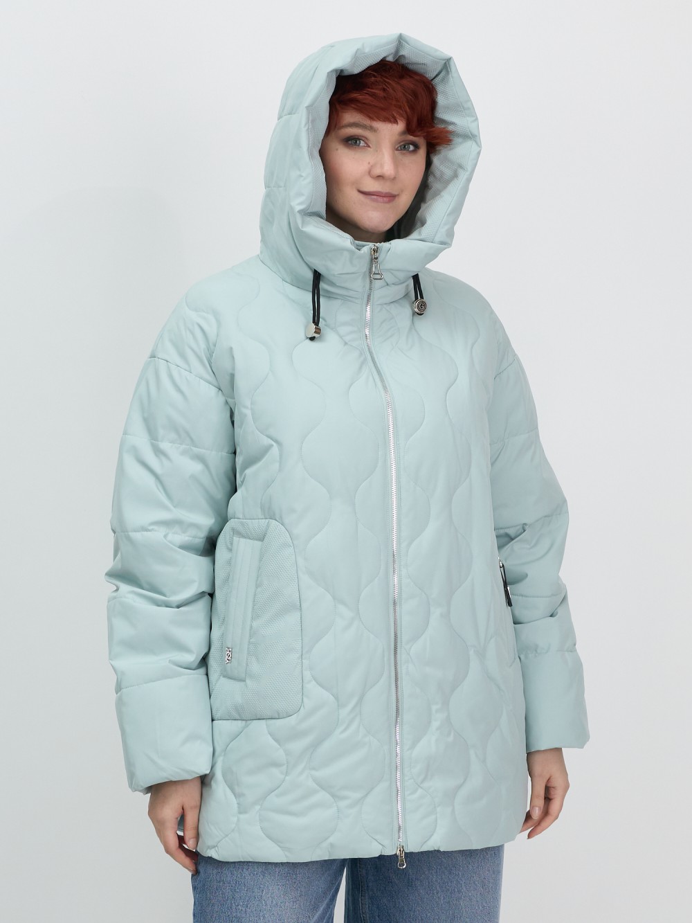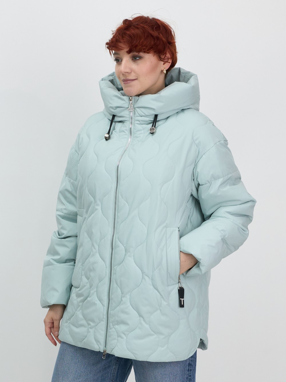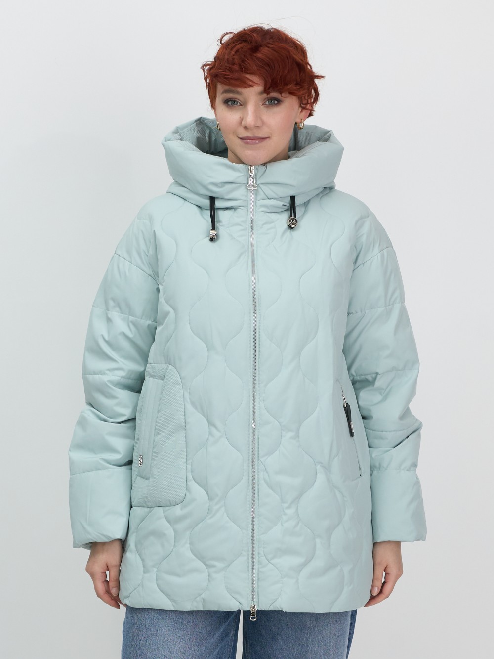 Куртка женская демисезонная с капюшоном бирюзового цвета 1140Br