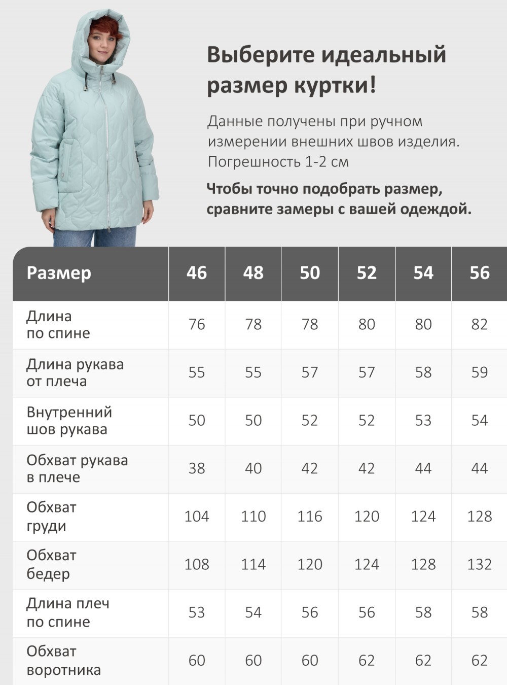 Длина плеч по спине 53 54 56 56 58 58