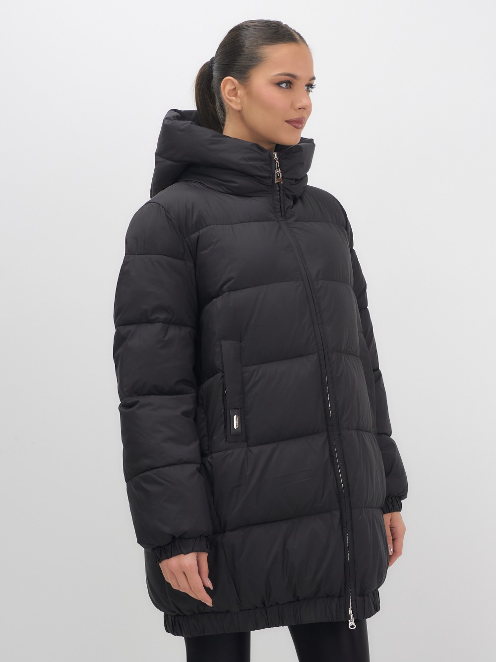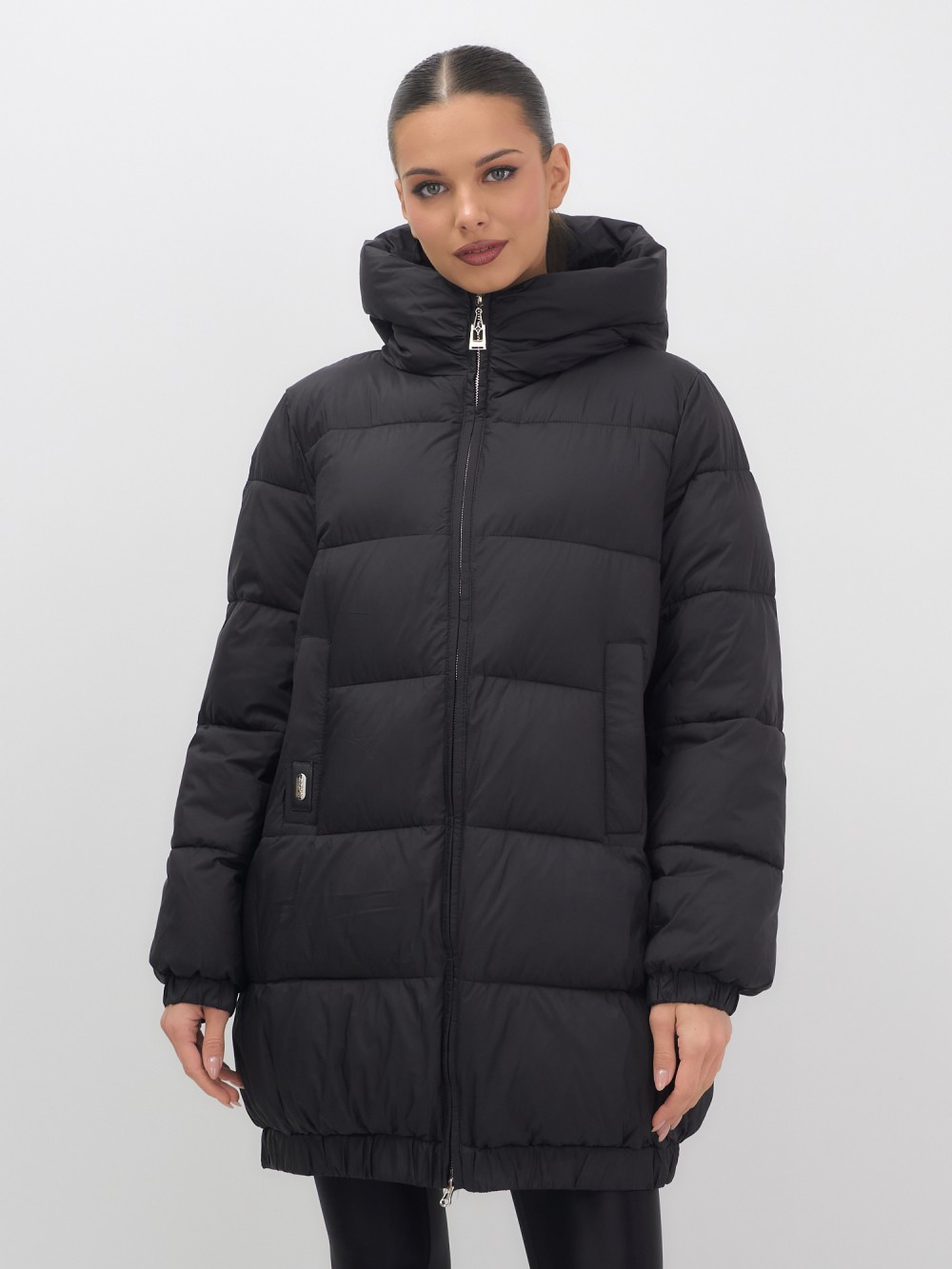 Куртка женская зимняя на резинке большого размера черного цвета 7619Ch