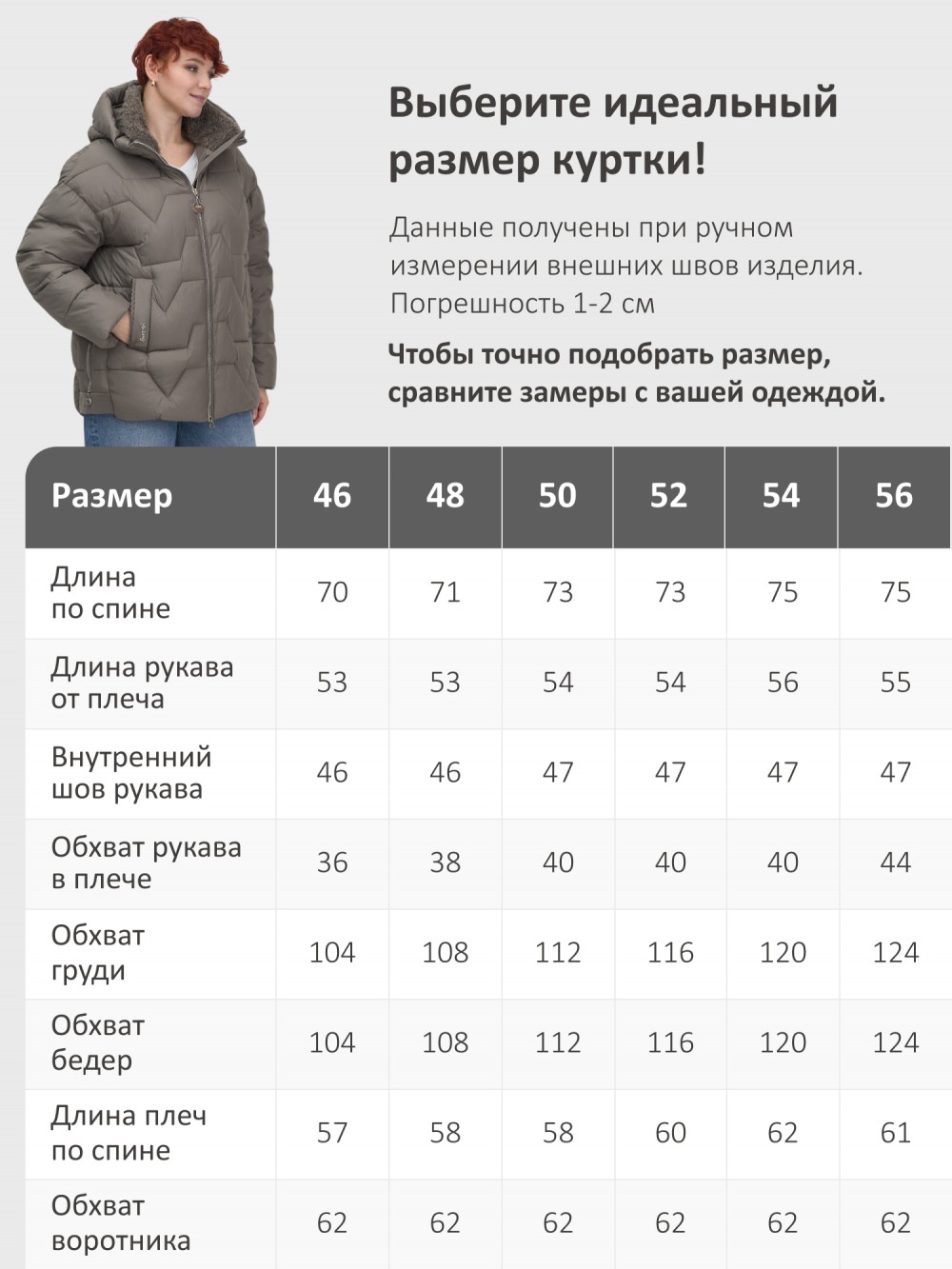 Длина плеч по спине 57 58 58 60 62 61