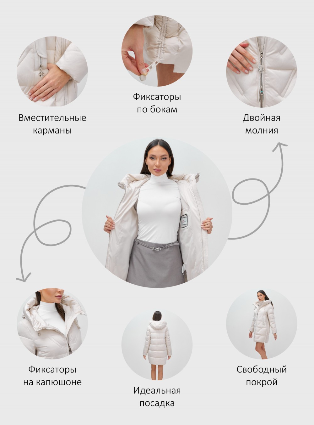 Эта модель выполнена в элегантном, офисном/школьном и повседневном стилях, идеально подходит для различных ситуаций. Декоративные элементы, такие как капюшон и молния, придают куртке современный вид. Доступна в пяти цветах: черный, темно-серый, бежевый, коричневый и светло-коричневый.