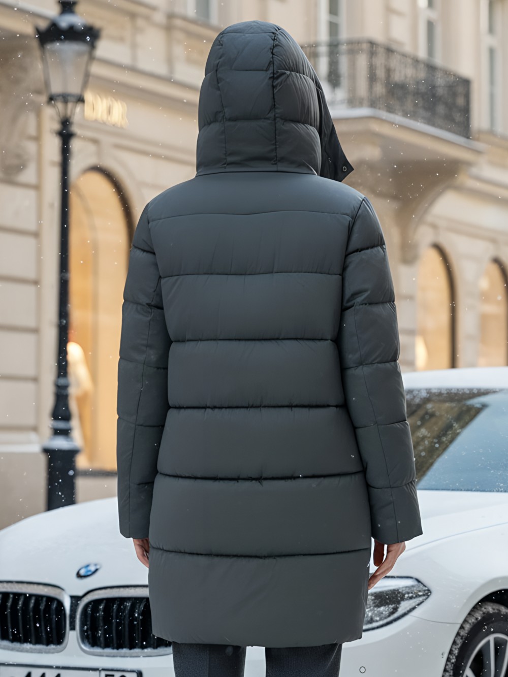 Эта модель выполнена в элегантном, офисном/школьном и повседневном стилях, идеально подходит для различных ситуаций. Декоративные элементы, такие как капюшон и молния, придают куртке современный вид. Доступна в пяти цветах: черный, темно-серый, бежевый, коричневый и светло-коричневый.