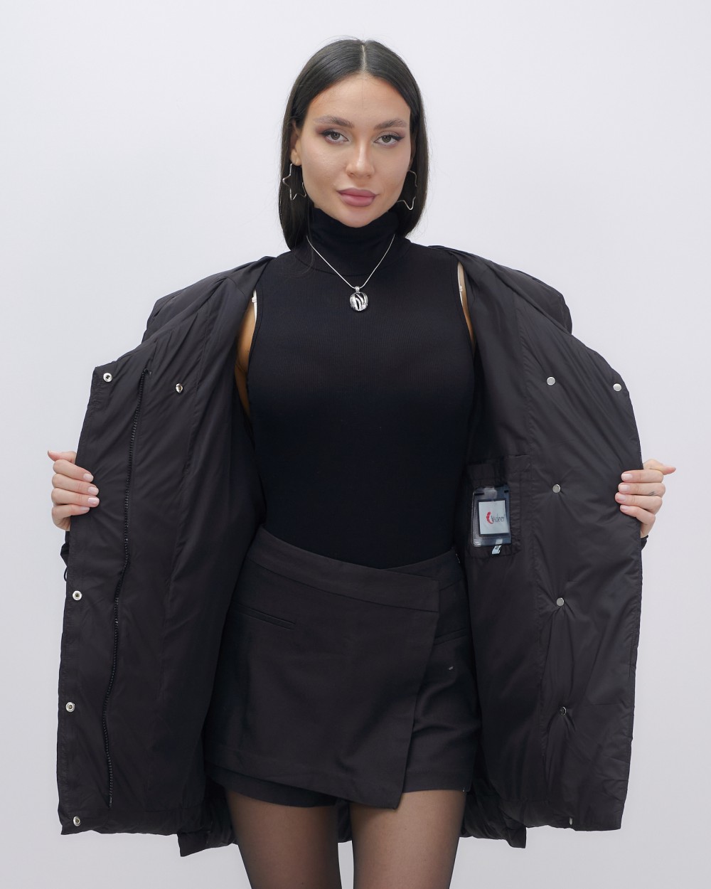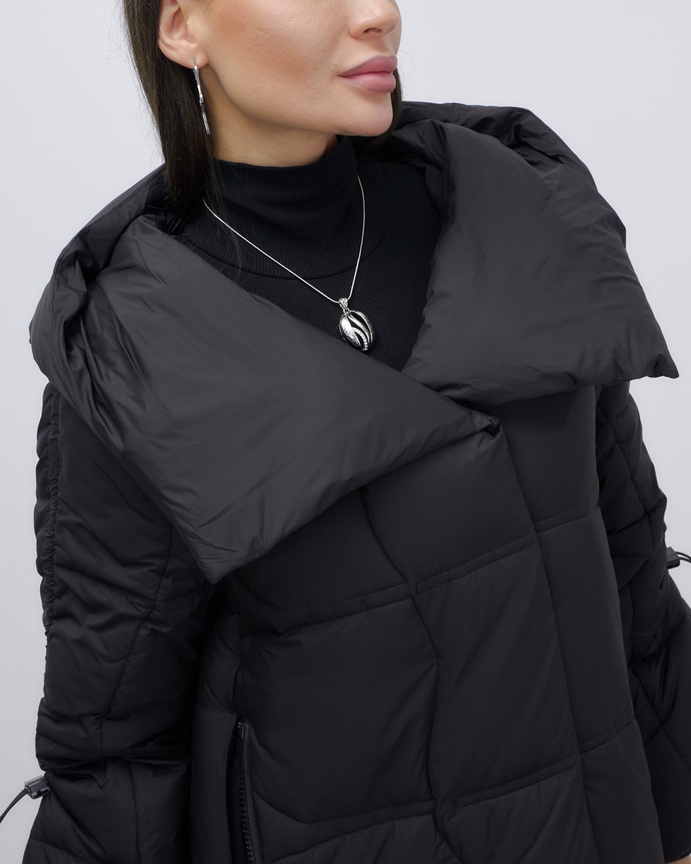 Куртка зимняя женская с большим капюшоном модная черного цвета 7739Ch