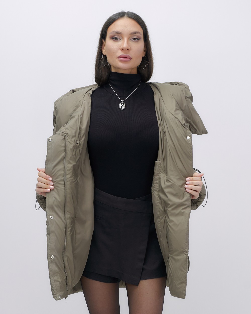 Эта модель выполнена в элегантном и офисном/школьном стилях, подходит для повседневной носки. Декоративные элементы, такие как капюшон и молния, придают куртке стильный вид. Доступна в четырех цветах: черный, темно-зеленый, бежевый и коричневый. Ключевые особенности – быстросохнущий, водоотталкивающий, гипоаллергенный и дышащий материал с разрезом.