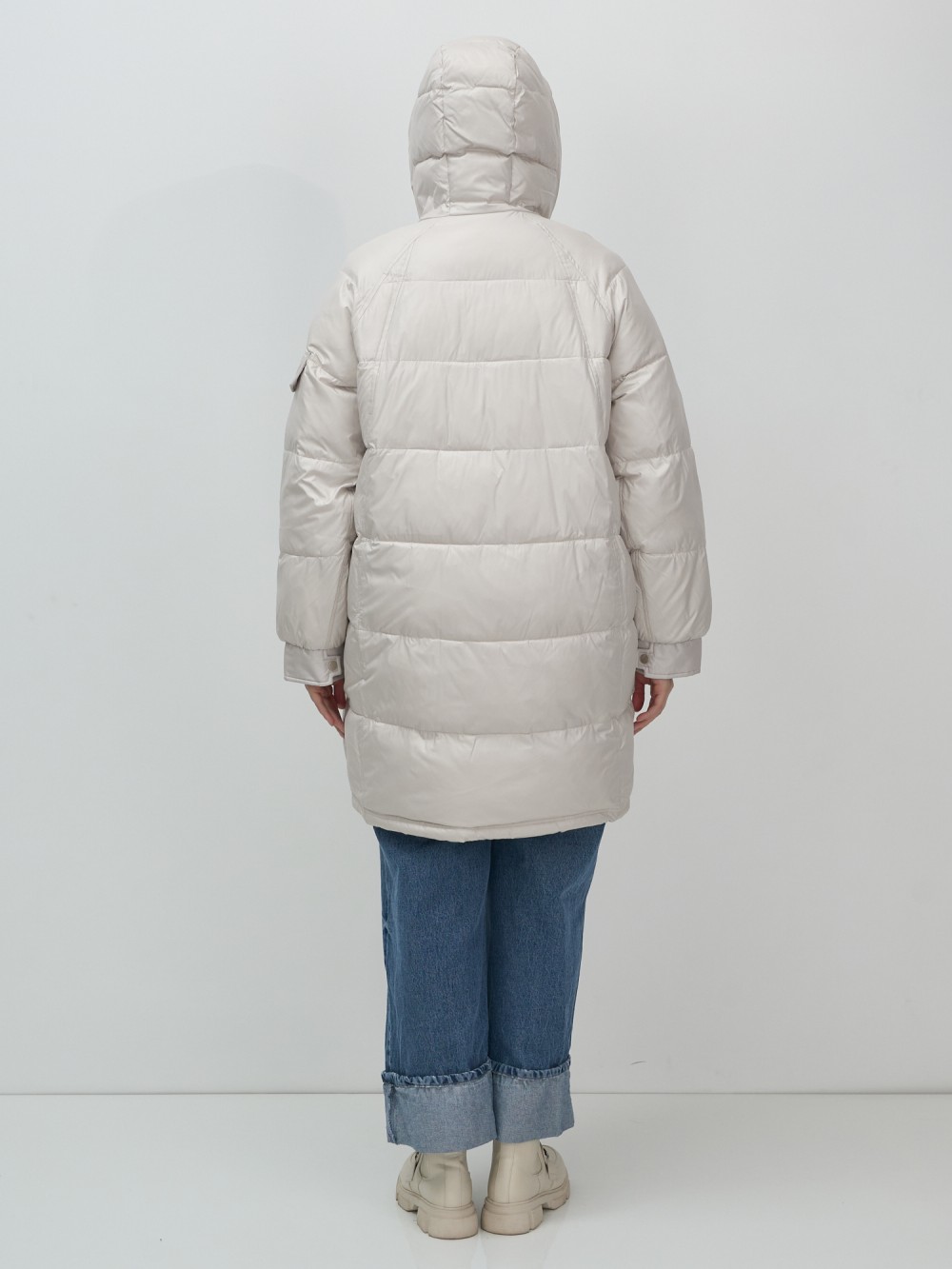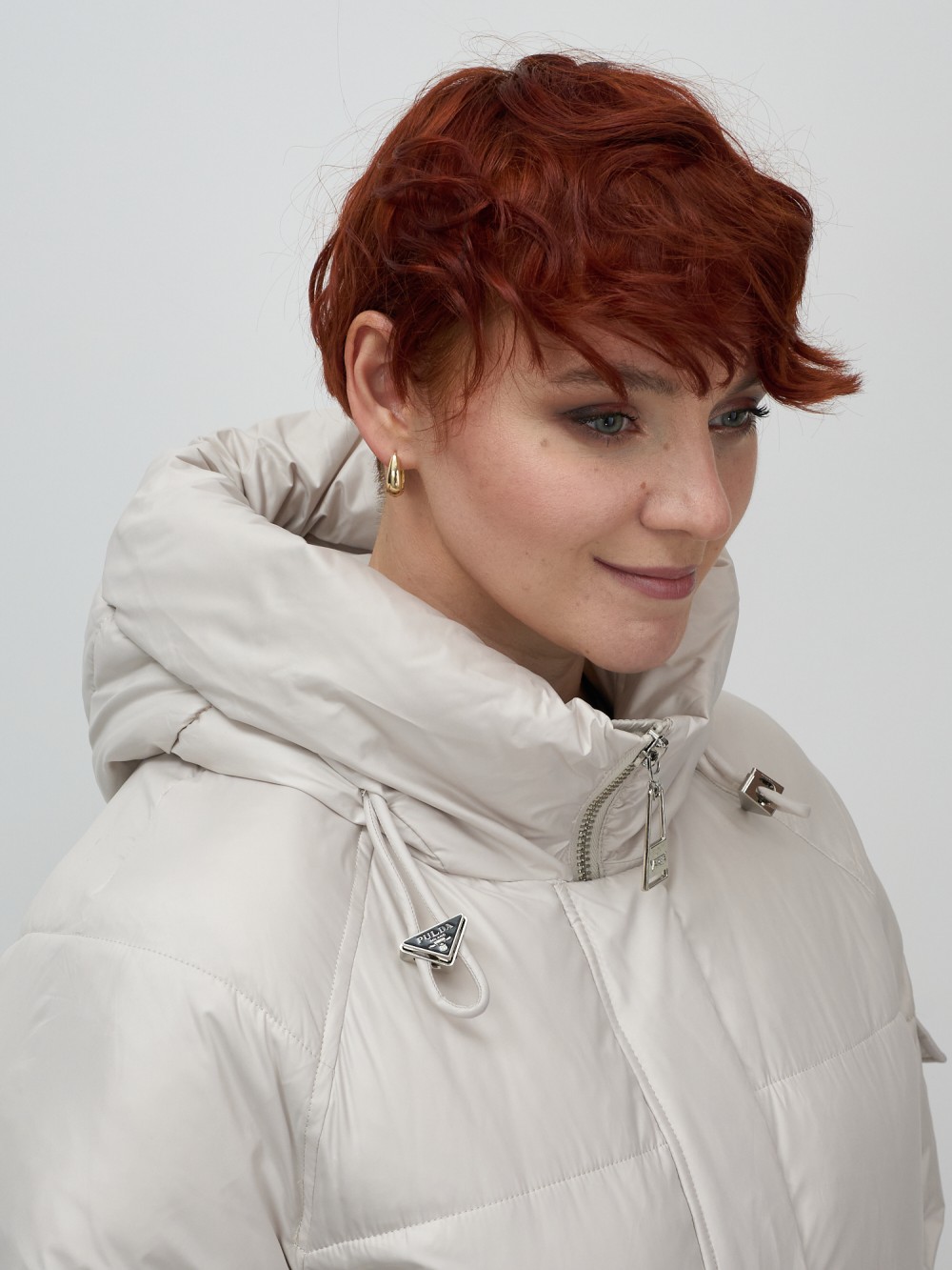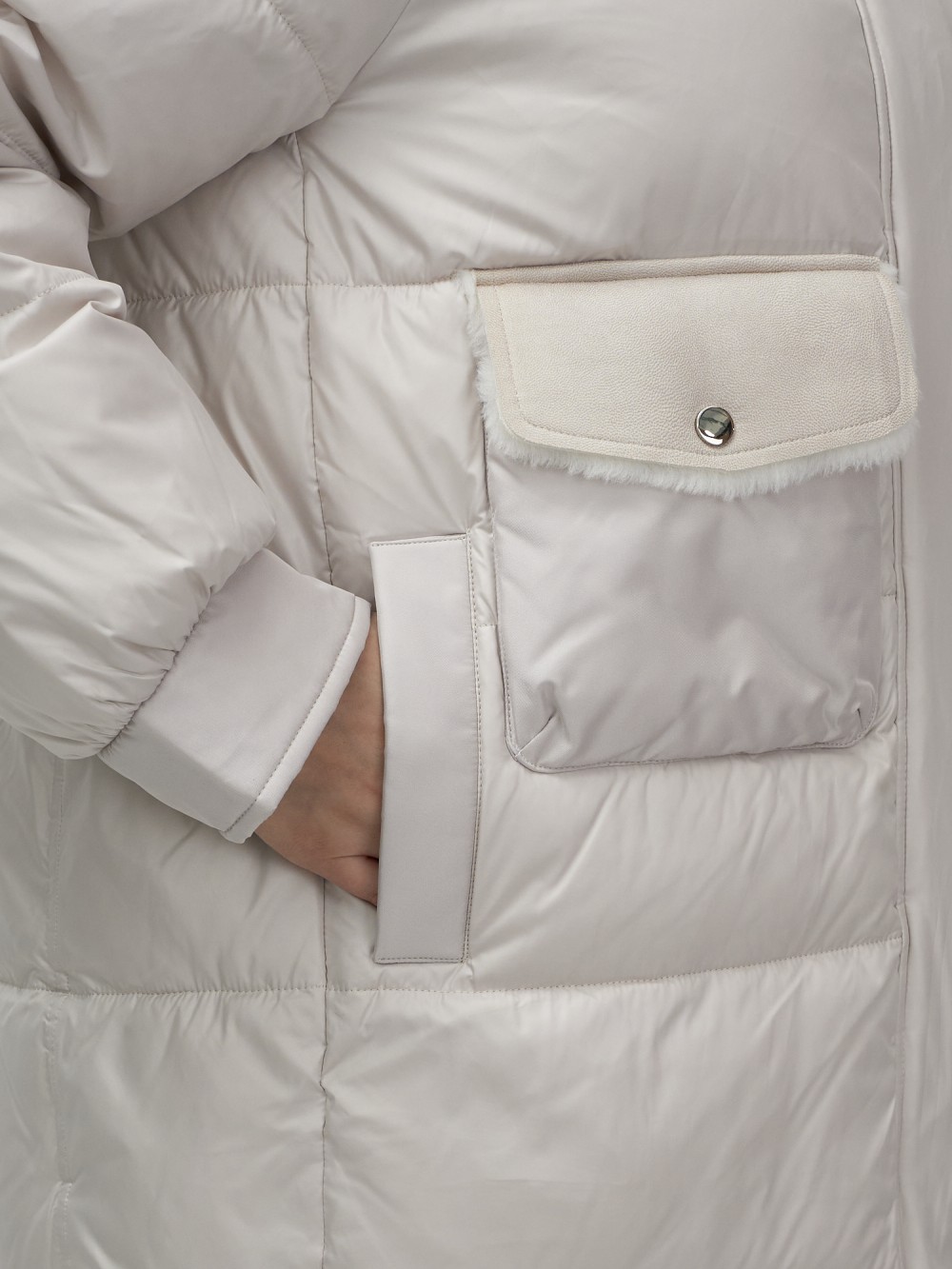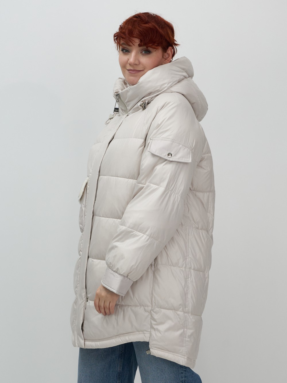Куртка зимняя женская с капюшоном модная бежевого цвета 7341B
