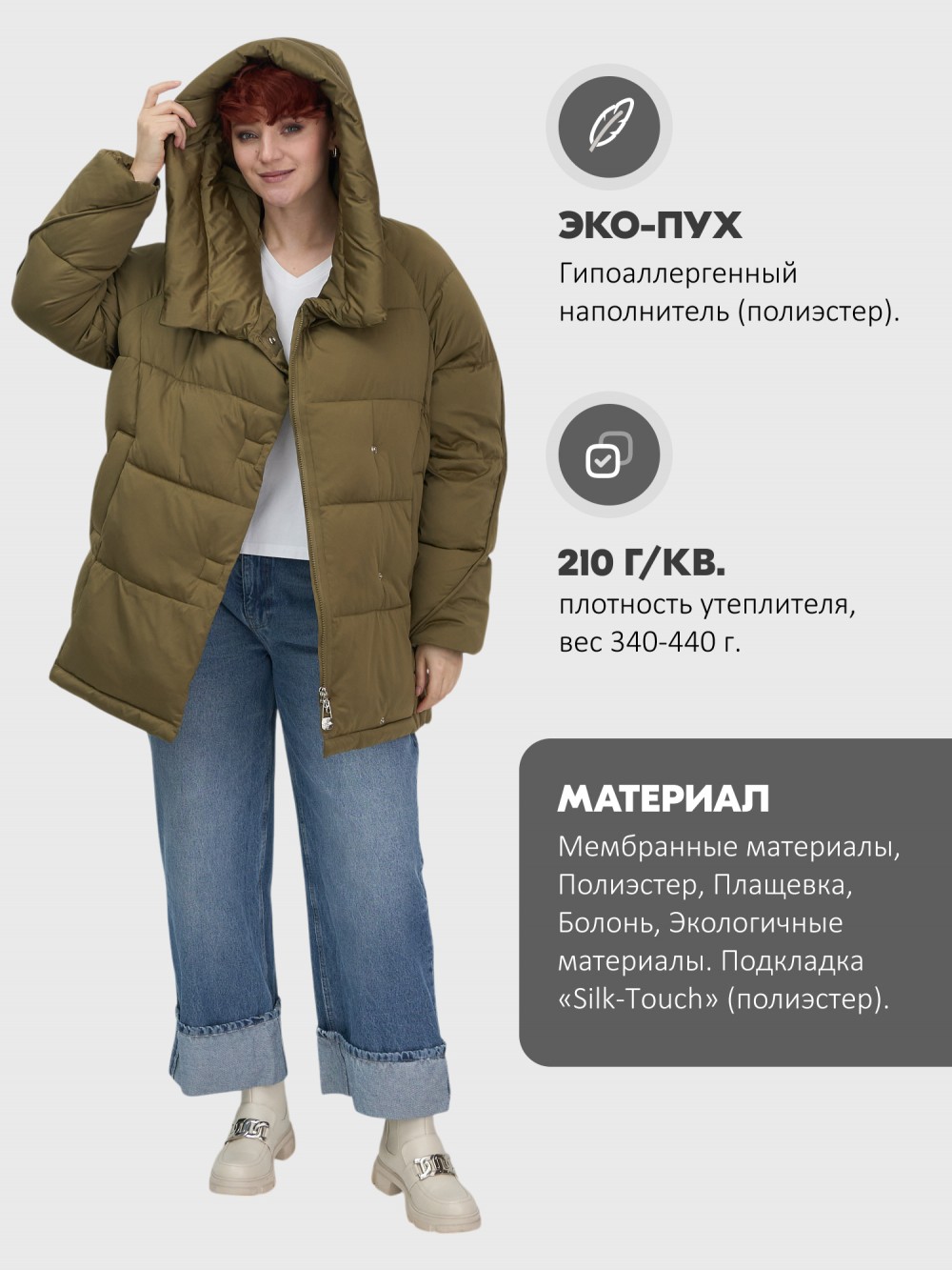 Откройте для себя идеальное сочетание стиля и комфорта с нашей модной зимней курткой! Эта куртка создана для женщин, которые ценят элегантность и практичность в одном изделии. Доступная в размерах от 44 до 54, она подходит для любой фигуры и роста (от 155 до 190 см), позволяя вам чувствовать себя уверенно в любой ситуации.