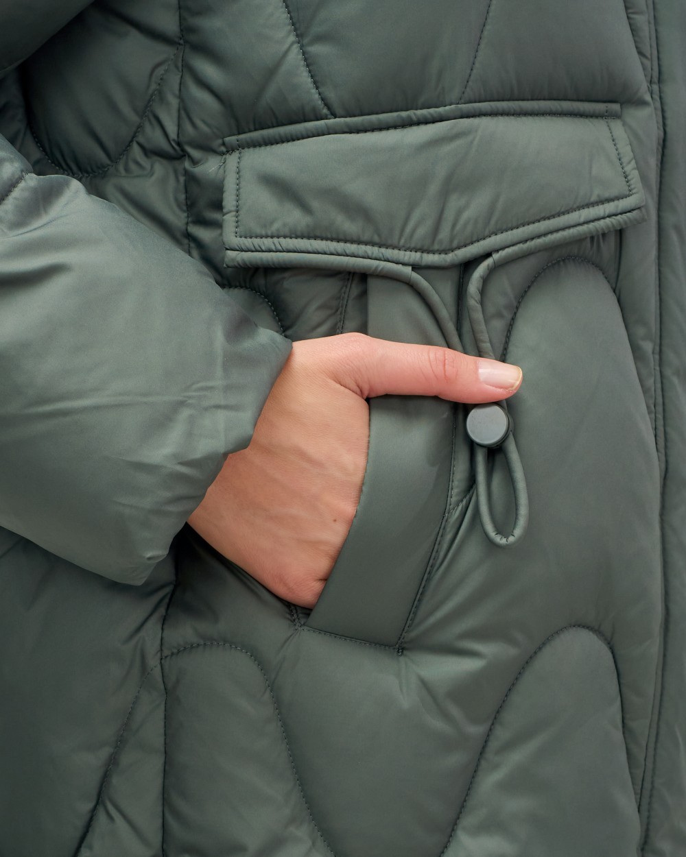 Особая гордость модели — это множество фиксаторов, которые обеспечивают дополнительную защиту и комфорт. Фиксаторы на капюшоне, по низу куртки и около карманов позволяют регулировать посадку и сохранять тепло, не забывая о практичности.