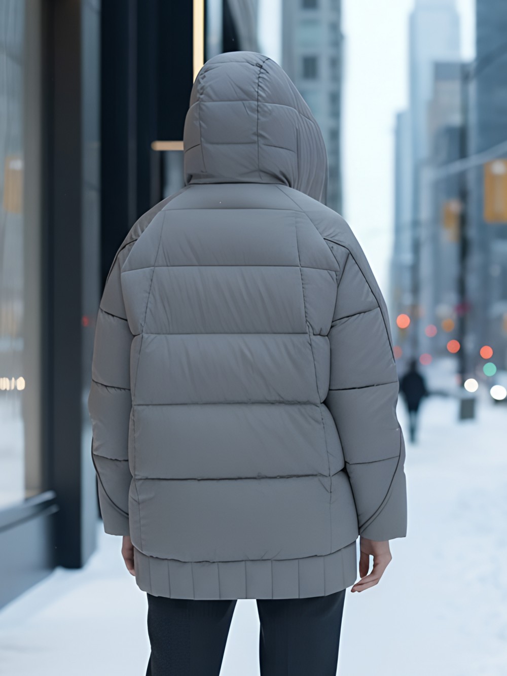 Эта куртка выделяется своим прямым и свободным покроем, длиной до бедра, что придаёт ей современный и стильный вид. Не съёмный капюшон и длинные рукава обеспечивают дополнительное тепло и защиту от ветра, а разнообразие цветов — черный, светло-коричневый, горчичный, хаки и коричневый — позволяет выбрать идеальный вариант для вашего гардероба.