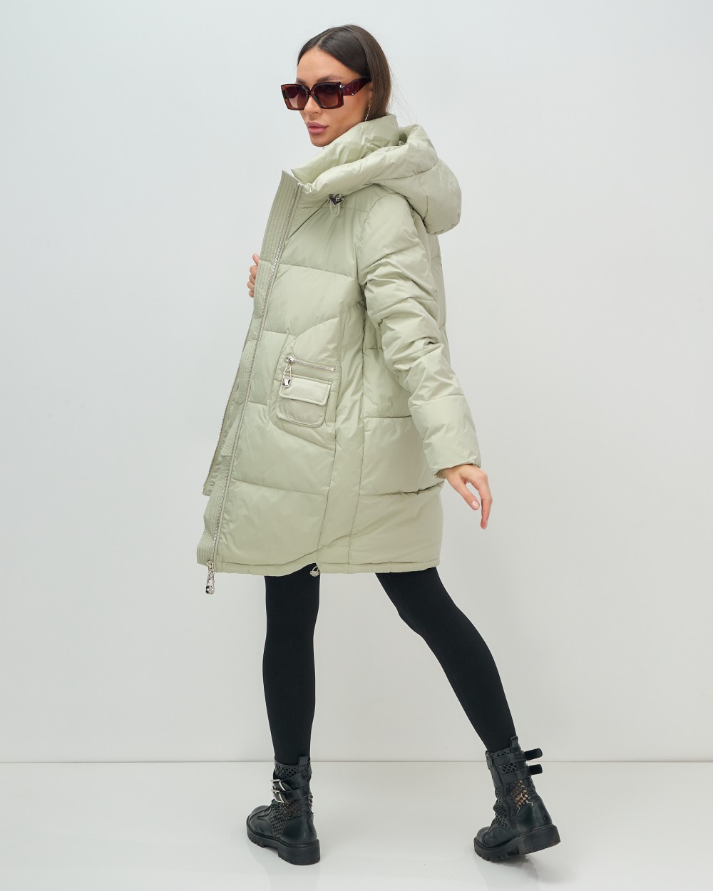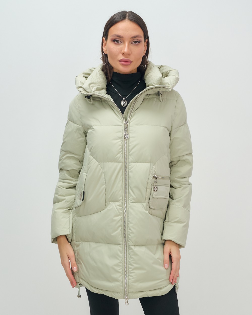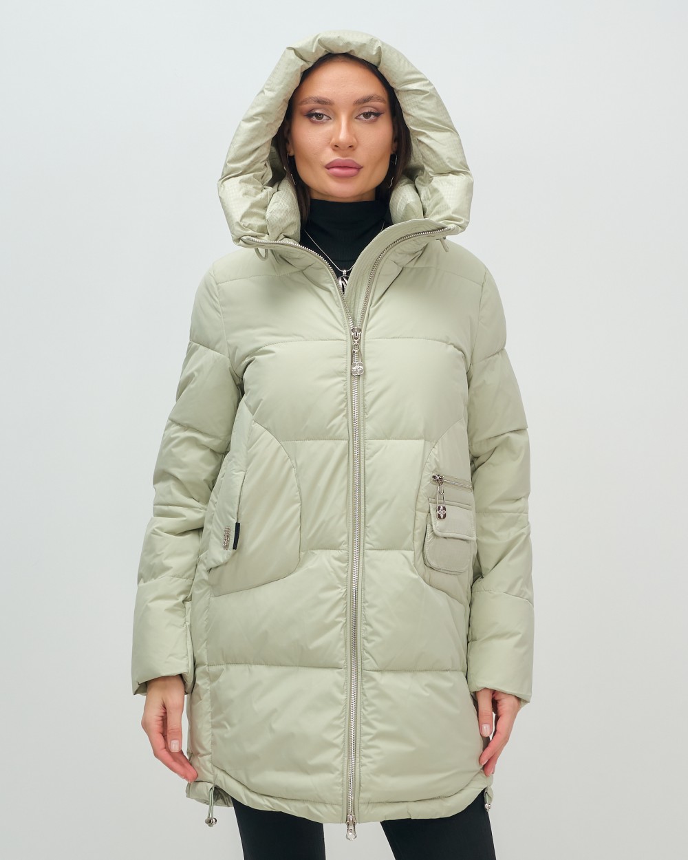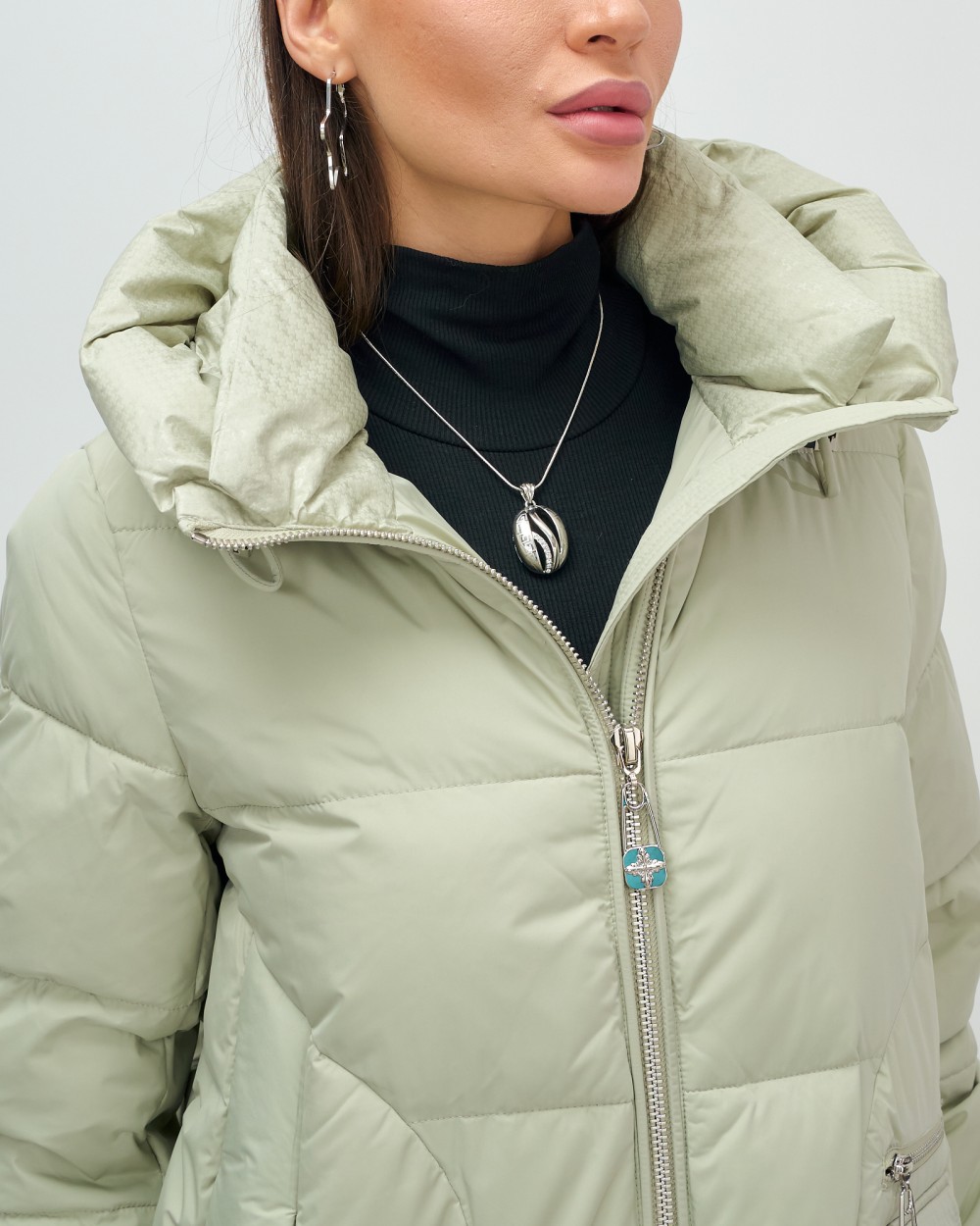 Куртка зимняя женская с капюшоном модная салатового цвета 3193Sl