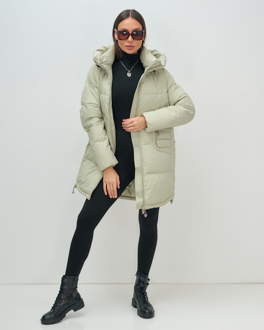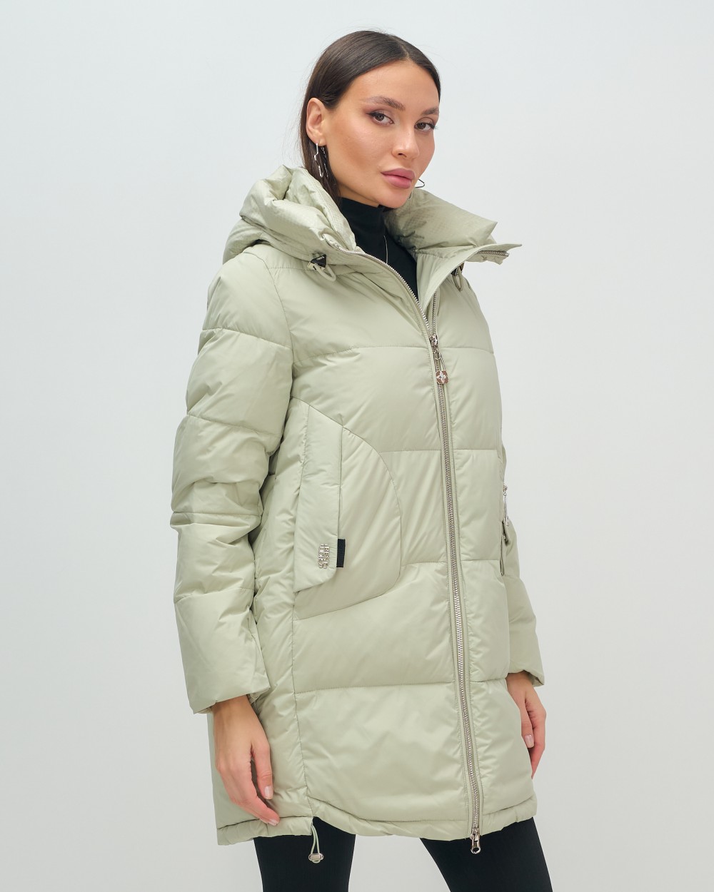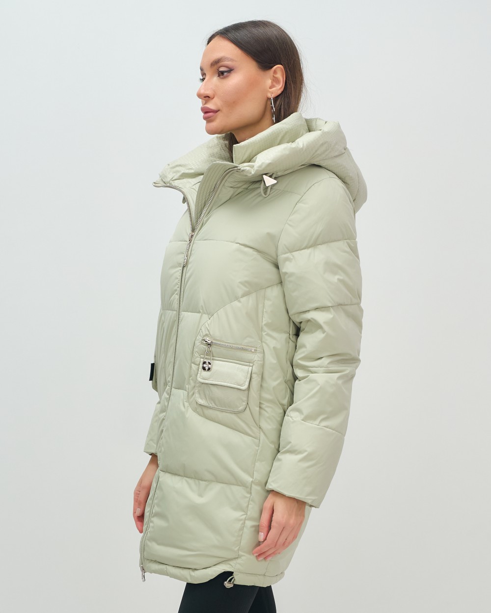 Куртка зимняя женская с капюшоном модная салатового цвета 3193Sl