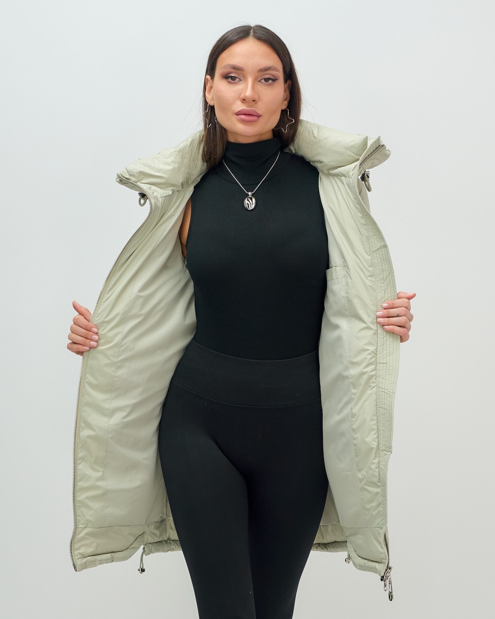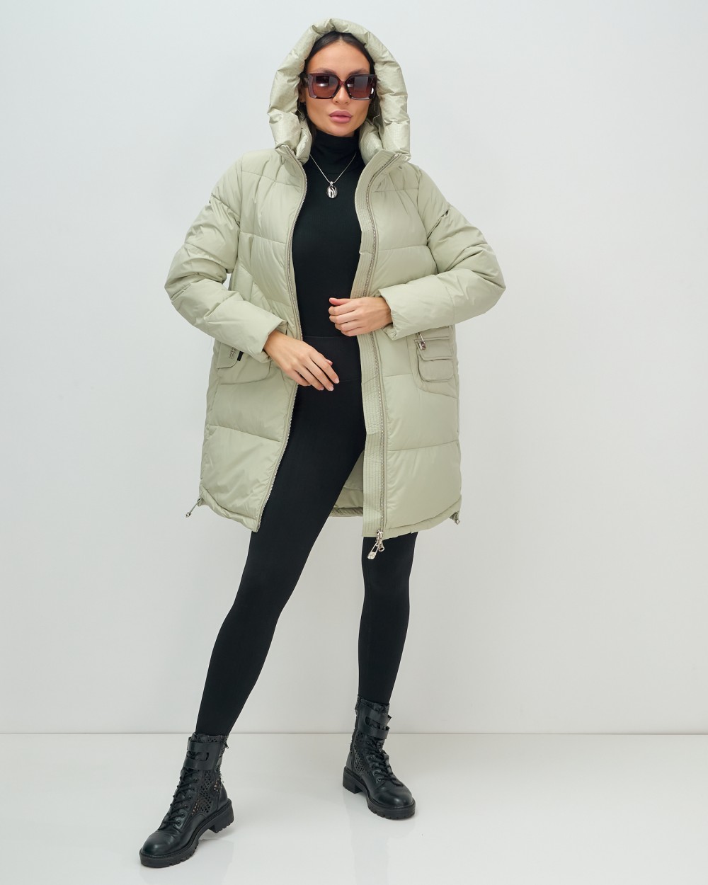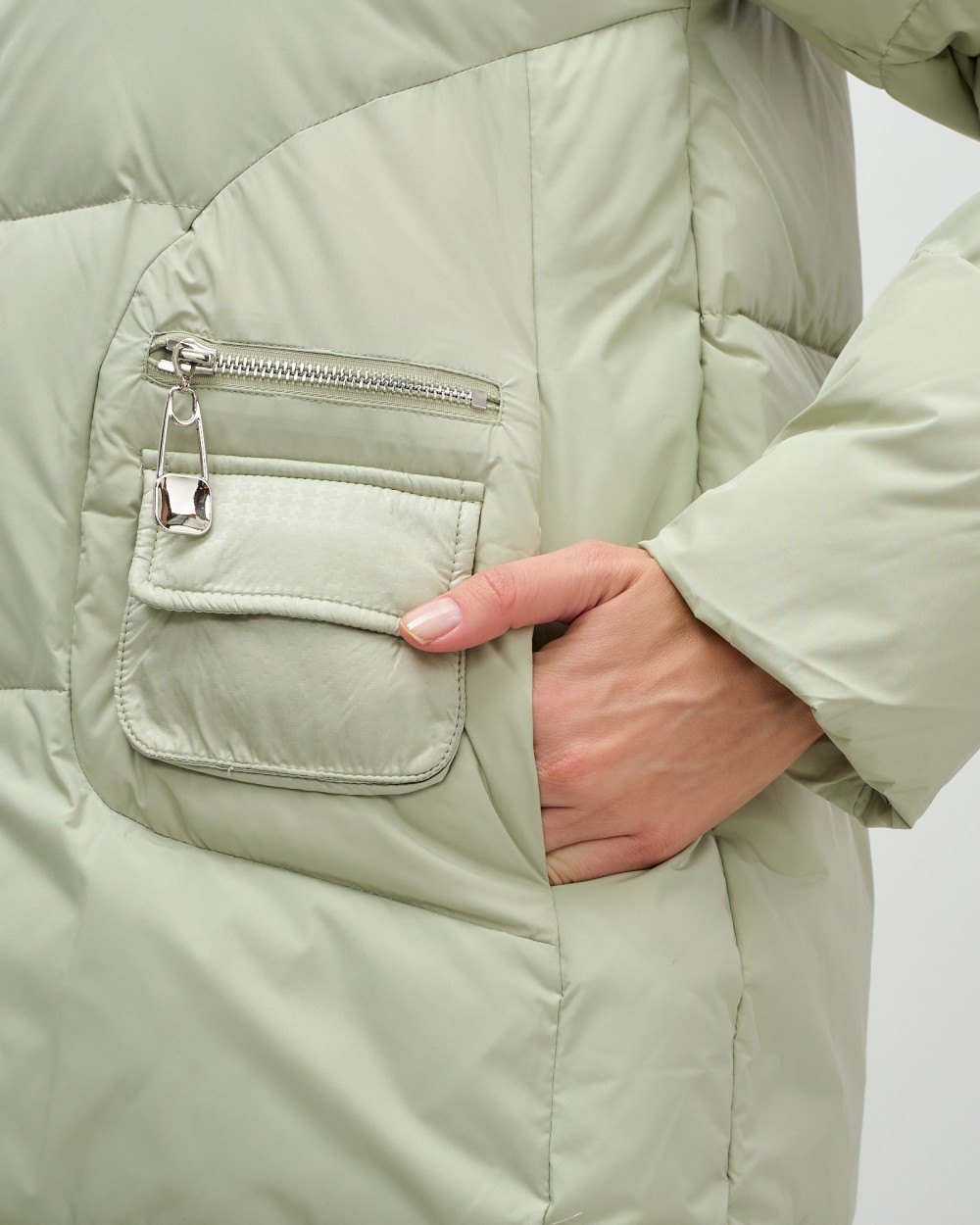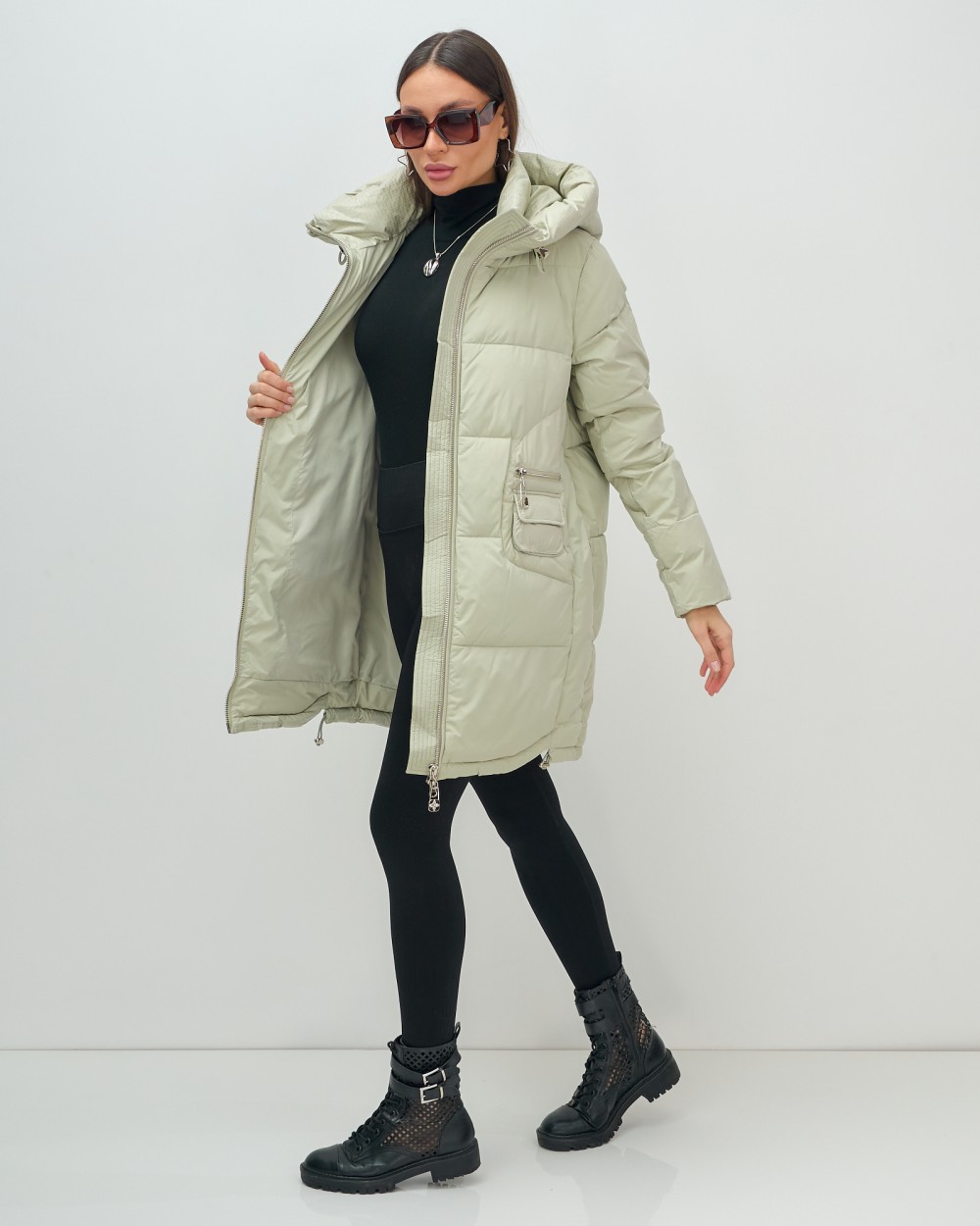 Куртка зимняя женская с капюшоном модная салатового цвета 3193Sl