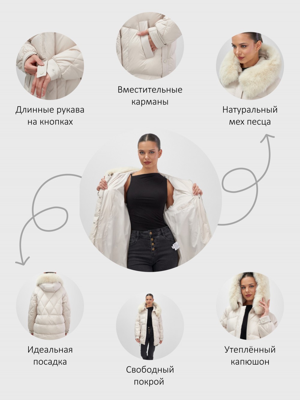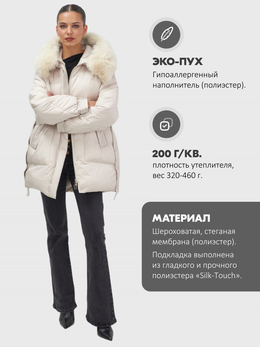 быстросохнущая, ветрозащита, водоотталкивающий материал, гипоаллергенный материал, дышащий материал, съемная опушка