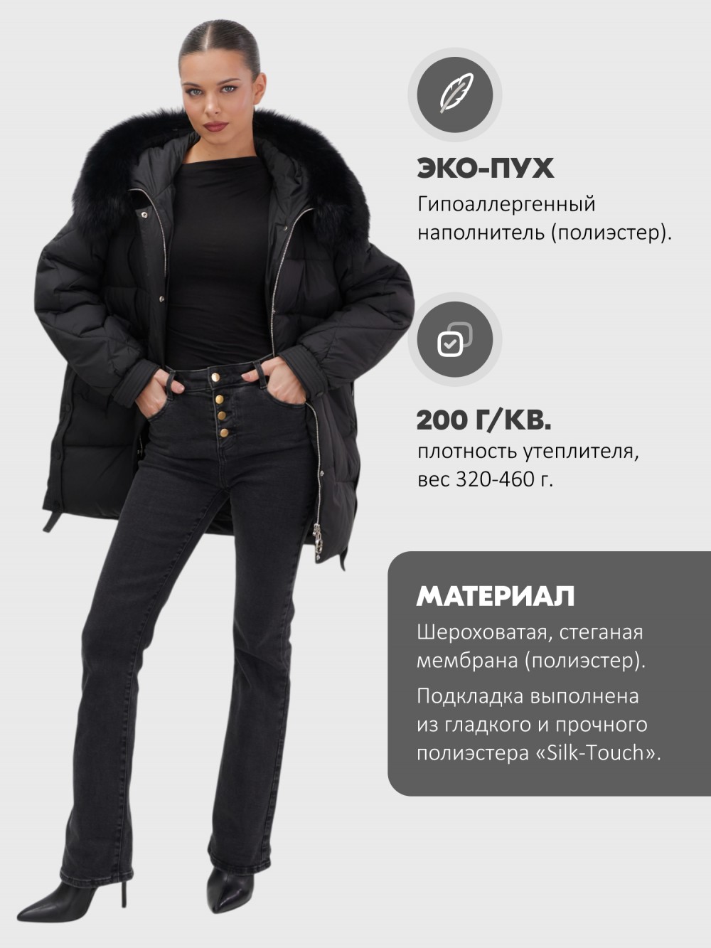 быстросохнущая, ветрозащита, водоотталкивающий материал, гипоаллергенный материал, дышащий материал, съемная опушка