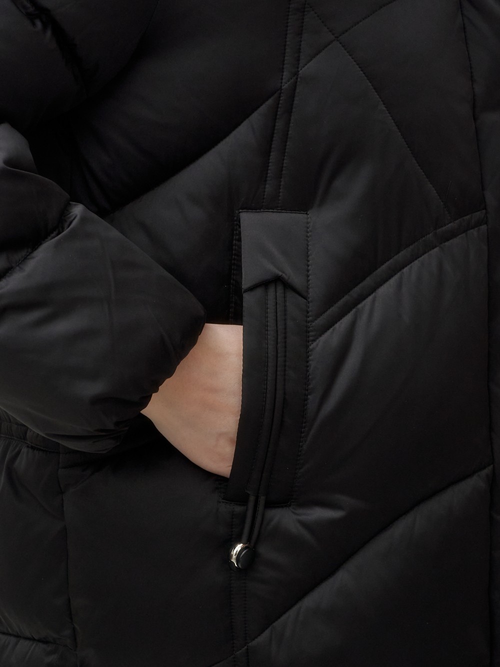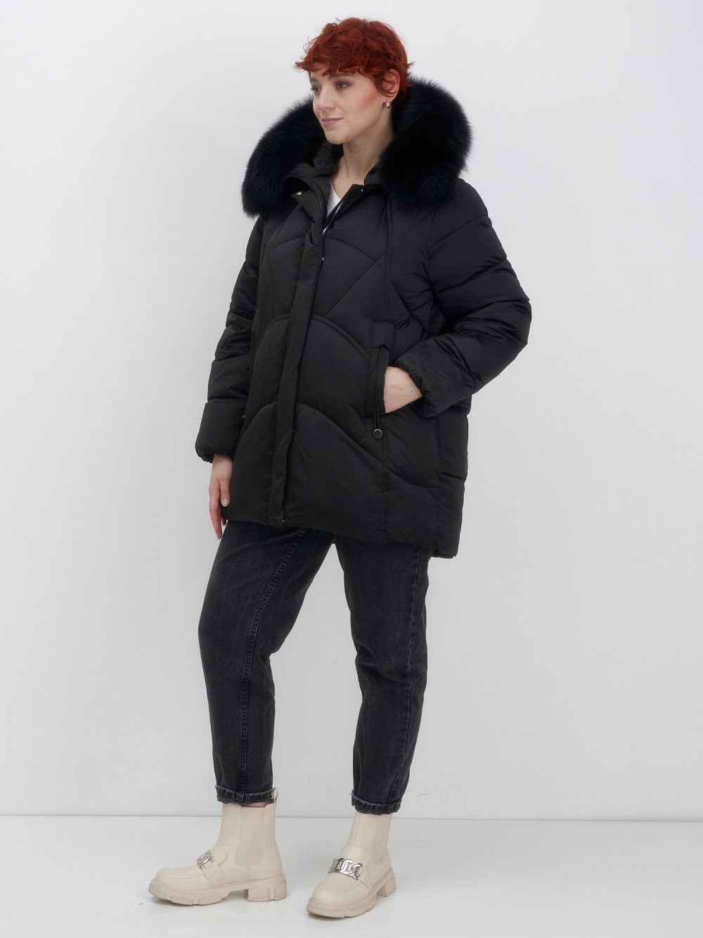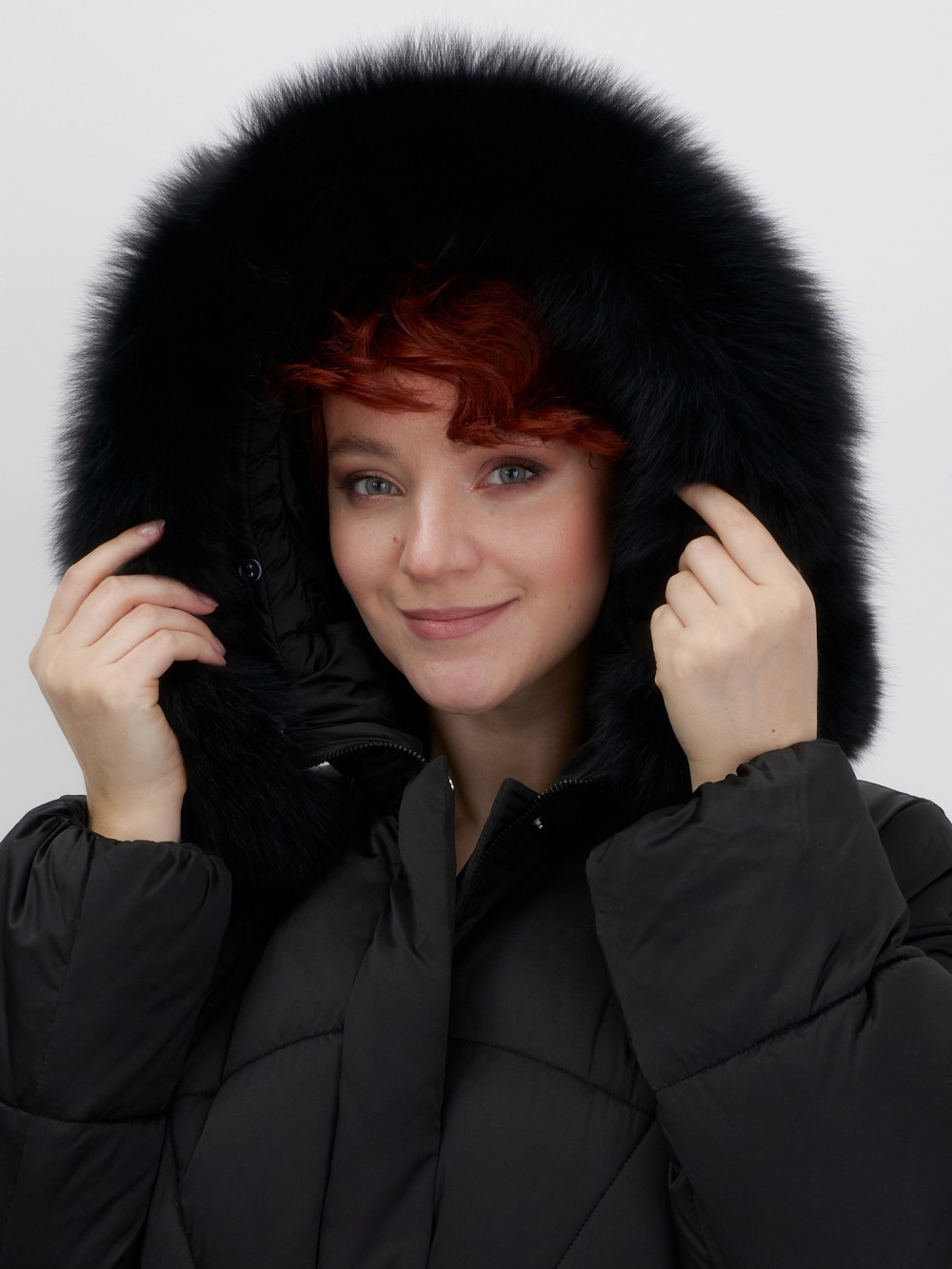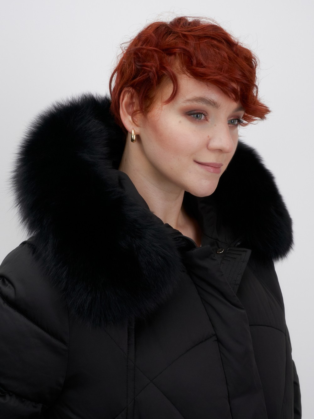 Изысканная палитра оттенков – глубокий черный, благородный темно-серый, насыщенный коричневый и утонченный светло-коричневый – прекрасно гармонирует с роскошным мехом песца. Удлиненный силуэт до колена в сочетании с натуральным мехом создает безупречные пропорции, делая фигуру более стройной и грациозной.