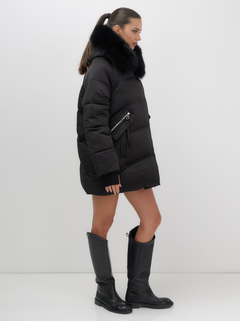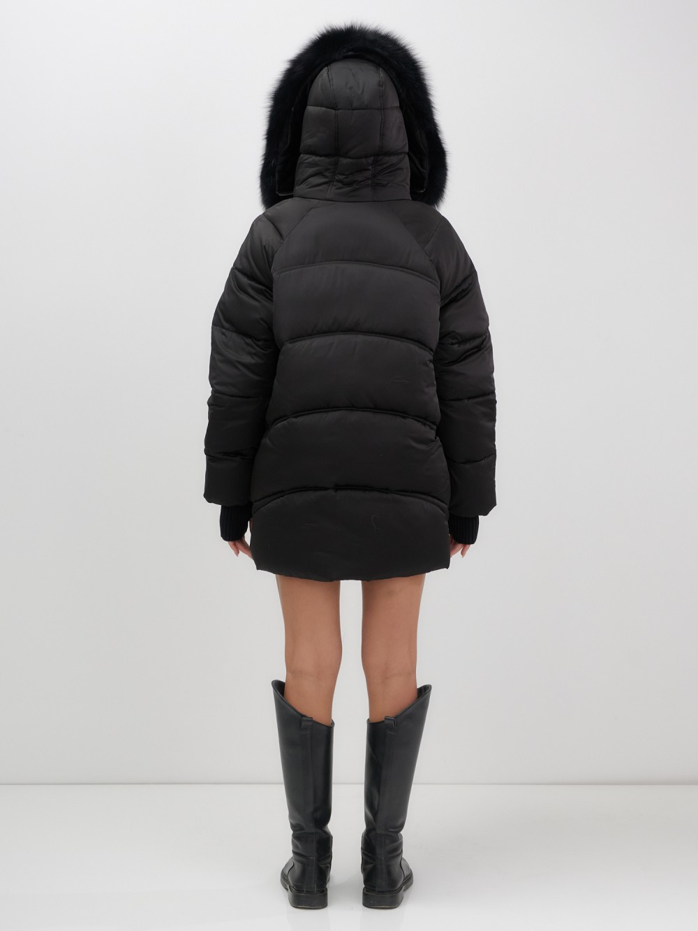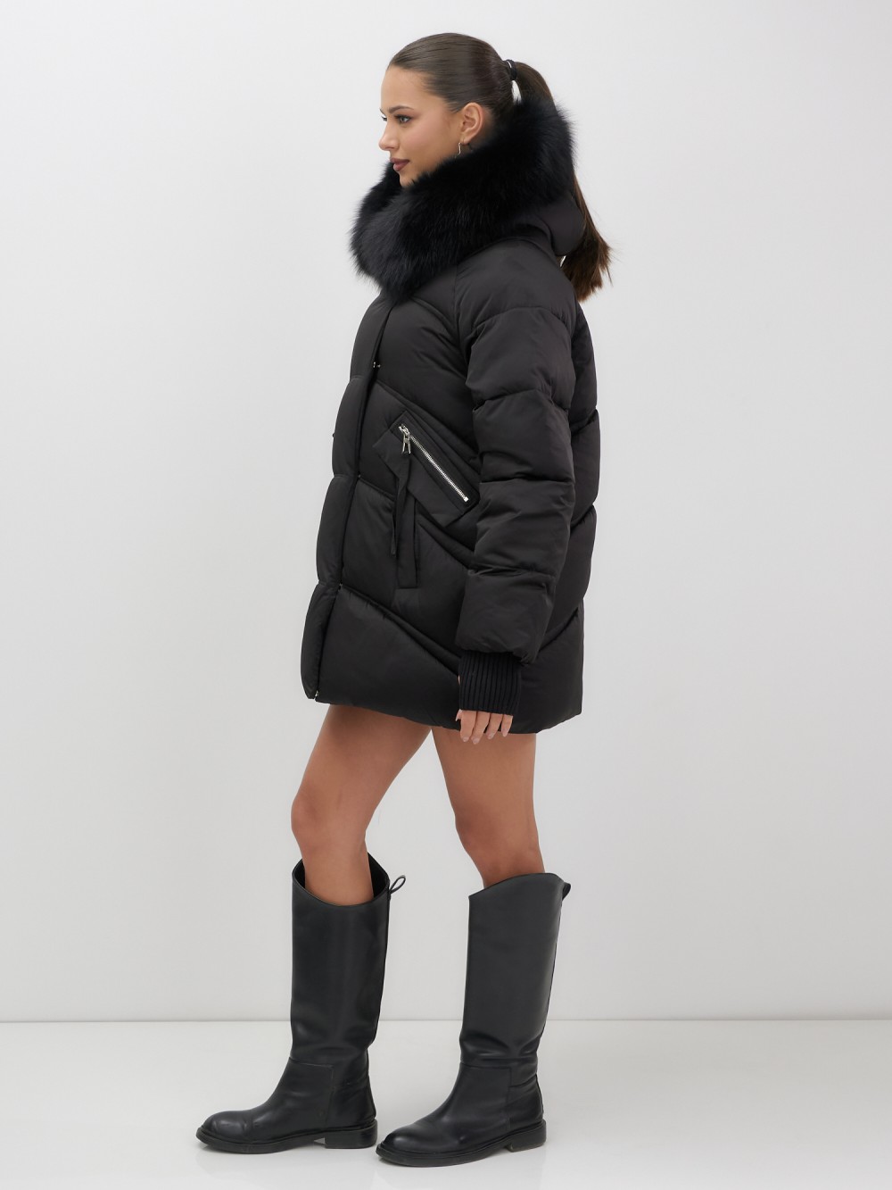 Куртка зимняя женская с мехом и капюшоном тренд черного цвета 7737Ch