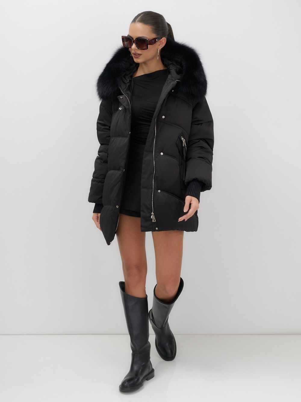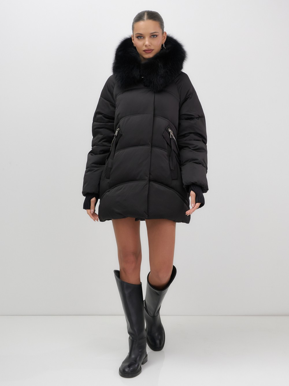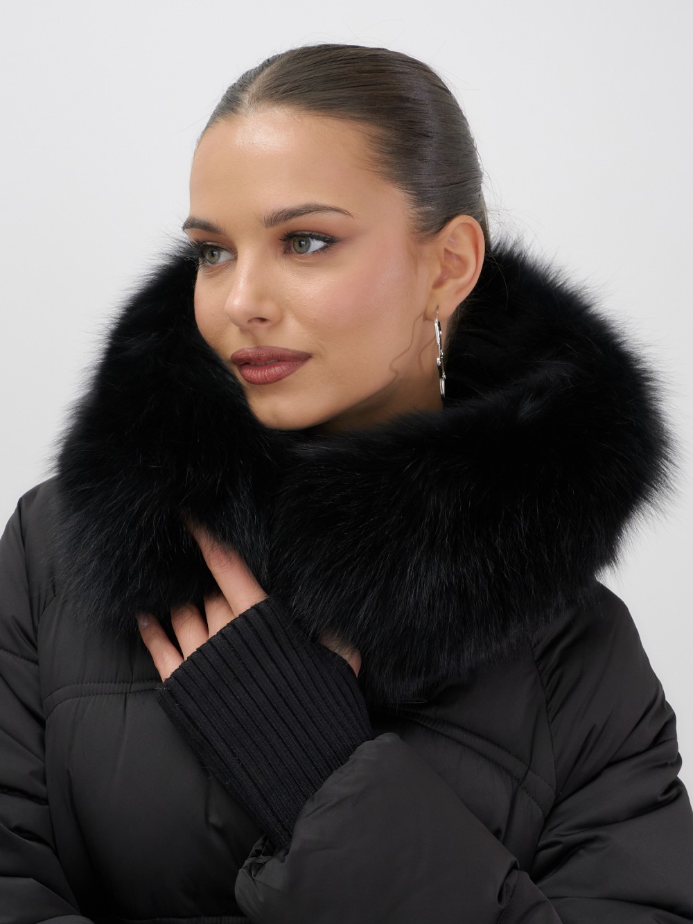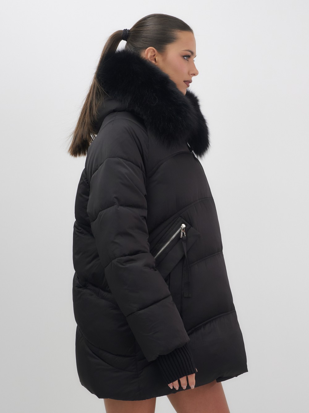 Куртка зимняя женская с мехом и капюшоном тренд черного цвета 7737Ch