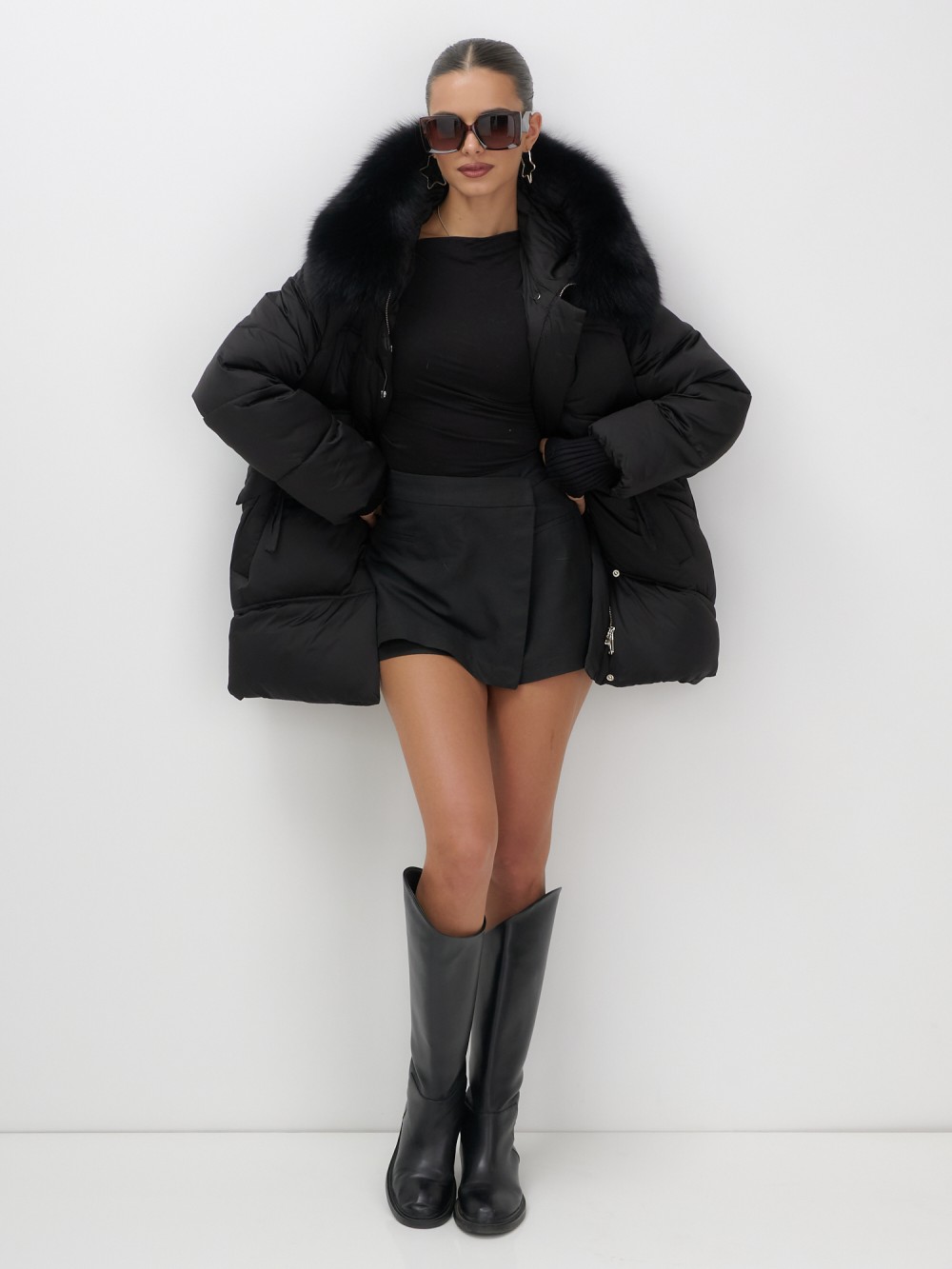 Каждая деталь продумана до мелочей: проклеенные швы, изысканные заклепки, практичный вырез для пальца на манжетах, удобные прорезные карманы с кнопками и молнией-обманкой. Съемная опушка из натурального песца трансформирует образ по вашему желанию. Безупречное качество меха говорит о безупречном вкусе владелицы.