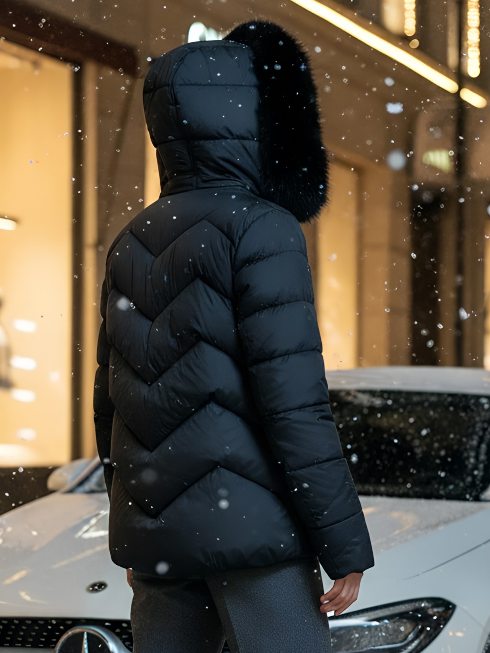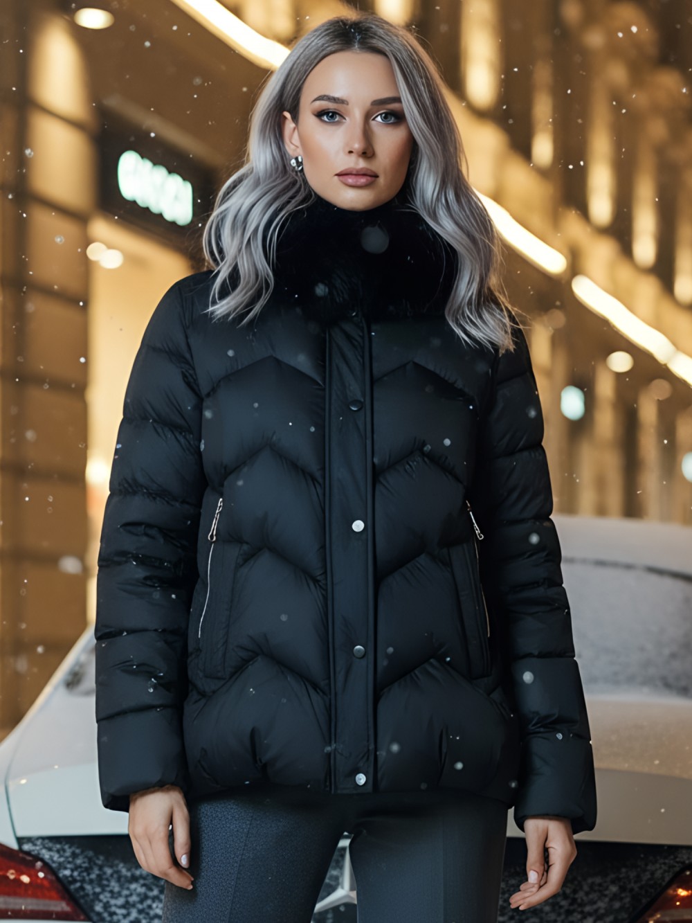 Утеплитель плотностью 200 г/м² обеспечивает комфорт при температурах от +5° до -20°C. Роскошный натуральный мех песца обрамляет лицо, создавая неповторимый образ городской леди. Безупречный крой подчеркивает силуэт, оставляя свободу движений.