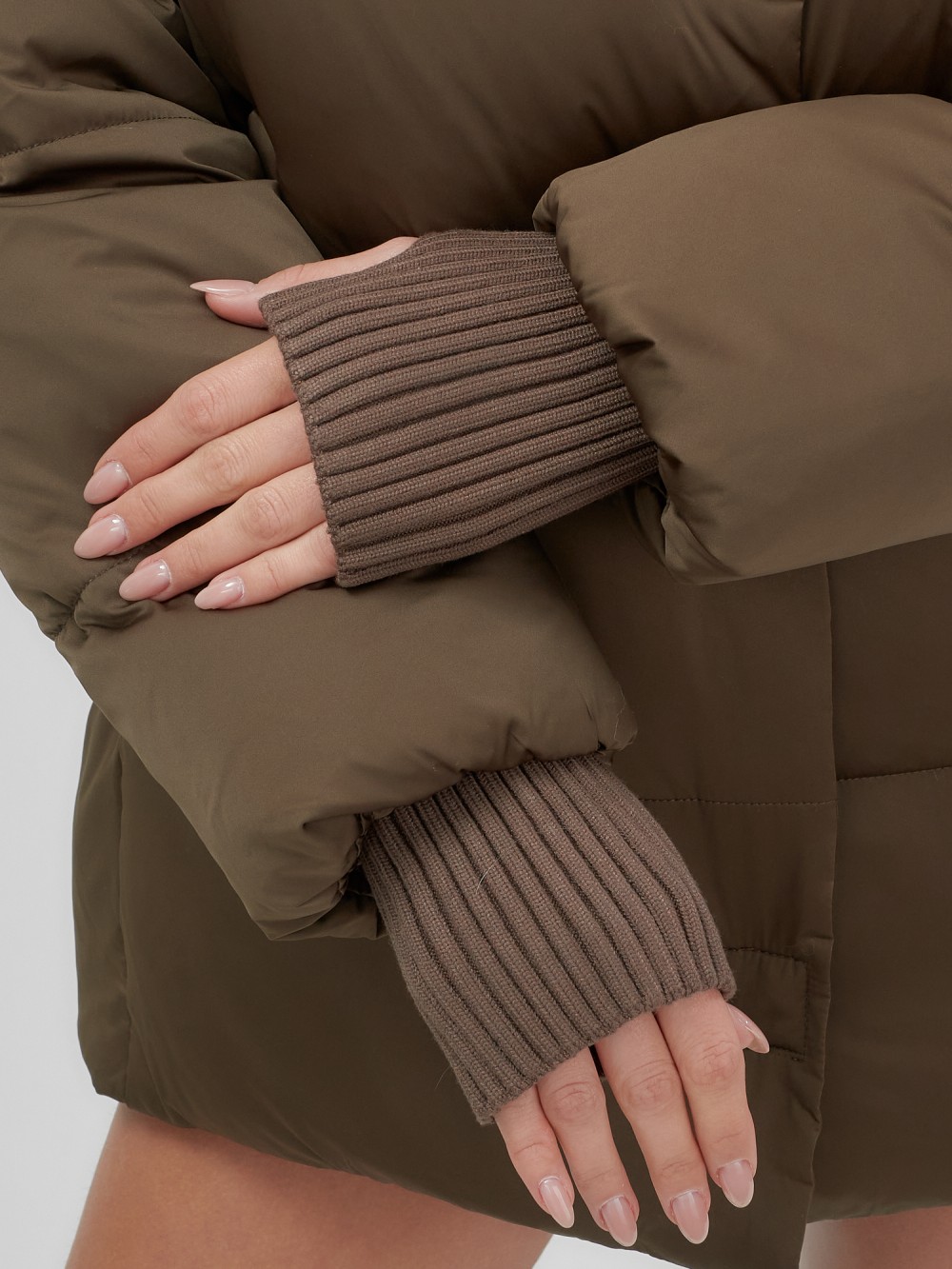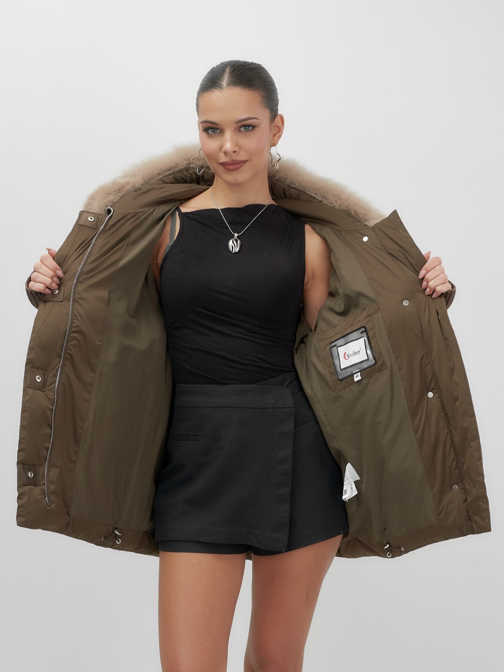 Куртка зимняя женская с мехом и капюшоном тренд горчичного цвета 7658G
