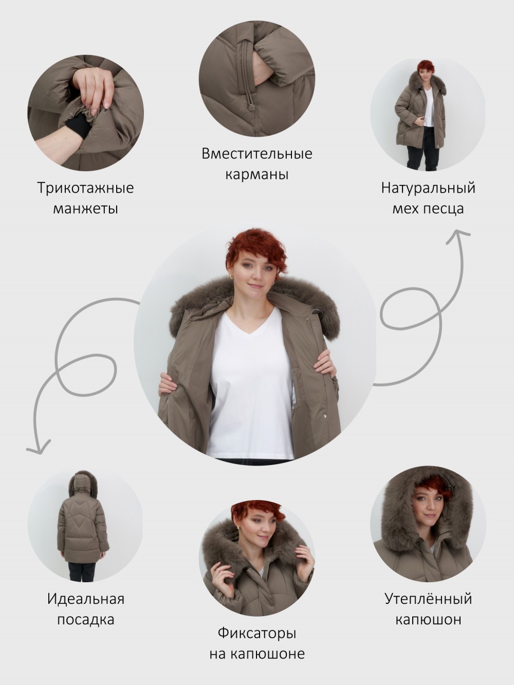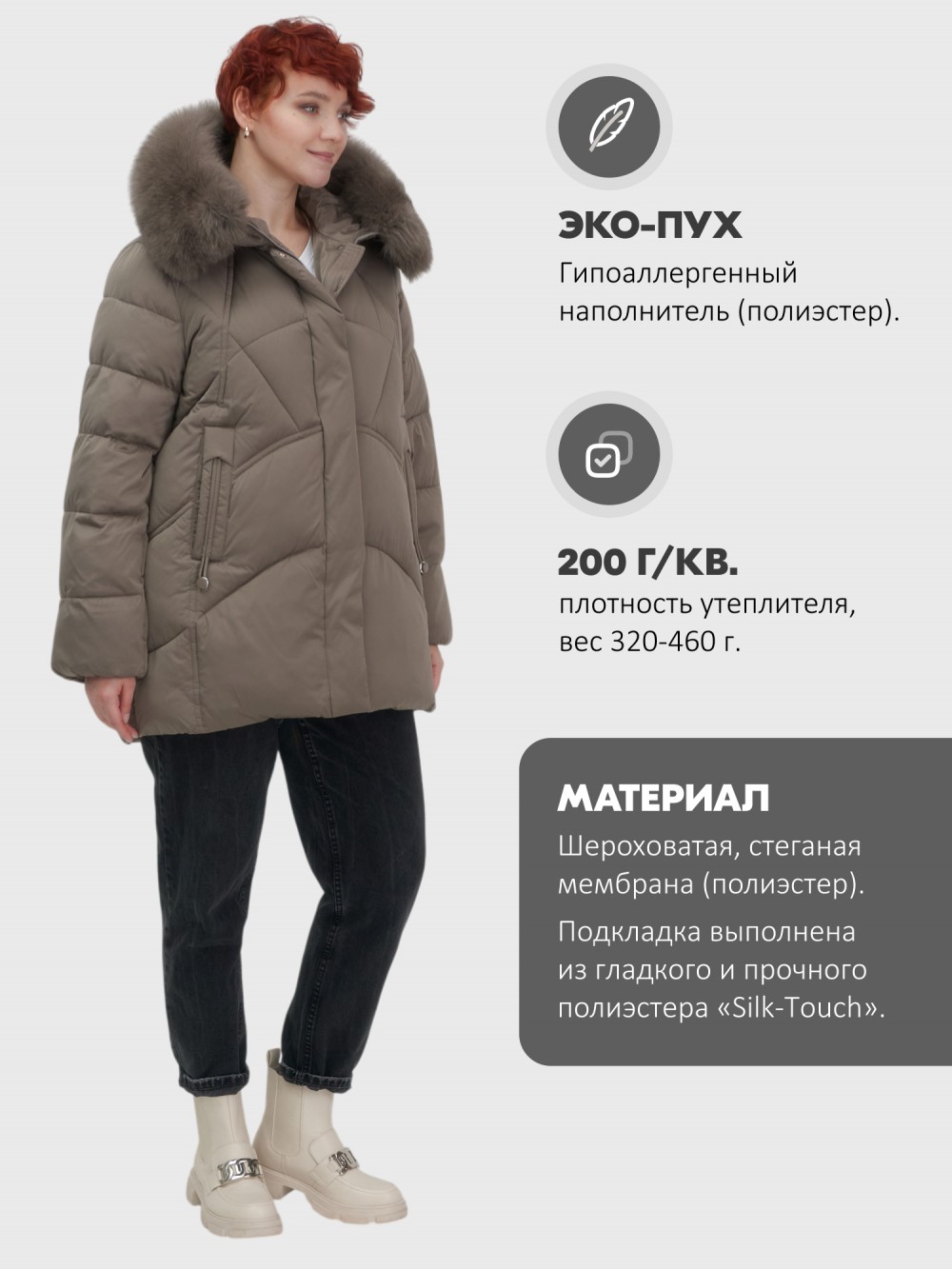 быстросохнущая, ветрозащита, водоотталкивающий материал, гипоаллергенный материал, дышащий материал, съемная опушка