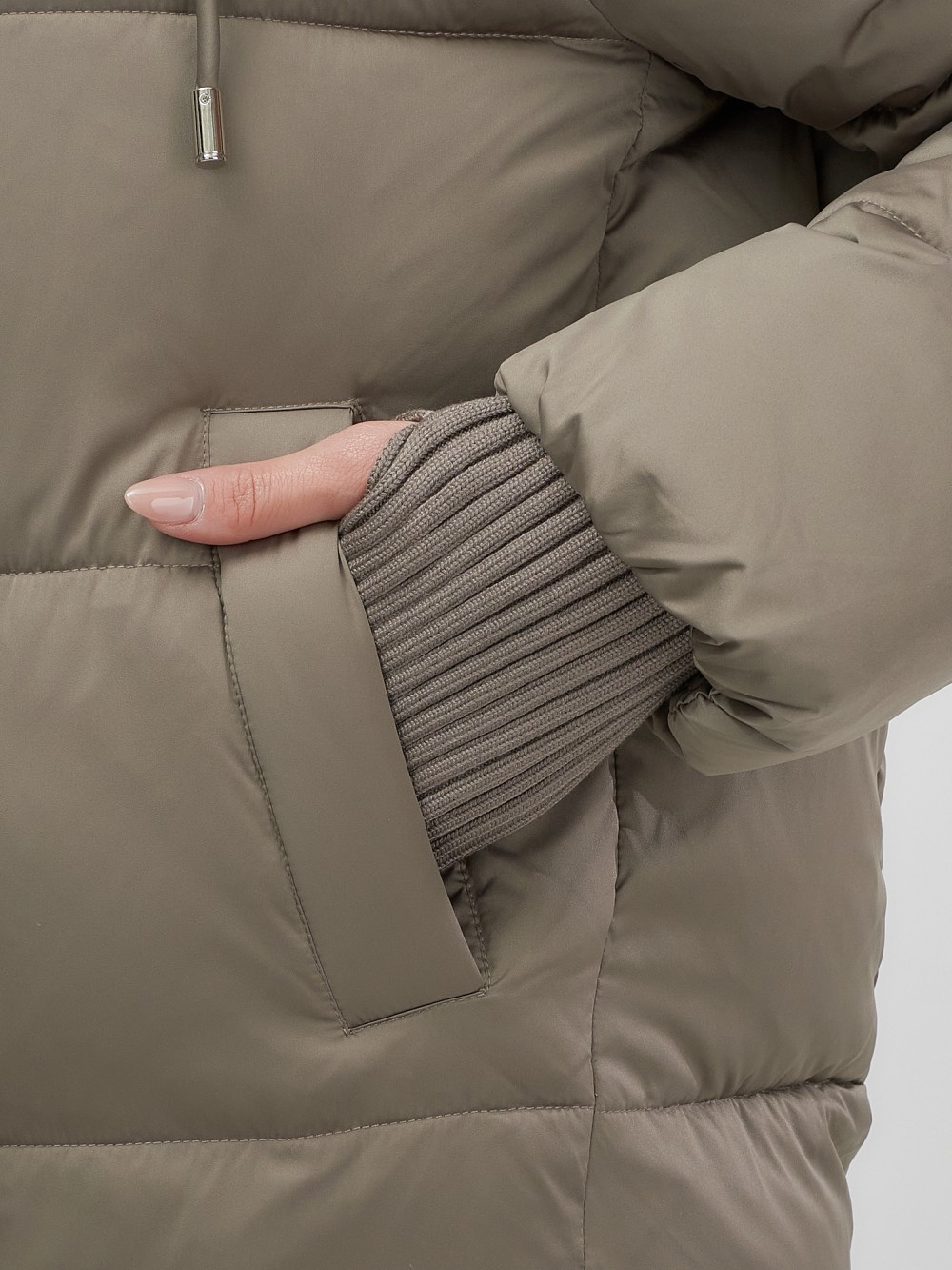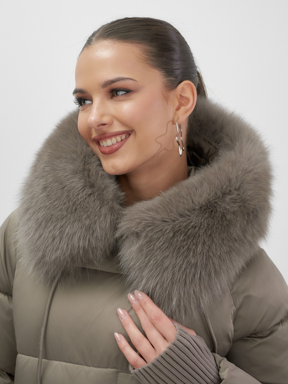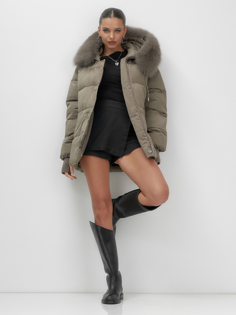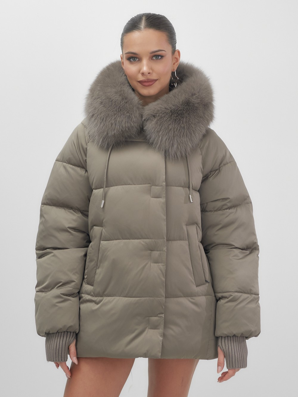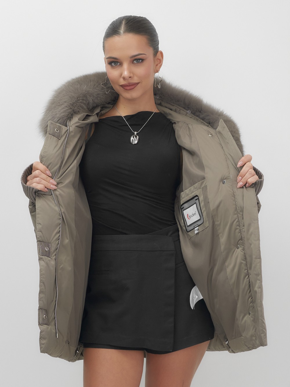 Куртка зимняя женская с мехом и капюшоном тренд коричневого цвета 7658K