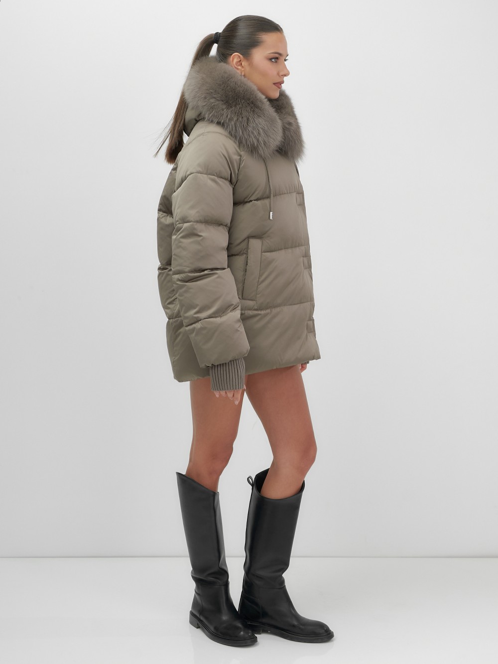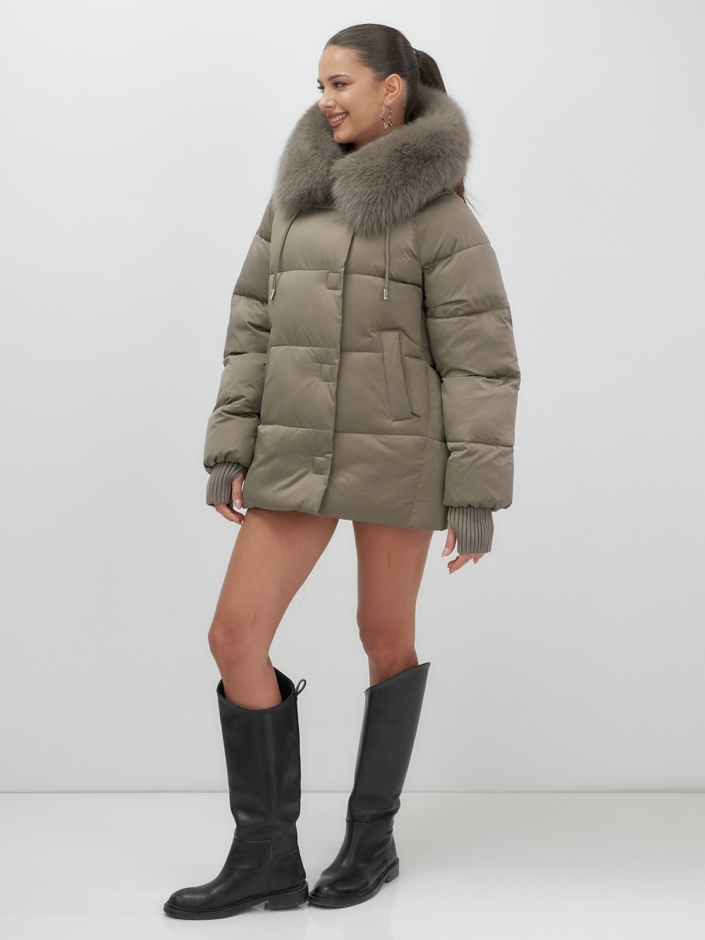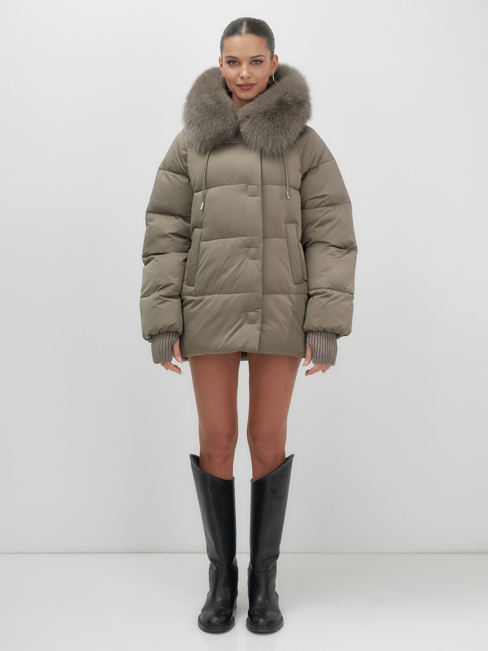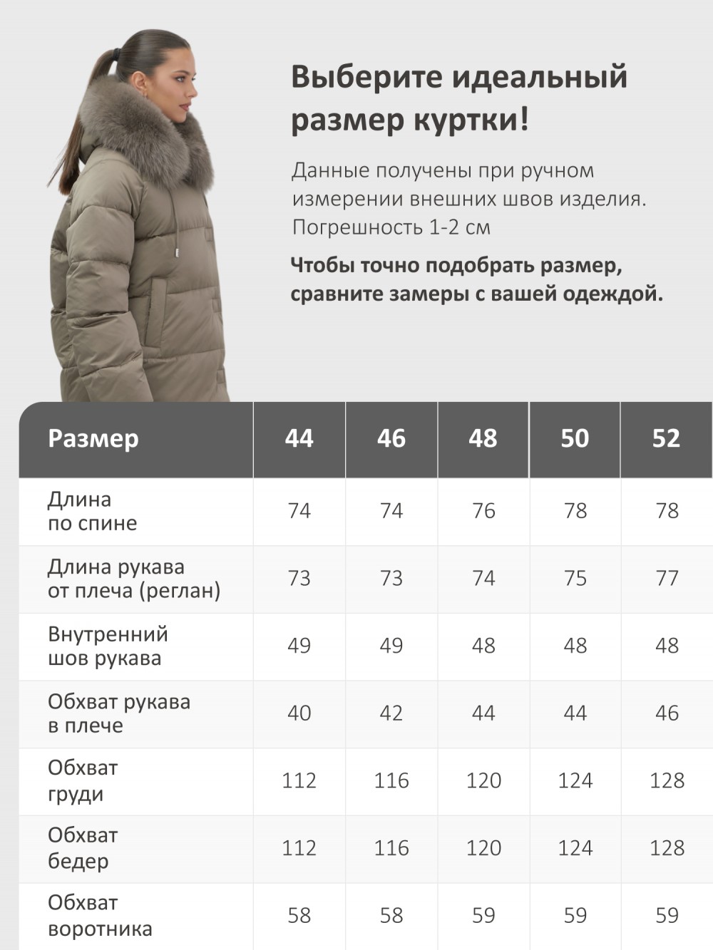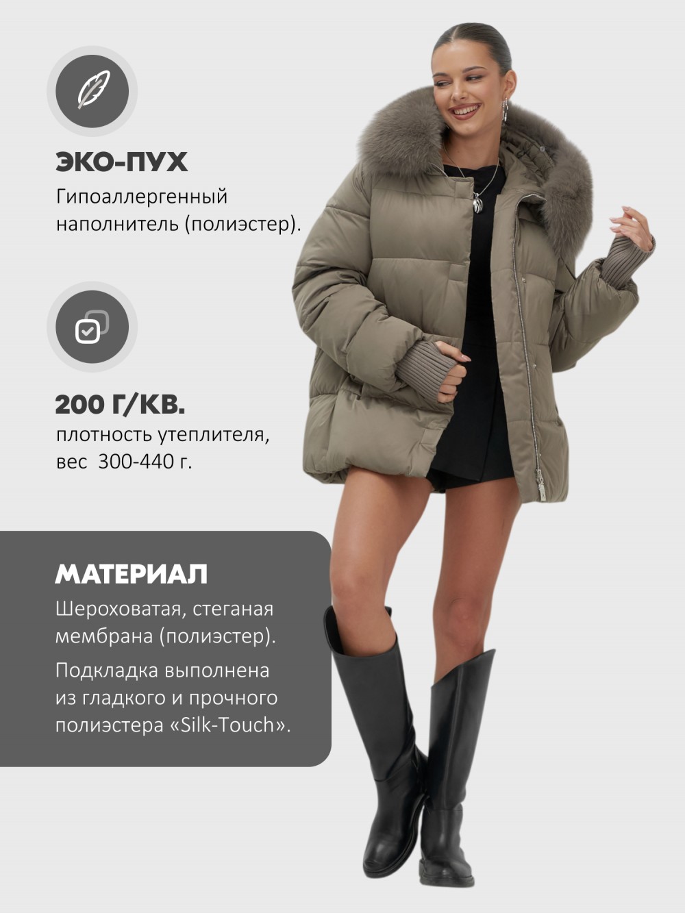Четыре актуальных оттенка коллекции осень-зима 2025 – классический черный, роскошный коричневый, изысканный светло-коричневый и трендовый горчичный – великолепно гармонируют с натуральным мехом песца. Длина до бедра и свободный крой создают идеальные пропорции для размеров 44-52.