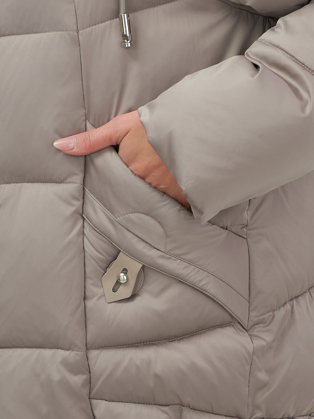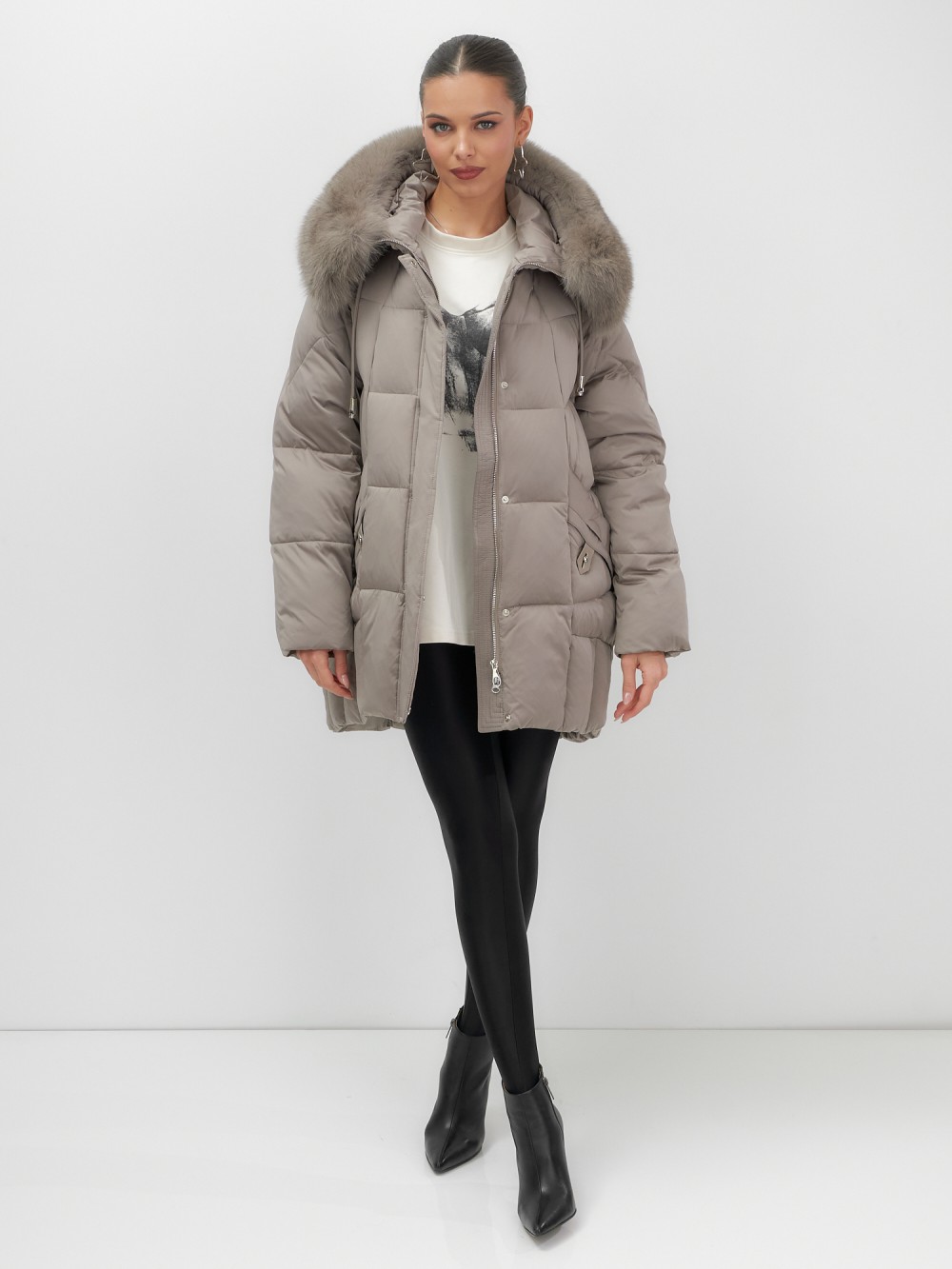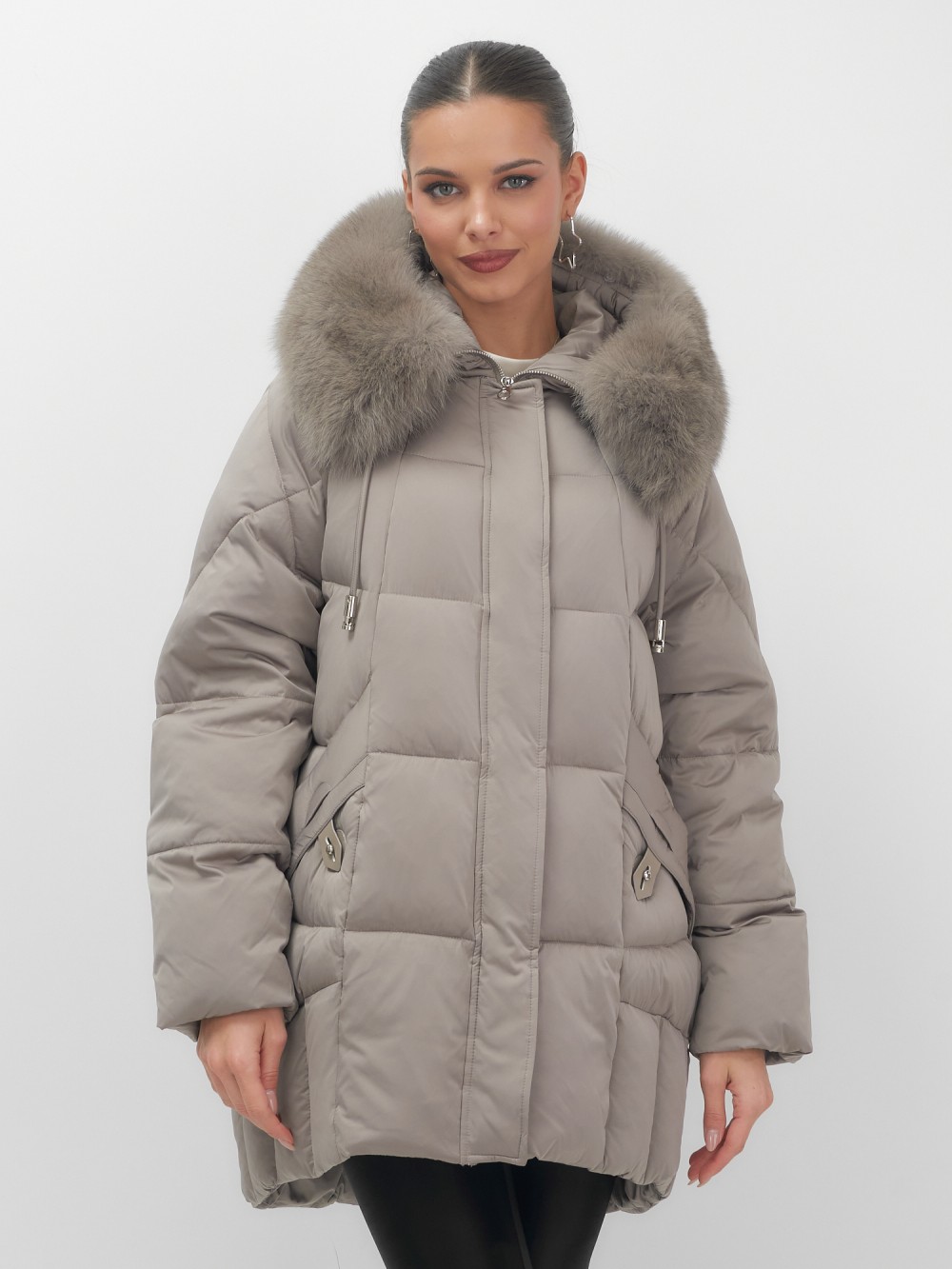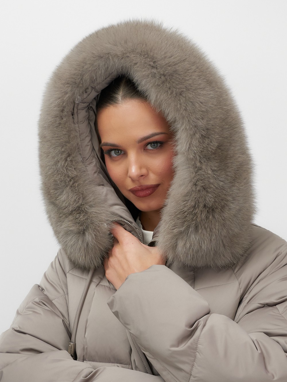 Куртка зимняя женская с мехом и капюшоном тренд коричневого цвета 7660K