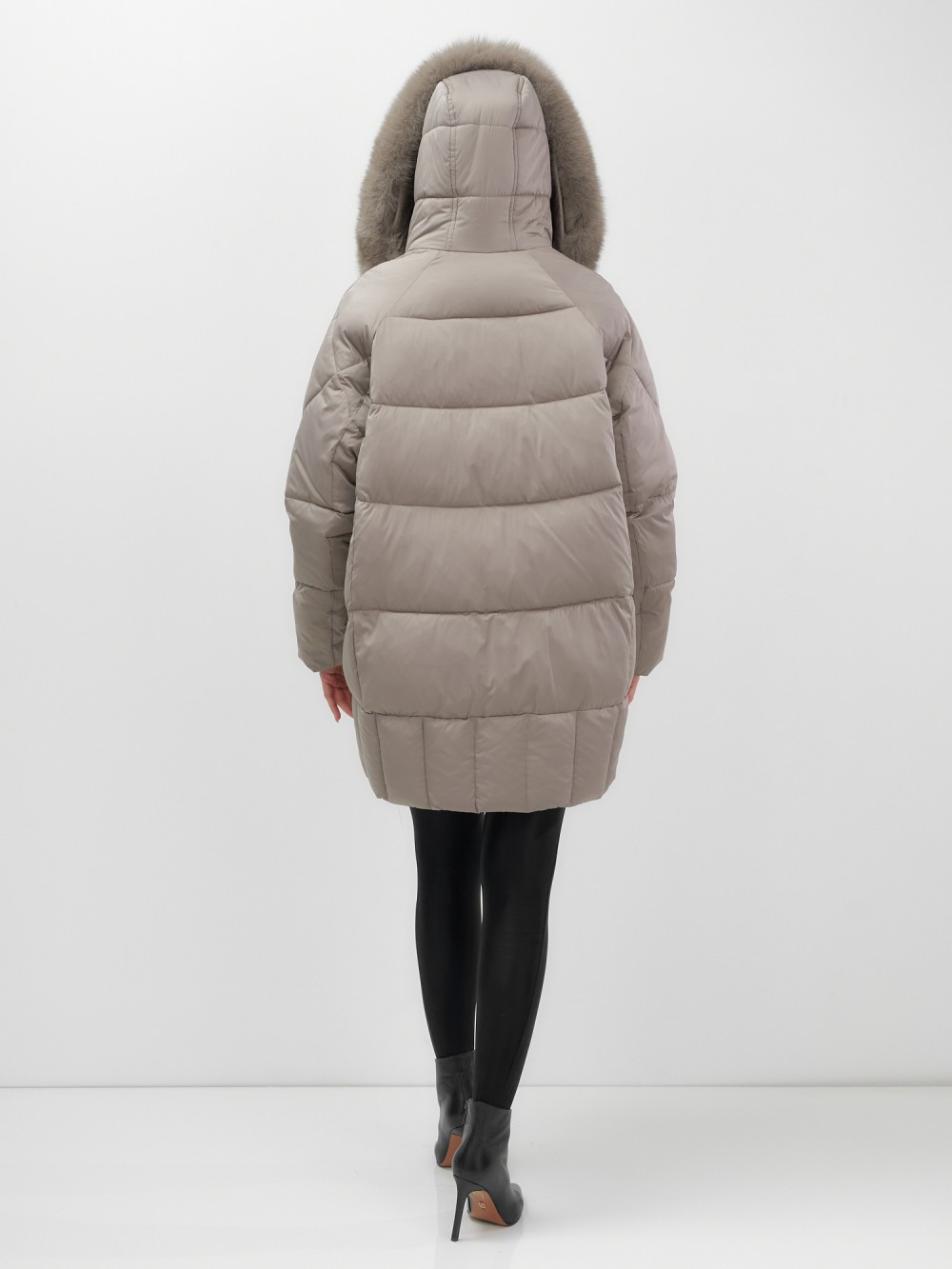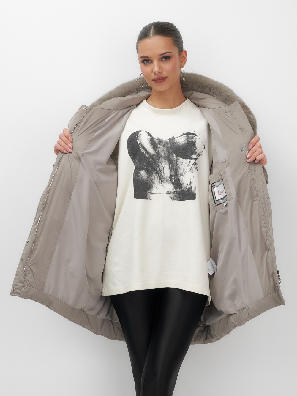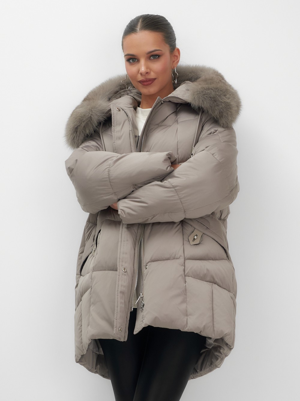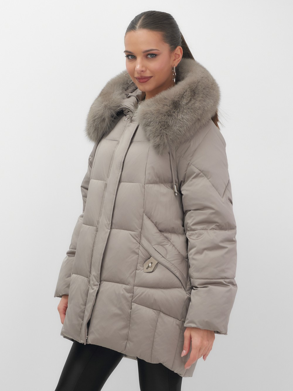Куртка зимняя женская с мехом и капюшоном тренд коричневого цвета 7660K