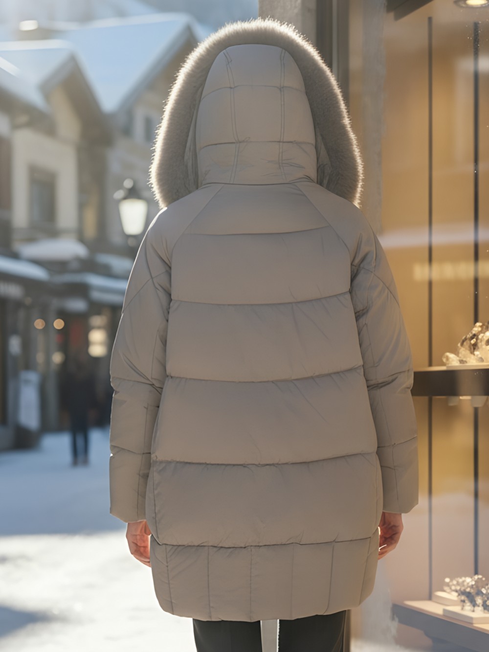 Высокотехнологичная мембрана 7000 мм и инновационный утеплитель плотностью 200 г/м² гарантируют комфорт до -20°C. Премиальные детали – двойная молния с защитным клапаном, вместительные карманы на магнитах и молнии, элегантные заклепки – подчеркивают статус владелицы.