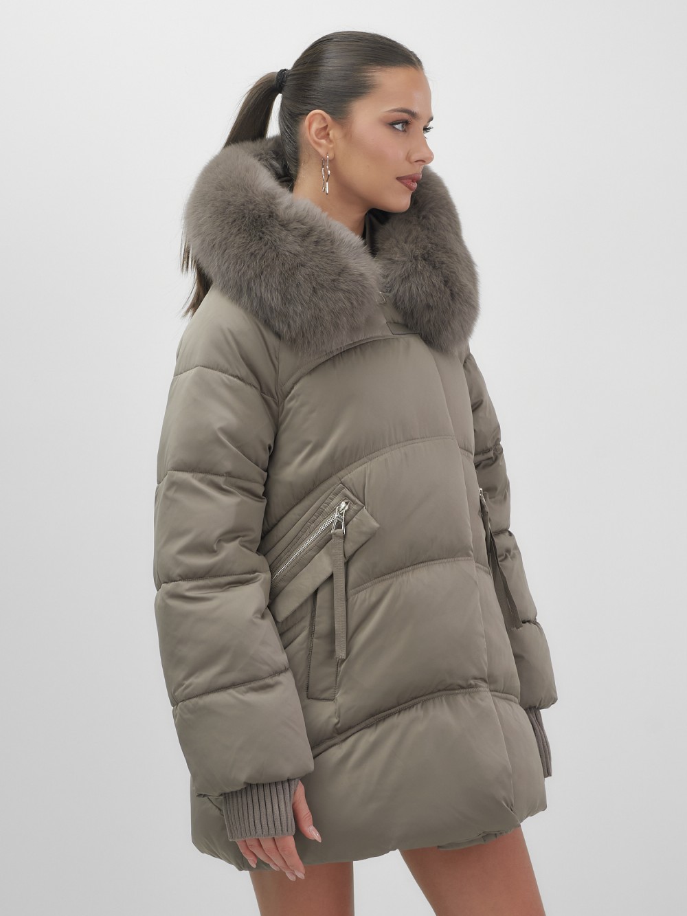 Каждая деталь продумана до мелочей: проклеенные швы, изысканные заклепки, практичный вырез для пальца на манжетах, удобные прорезные карманы с кнопками и молнией-обманкой. Съемная опушка из натурального песца трансформирует образ по вашему желанию. Безупречное качество меха говорит о безупречном вкусе владелицы.