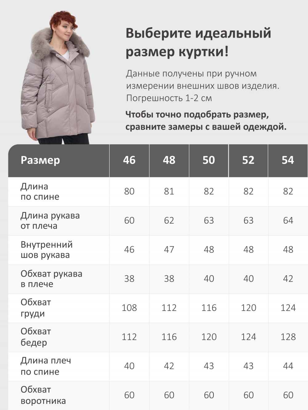Длина изделия по спине 80 81 82 82 82