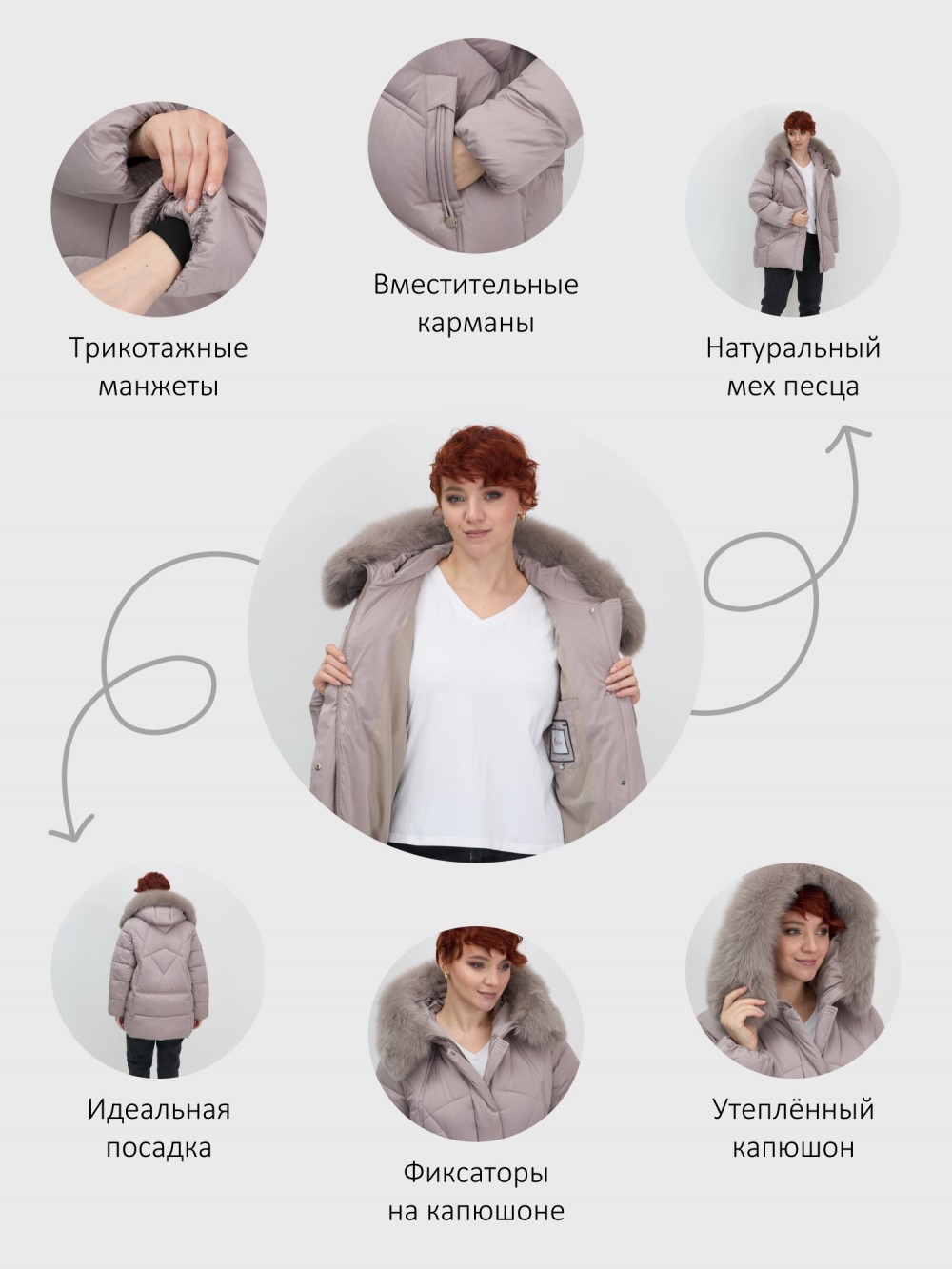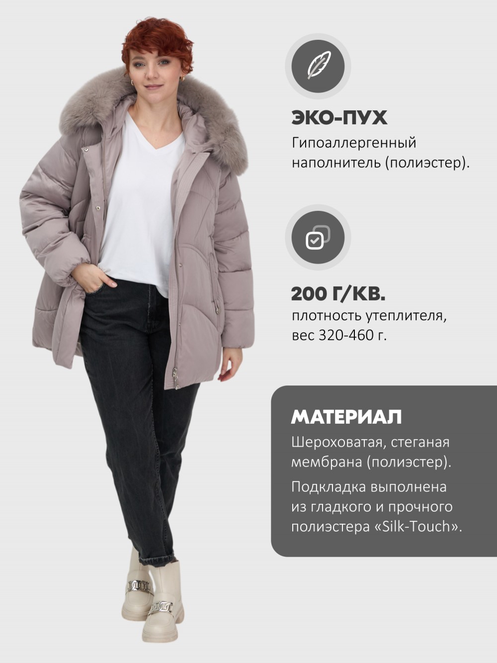 быстросохнущая, ветрозащита, водоотталкивающий материал, гипоаллергенный материал, дышащий материал, съемная опушка